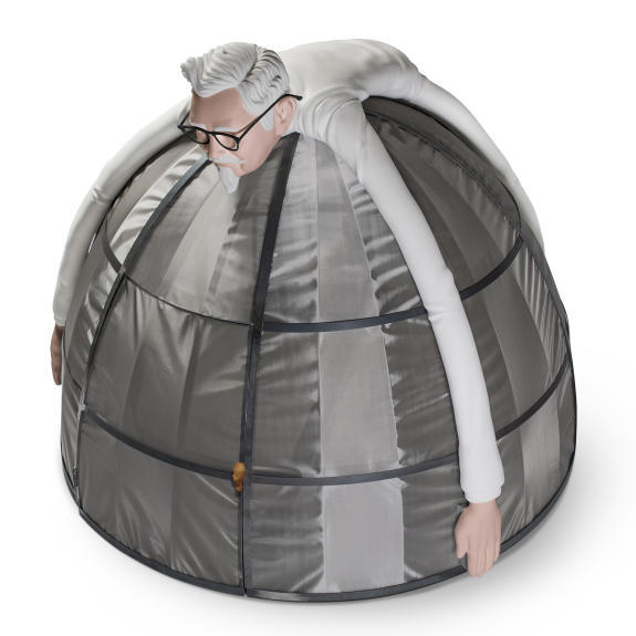 外觀形象以肯德基創始人 - 桑德斯上校雙手護住整個帳篷的模樣,像在維護各位的用餐體驗。