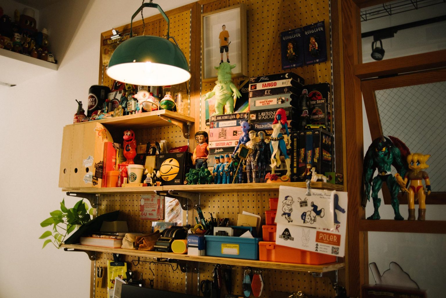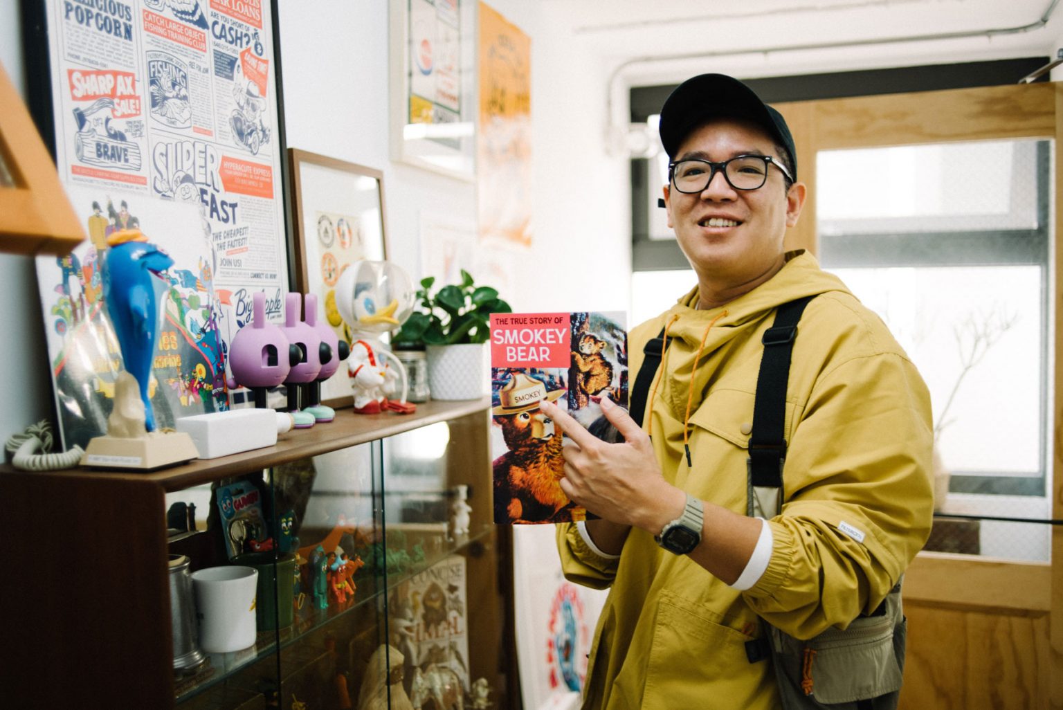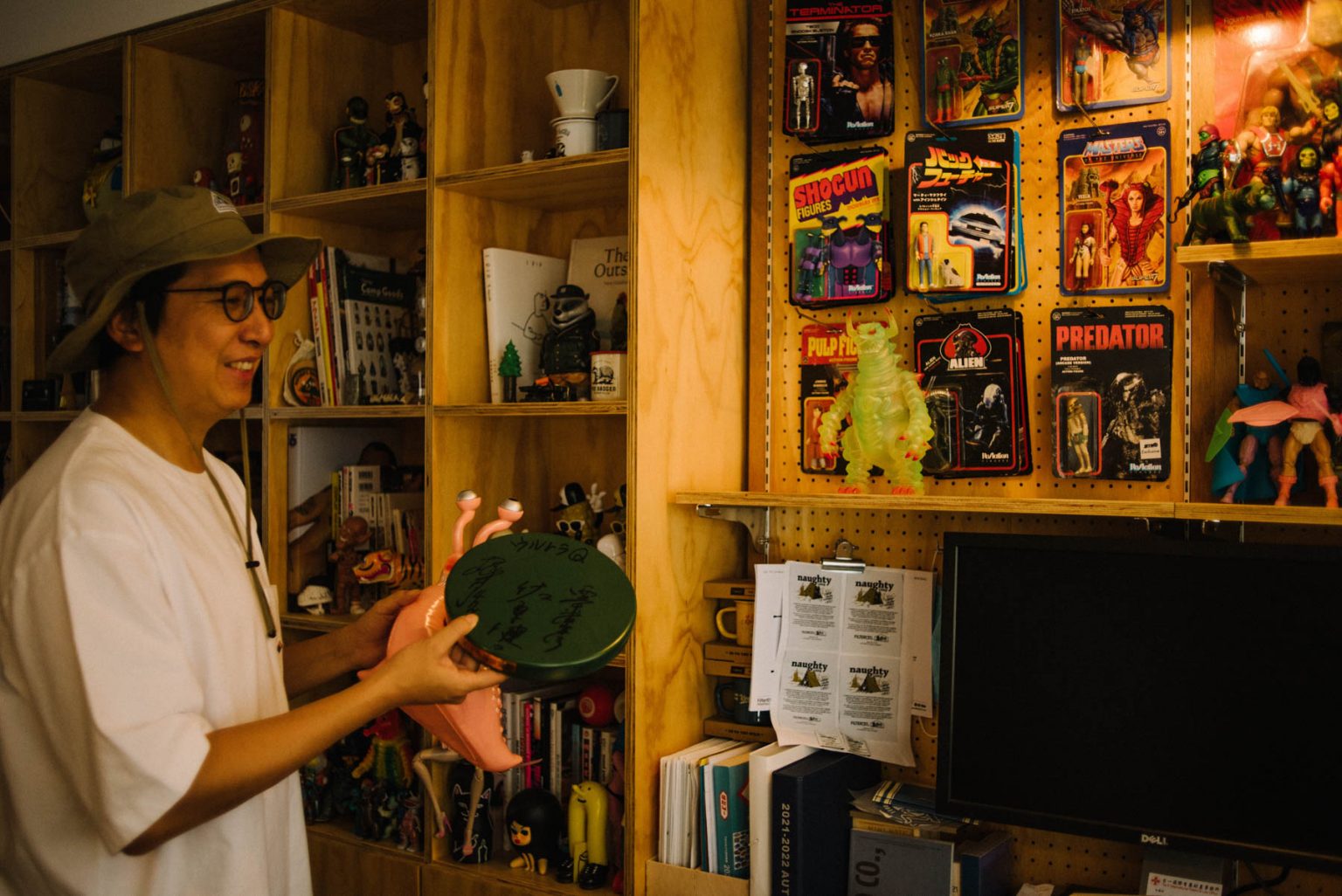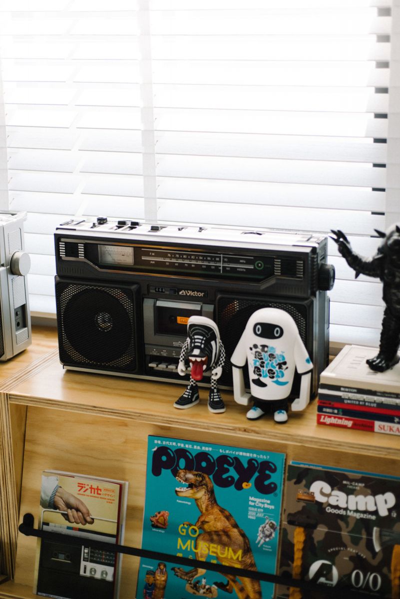 在他們的基地裡,牆上放滿整櫃快要擺不進去的公仔,玩具佔領了兩人的工作桌,如同兩位長不大的小男孩,ㄧ聊到櫃子裡的收藏, ENZO 熱情的分享「我喜歡 60、70 年代的美式玩具,而 MONEY 喜歡搜集日本昭和的軟膠怪獸等,看我們工作桌前的收藏就很有明顯的風格差異,不過卻也是另一個朋友來訪時能互相交流的聊天話題。」除了玩具外,也收藏了不少品牌吉祥物,像是在聽著音樂的 JVC 勝利狗,「可愛的吉祥物可以拉近品牌與消費群的距離。」Filter017 創立至今,也曾推出不少經典角色,像是玉米人、以及近期即將再度復刻的米斯獾。