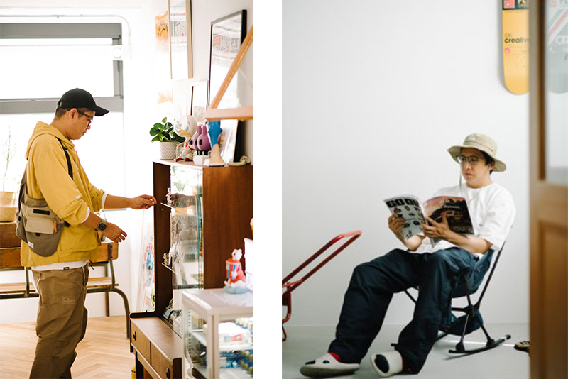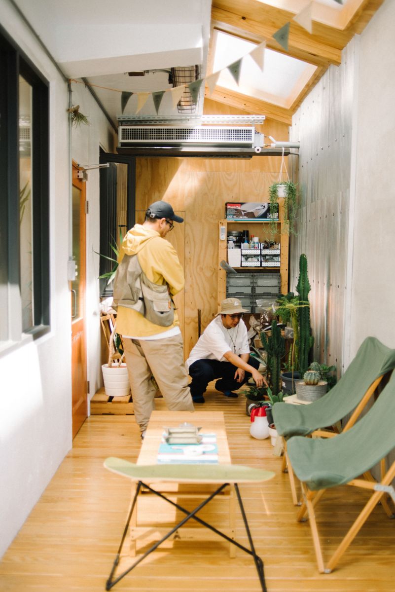 最後問起 ENZO 與 MONEY 最喜歡工作室的哪個角落,兩人不約而同都指著樓下的庭院,近期栽進了植物的世界,週末閒暇時會跑到彰化田中,搬回一盆又一盆的植物擺進工作室。MONEY 說「雖然我不知道這個興趣會持續多久,但我很享受現在養植物的過程。」庭院成了調劑工作與生活平衡的療癒空間,疲憊時到庭院走走,感受時間的流動以及光影的變化,心情隨之放鬆或許還有會有新的靈感。