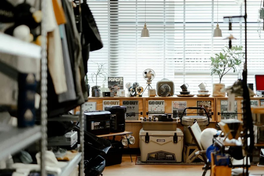 除了 Crealive Dept. 店鋪以外,Enzo 在距離 10 分鐘車程的工作室也擺放了許多露營用具、玩具公仔、黑膠唱片等私人收藏,尤其位於地下室的道具間,如同露營狂熱者的倉庫收納空間,擺滿了 Vintage 攜帶型咖啡機、冰箱、提袋等等,不禁問起 Enzo 心中嚮往的美好野派生活是什麼模樣?