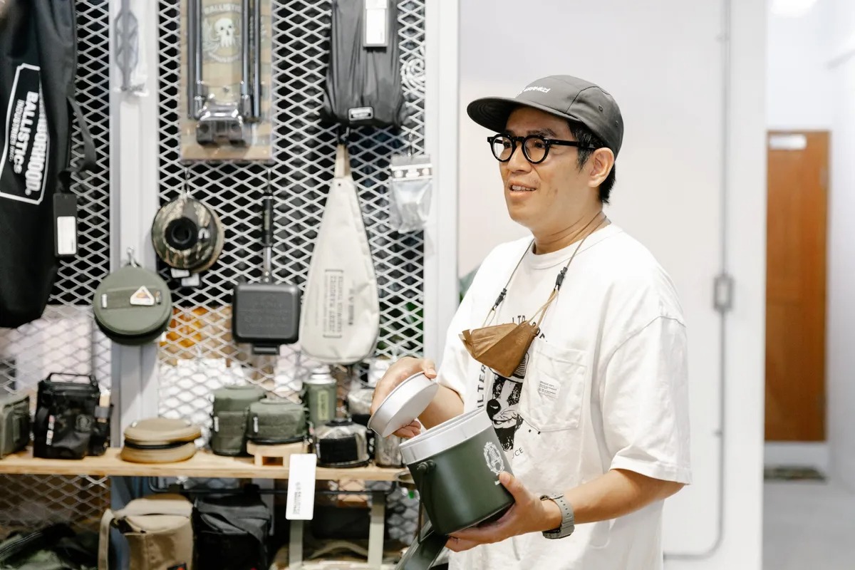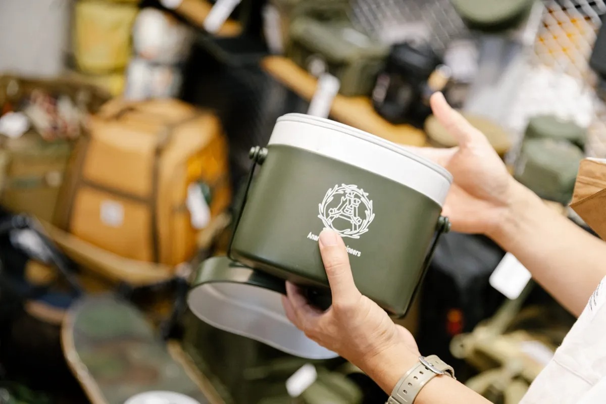 Enzo 説這款專用收納盒非常多功,最多可以疊加 3 層,除了露營時當便當盒使用外,他笑說:「我也會拿去外帶米粉湯,下面放湯、上面放小菜,可以乾濕分離(笑);也有一些人會拿來種龜背芋等室內植栽,成為居家美感的一部分。」接著提起來自日本的 Ballistics,是很道地的車庫文化,深受重度露營和軍事愛好者的歡迎,在台灣只有兩家經銷商,Crealive Dept. 便是其中之一。