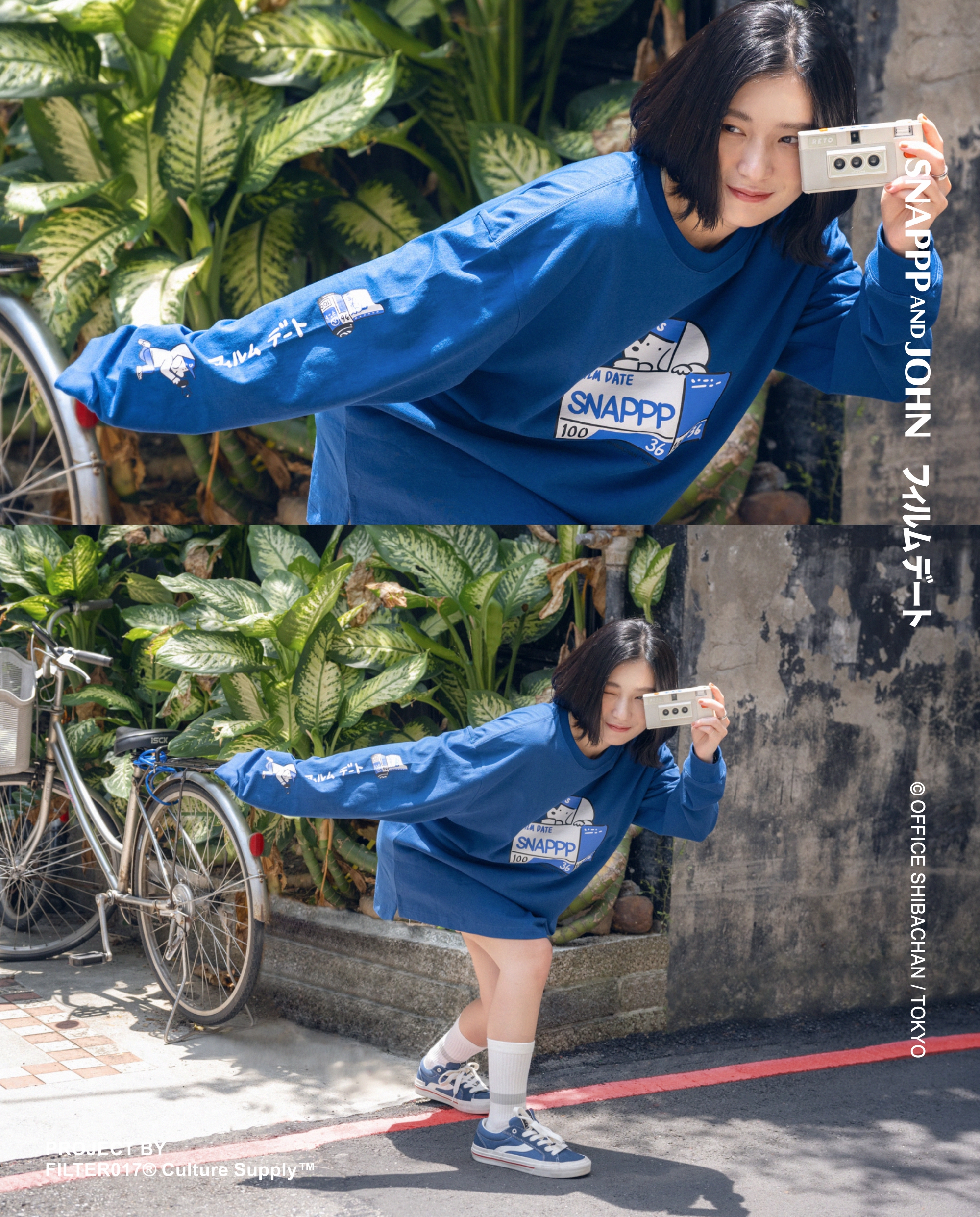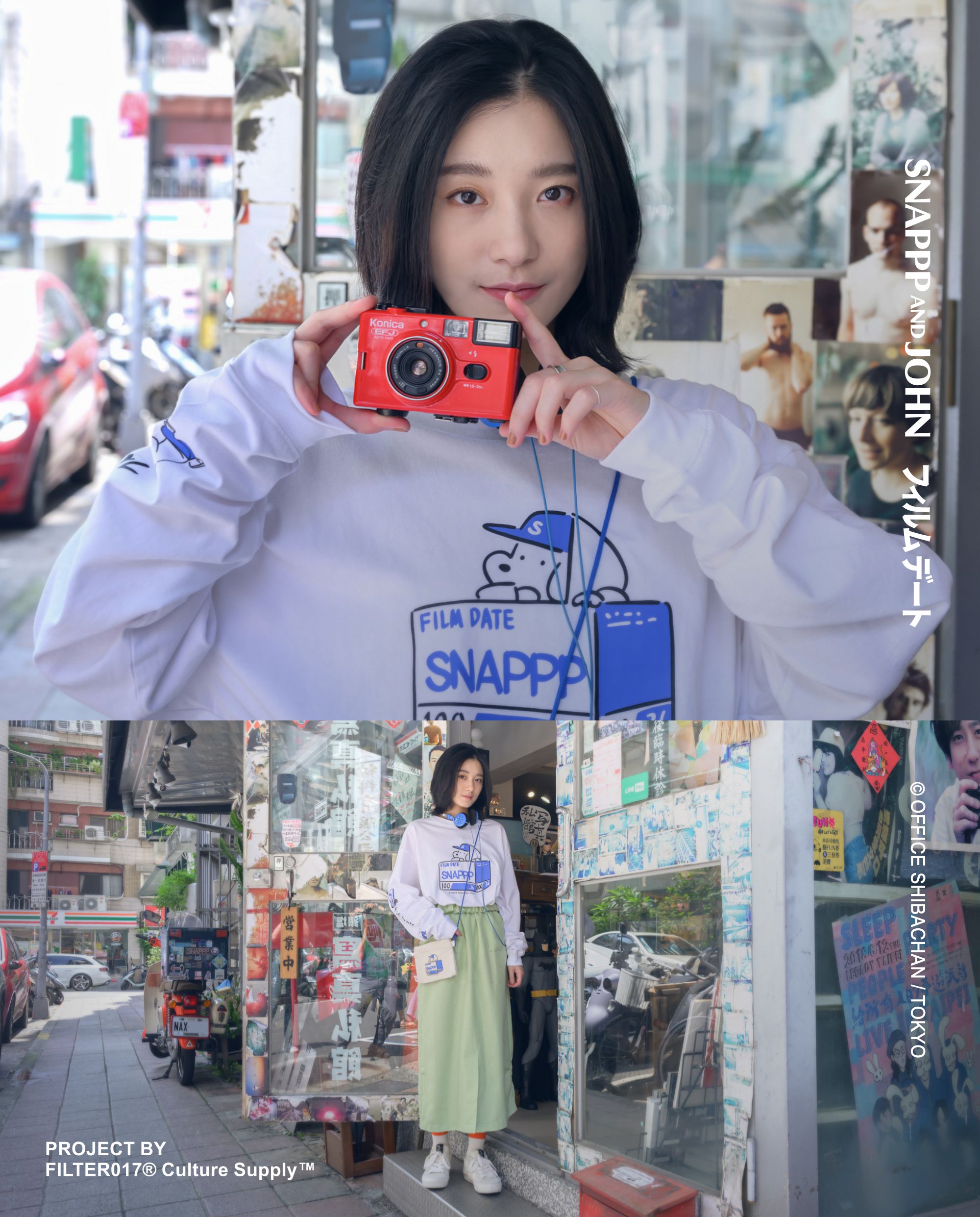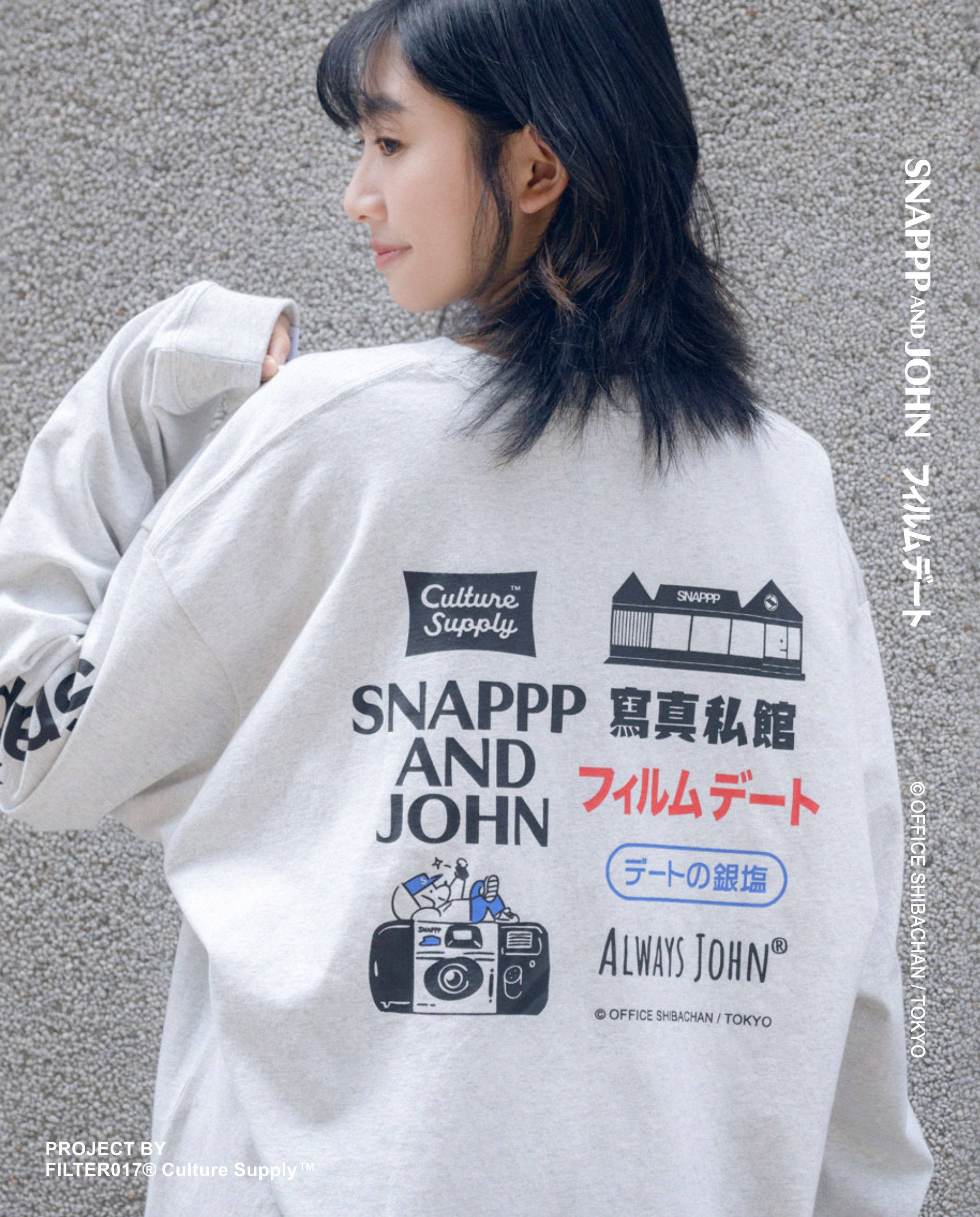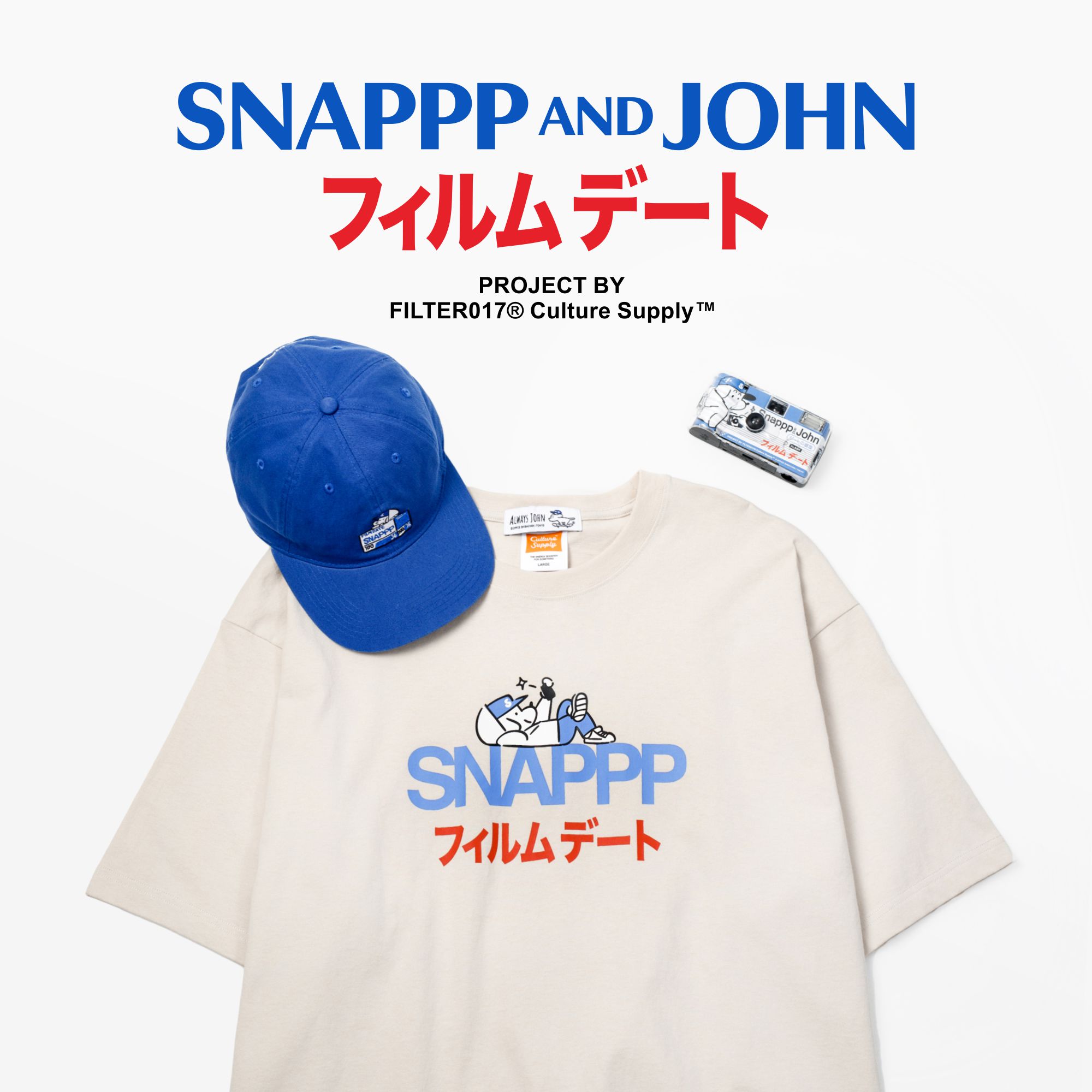 此次 SNAPPP AND JOHN 底片約會特別企劃,由 FILTER017® Culture Supply™ 製作發行,攜手創立於台灣台北,滿溢著日系昭和意象的菲林文化推廣名店「SNAPPP寫真私館」,以80-90年代日和洋風的復古流行為主題,呼應 SNAPPP 底片約會主軸下迷人悠然的節奏,將來自日本東京插畫家-柴田昌達筆下著名角色 IP - ALWAYS JOHN® 美式 City Boy 休閒風格,巧妙與底片拍攝文化玩味碰撞,創造出一系列令人印象深刻的視覺、插畫及主題聯名商品。