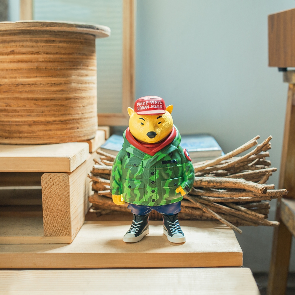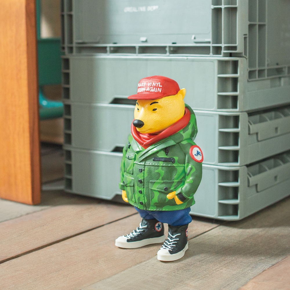 本次的作品以“MAD HUNNY BEAR”為名,趣味概念上混合翻玩的迪士尼經典角色「維尼熊」,