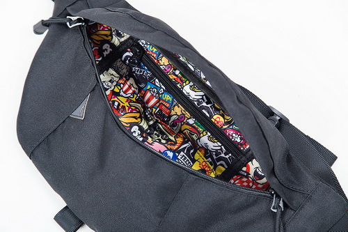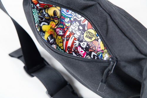 腰包外部採用低調的全黑設計,連反光三角閃電及F5S X FILTER017的立體繡花亦選用全黑繡線,但令人驚奇的是當拉鍊拉開後,隨即躍然入目的就是FILTER017經典圖像-COLORFUL PATTERN,從低調簡約到繽紛華麗就是一條拉鏈的距離。此外,腰包專屬的收納袋巧思設計兩面使用,更加豐富了包款整體的細節與質感。