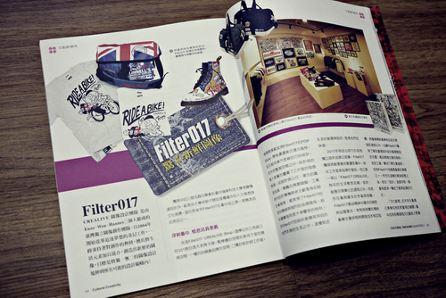 感謝台中市政府文化局,於2012 7月所發行的文化台中季刊中以專文詳盡報導介紹Filter017台中概念店!