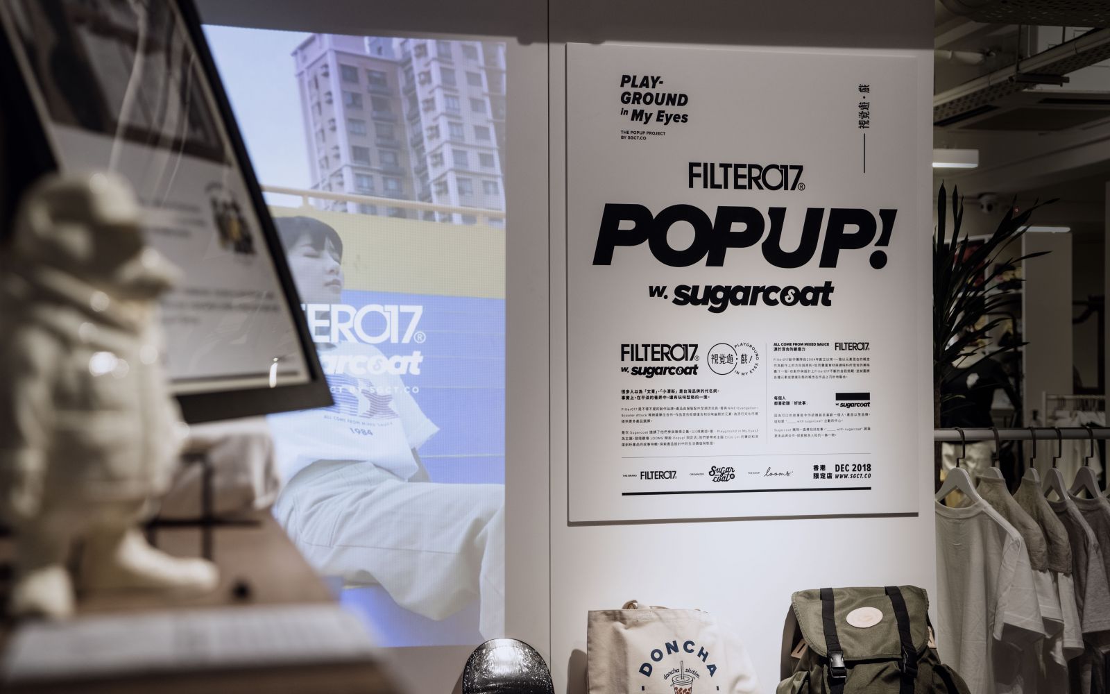 由香港流行媒體 Sugarcoat 策劃,邀請台灣設計品牌/團隊 Filter017 跨海合作的《視覺遊。戲 - Playground in My Eyes》主題期間限定店活動,於11月下旬登陸香港觀塘 LOOMS Café 。