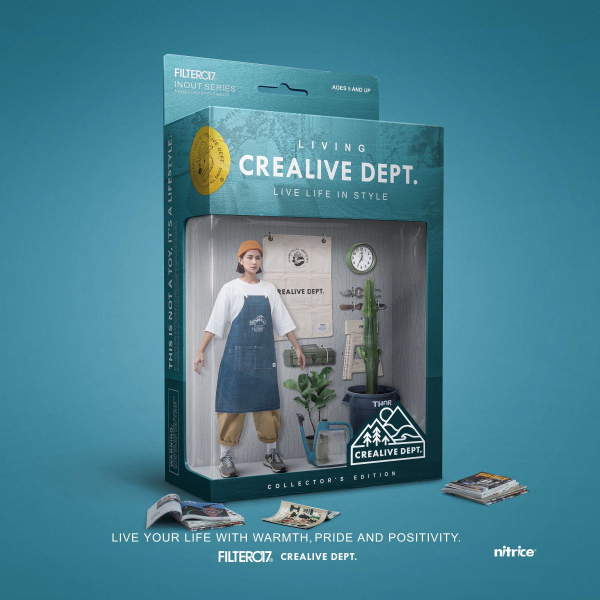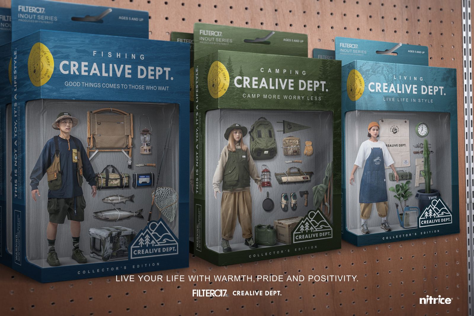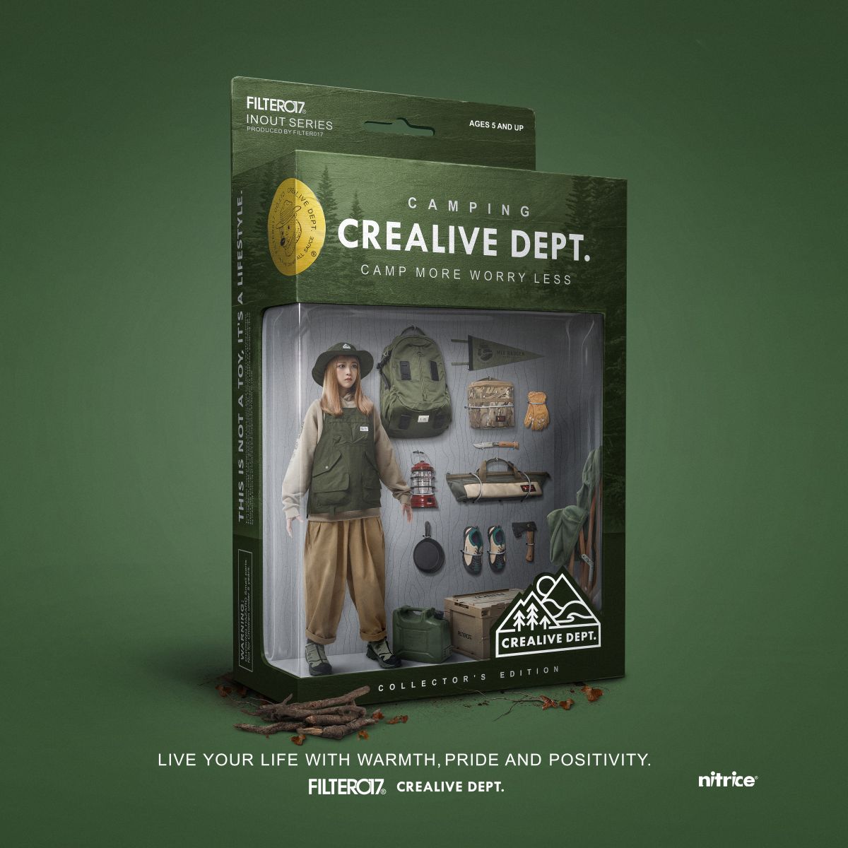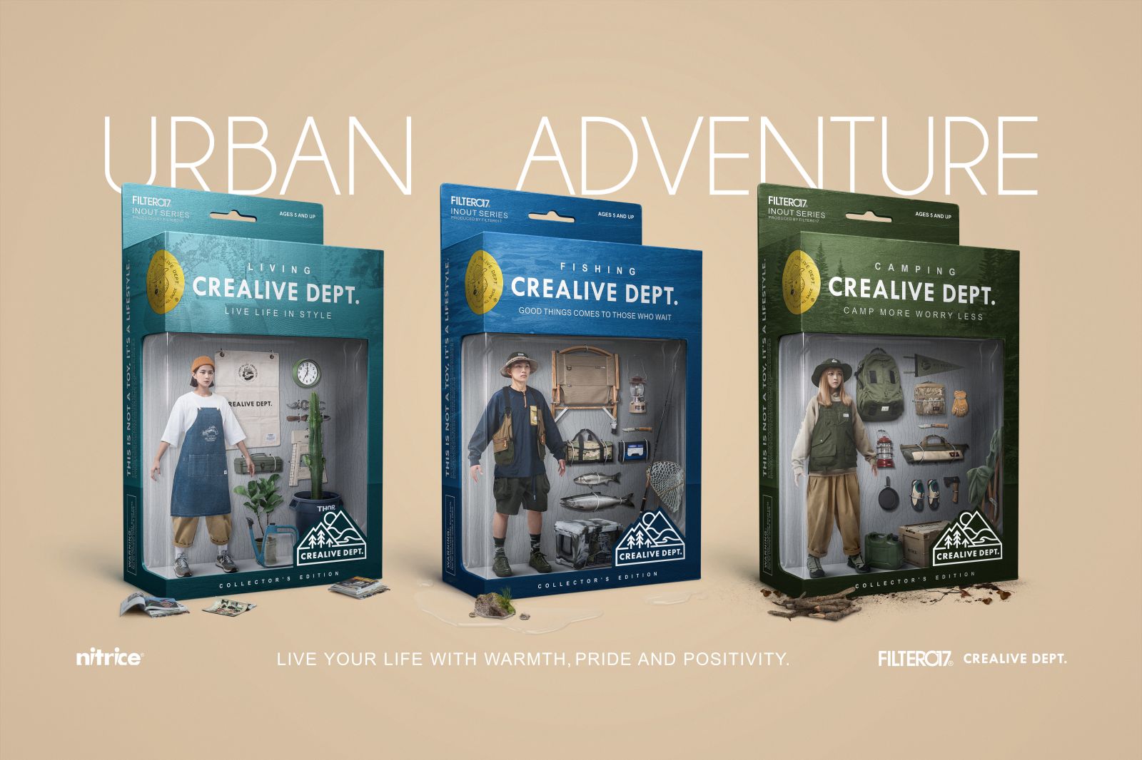 此次系列作品仍延續首次合作之主題概念,以「戶外探險」、「露營墾趣」及「品味家居」三個目前 Filter017 品牌齊頭並進的發展面向做為創意核心,並結合品牌團隊旗下所經歷的「Crealive Dept.」風格選品店之豐富的道具選物,以擬真的吊卡模型玩具做為表現形式,呈現視覺驚奇且玩味十足的細膩影像作品。