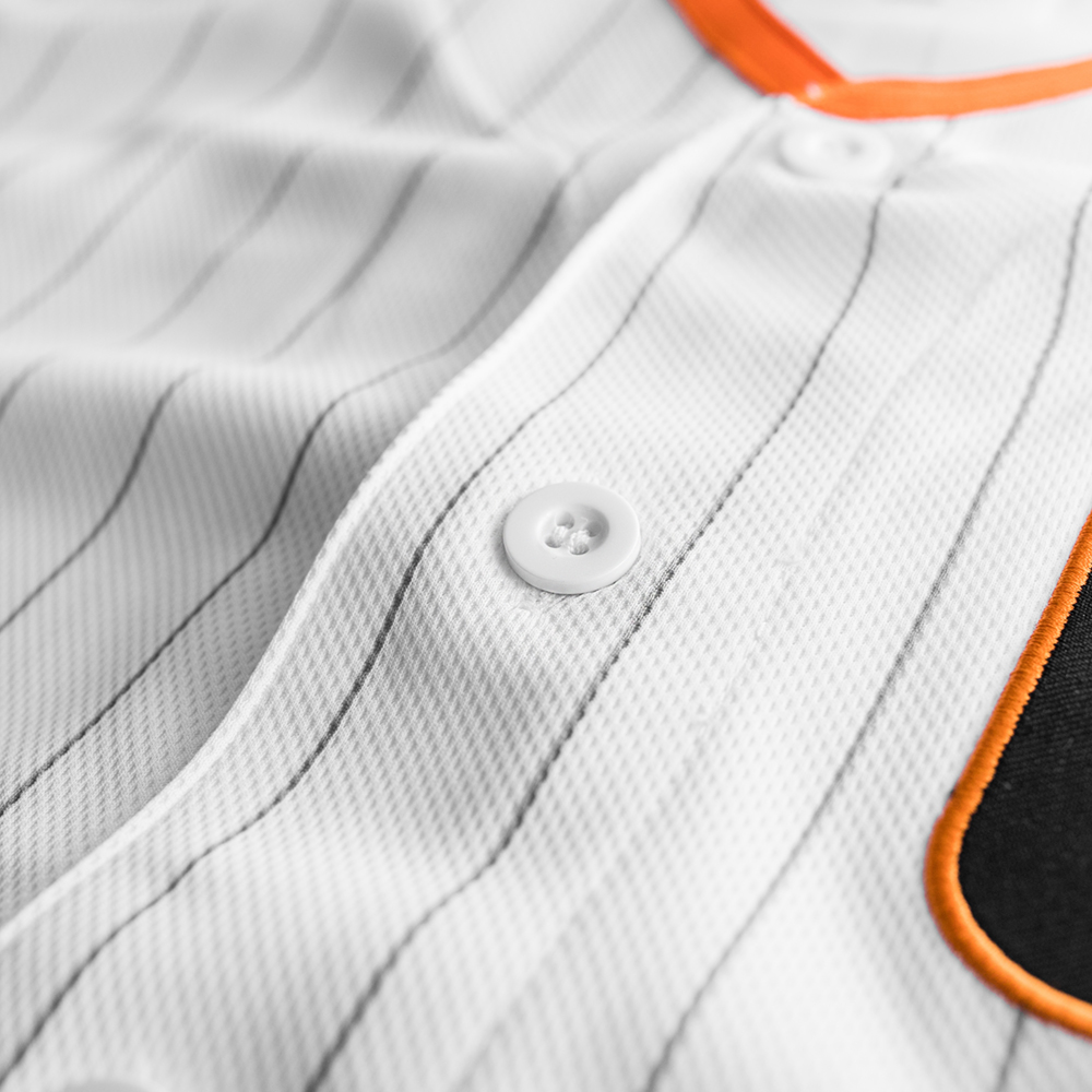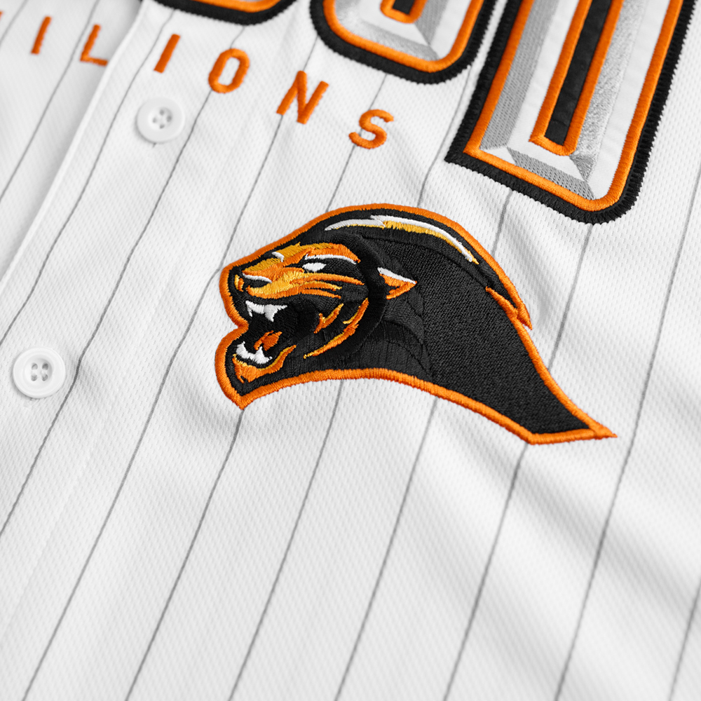 三十周年球衣本體配色以白底為主,融合統一獅經典條紋元素,