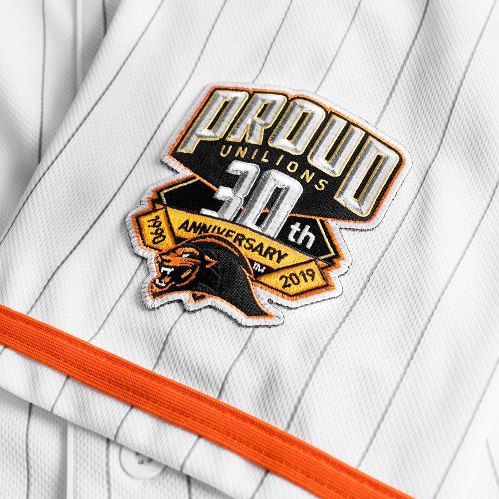 胸前為PROUD、獅頭與UNILIONS精緻電繡,左袖有三十周年主視覺精緻臂章,
