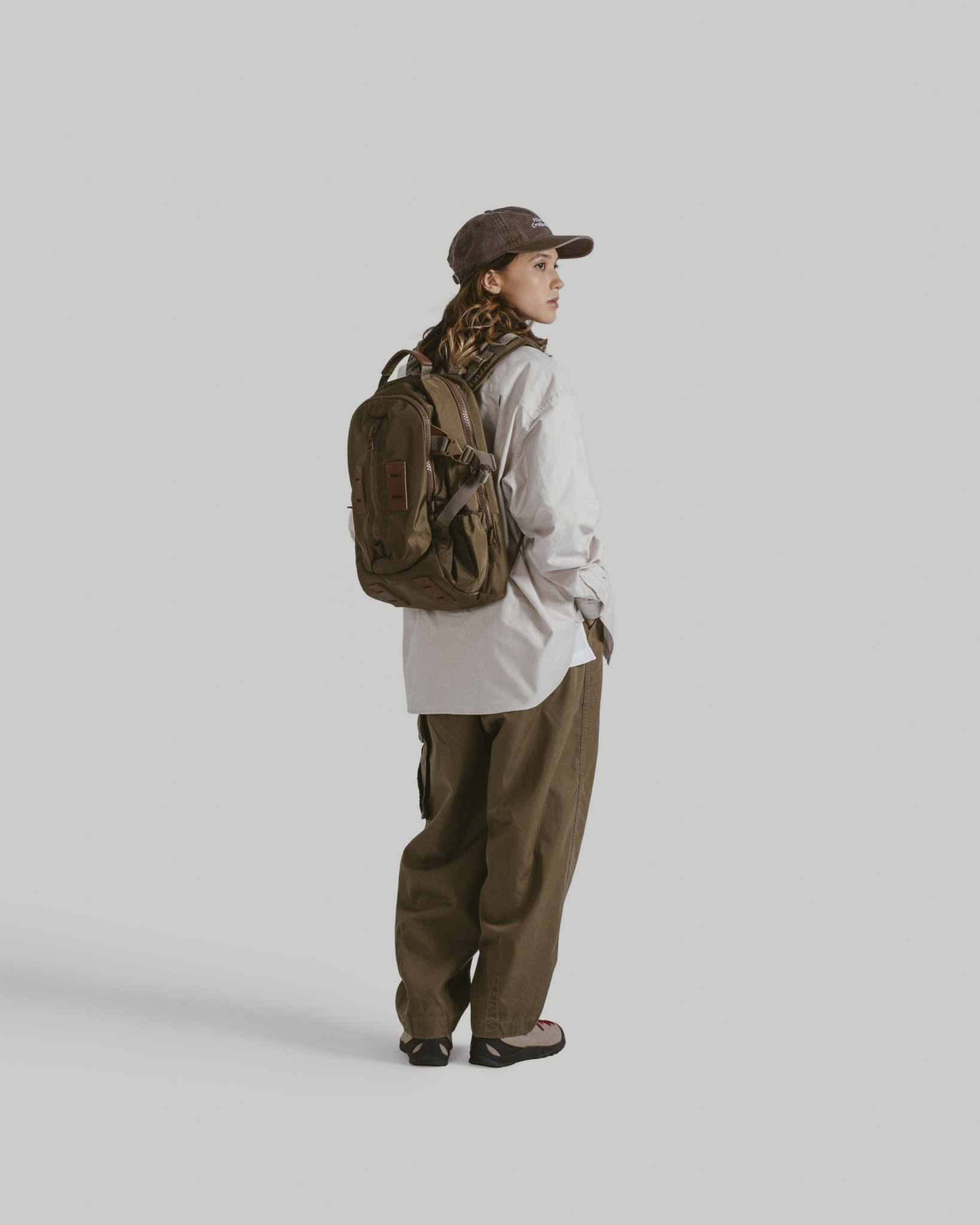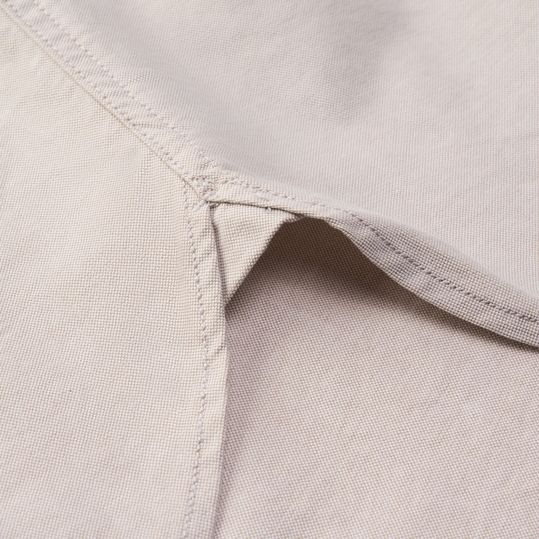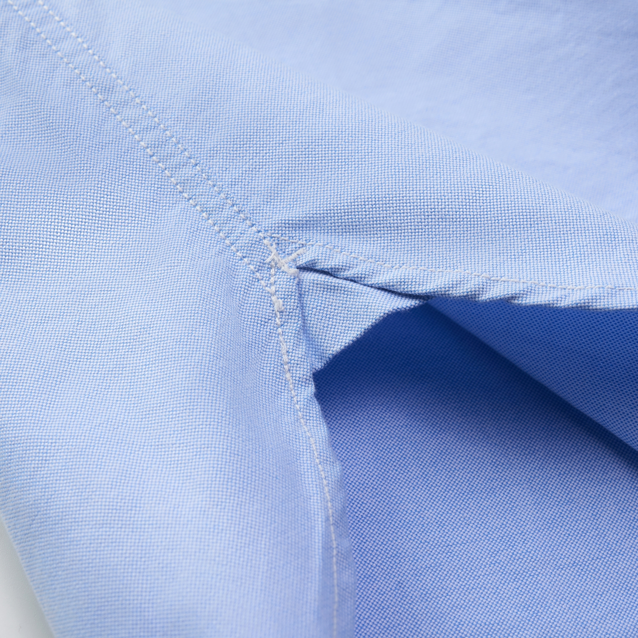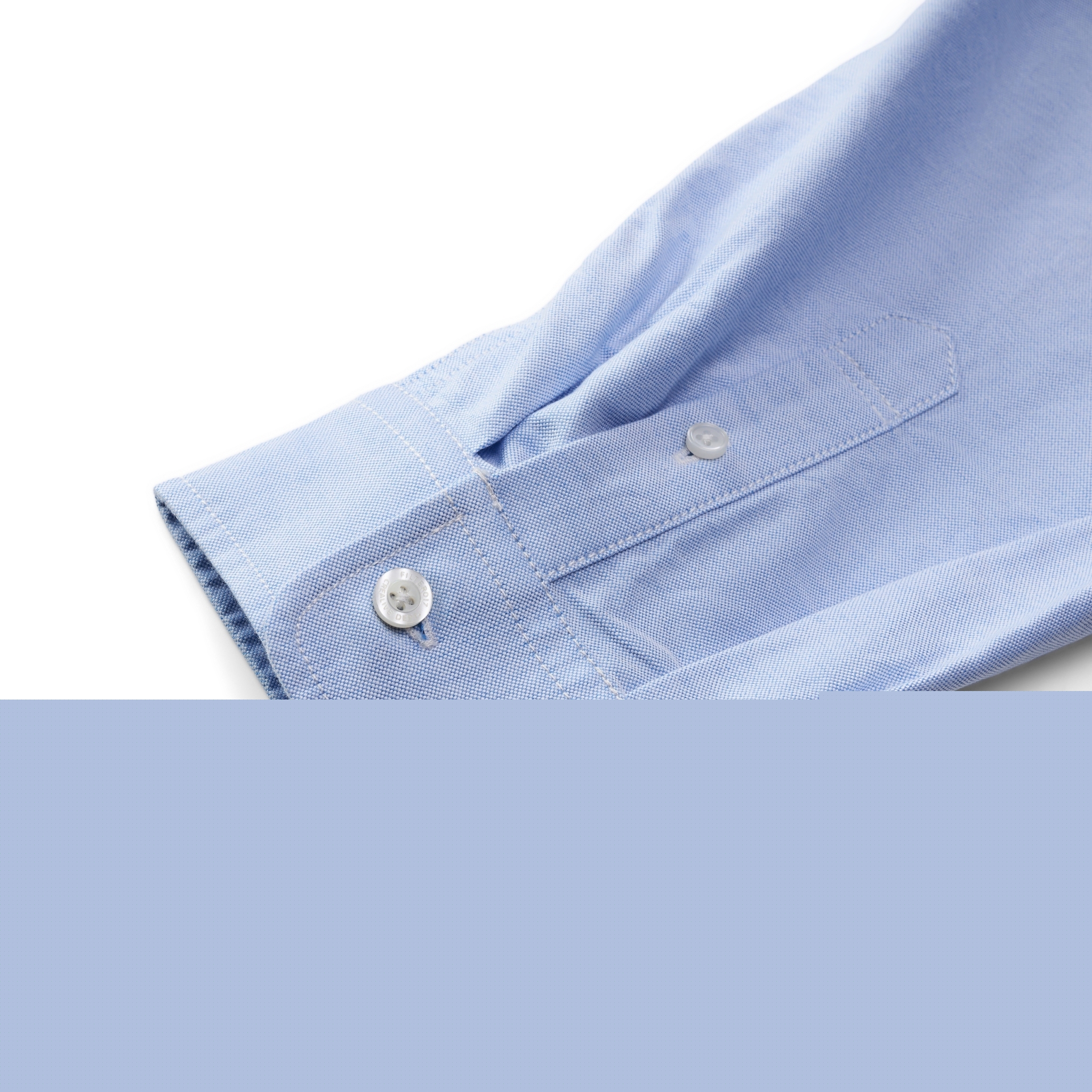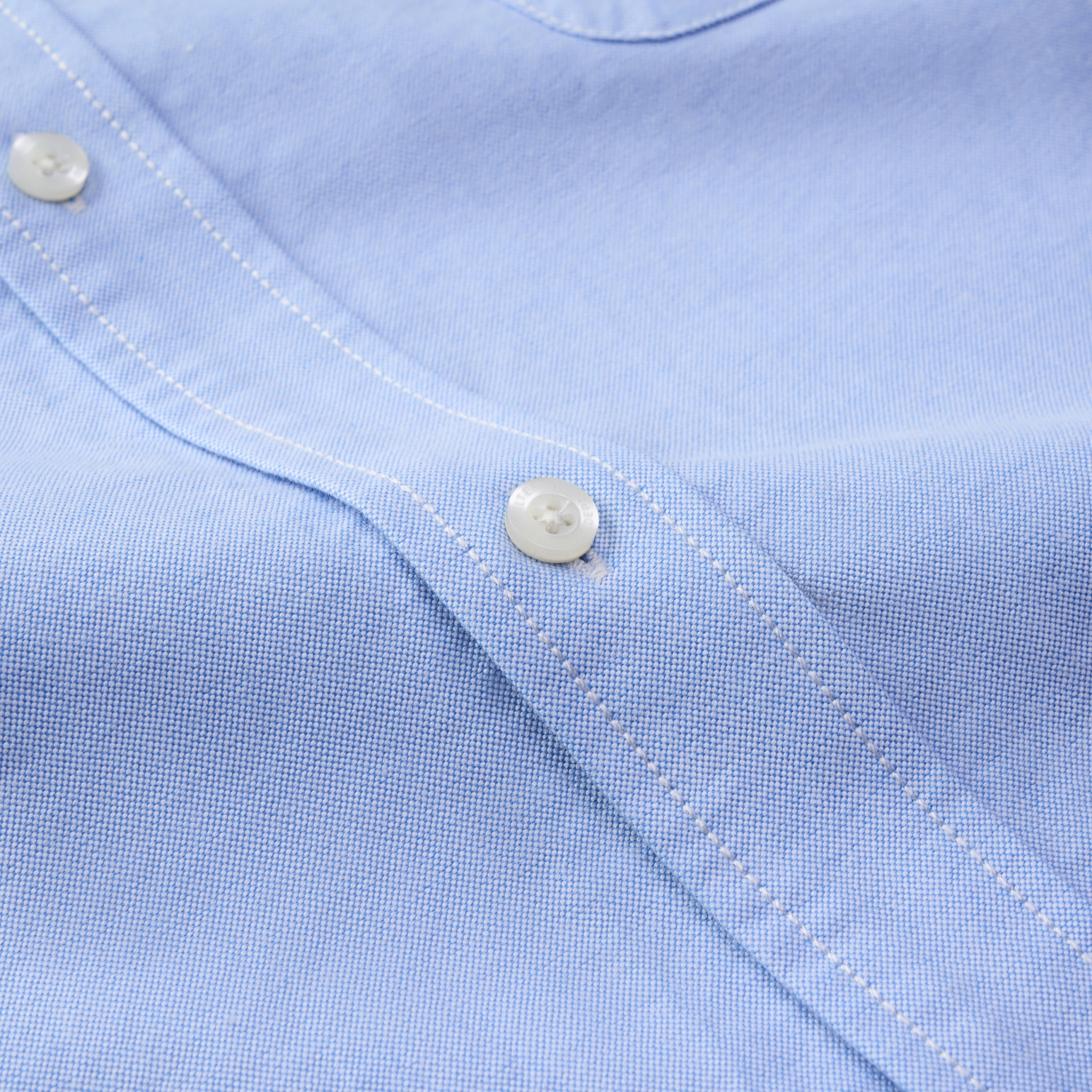 以寬版輪廓版型為基礎,加上前短後長的下擺於兩側開衩以三角裁片加固,並在左右肩胛處以活折剪裁,增添行動時的延展空間使之更加舒適。特選質感極佳的純棉牛津面料與訂製鈕扣,結合本季品牌經典標語設計字樣刺繡作為視覺點題,為日常穿搭輕鬆營造豐富層次感。