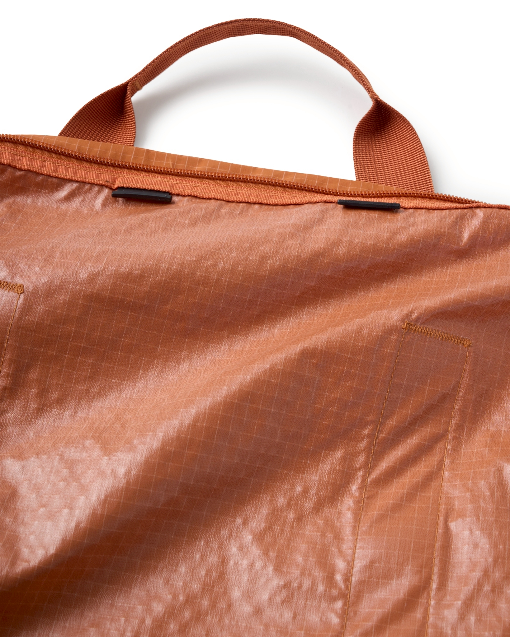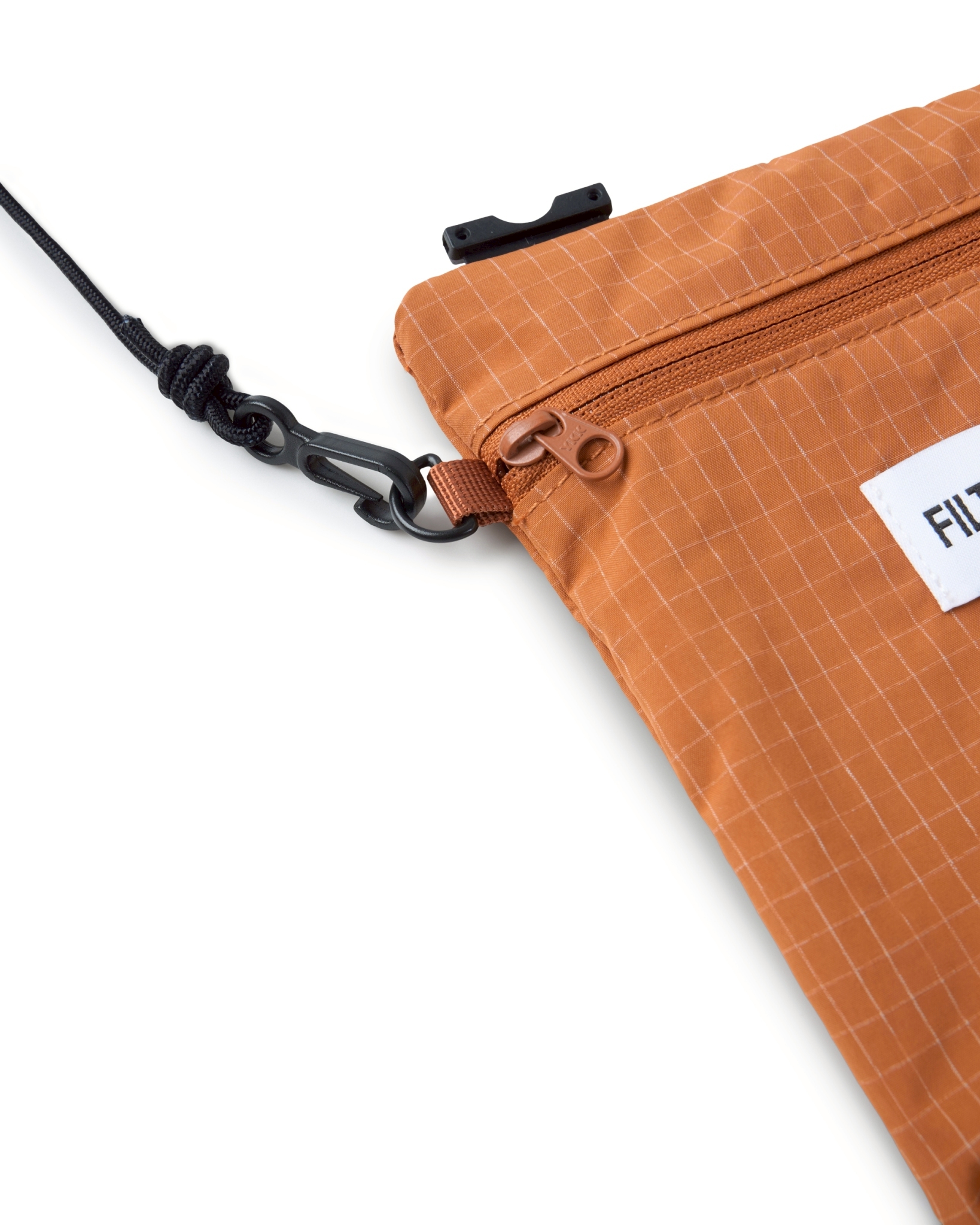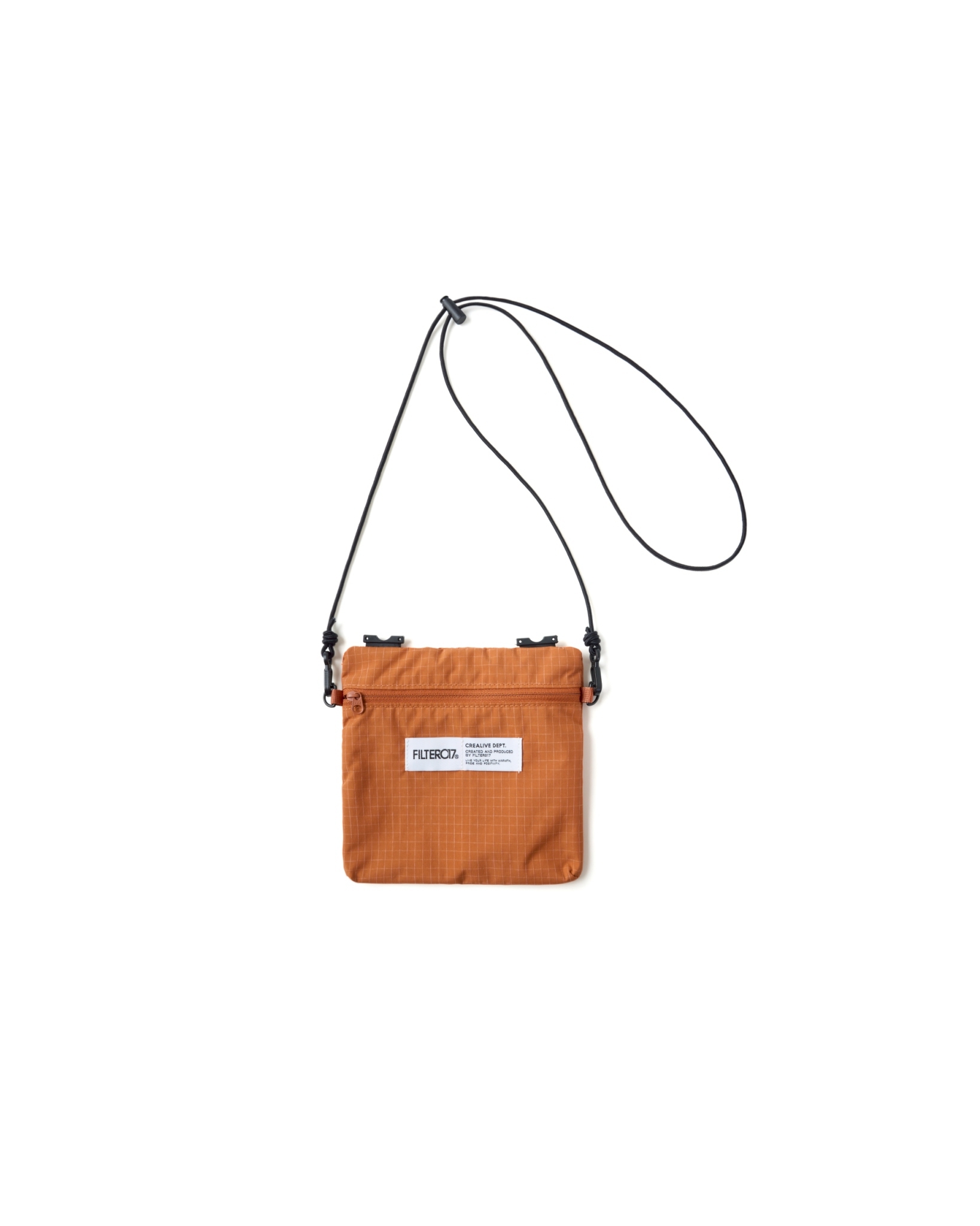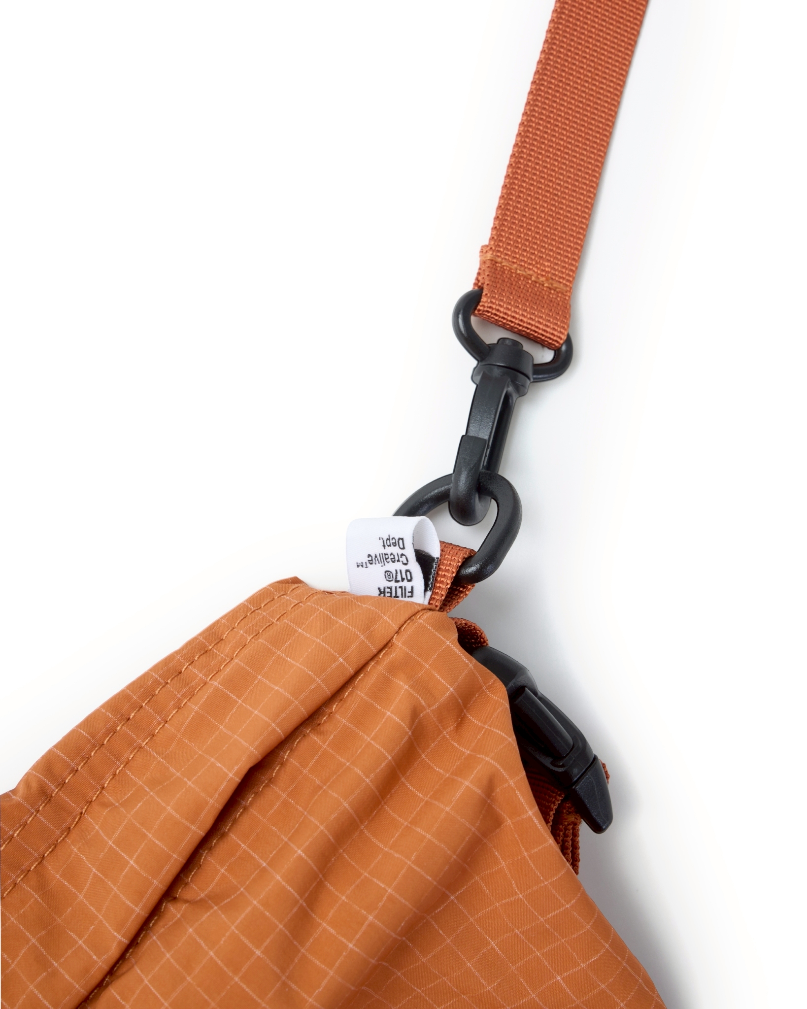 主體採高密度防潑水尼龍面料,內貼合防水膜製成,可運用兩側插扣調節包體型態。內扣小包以快速拆卸的滑扣做結合,依需求可當內袋亦或搭配背繩單獨使用。網布收納袋平時作為內裡袋層,以拉鍊與插扣固定,增添收納的多樣化與便利性。整體多面向的結構設定,提供靈活與最大限度滿足於各情境。