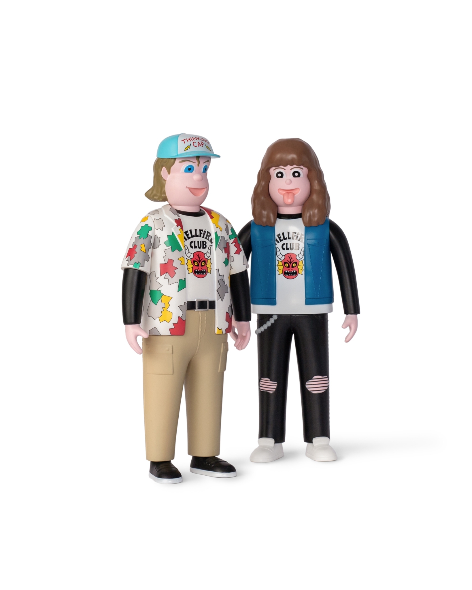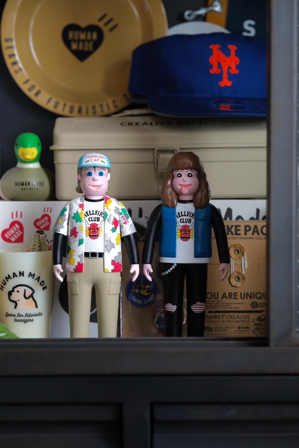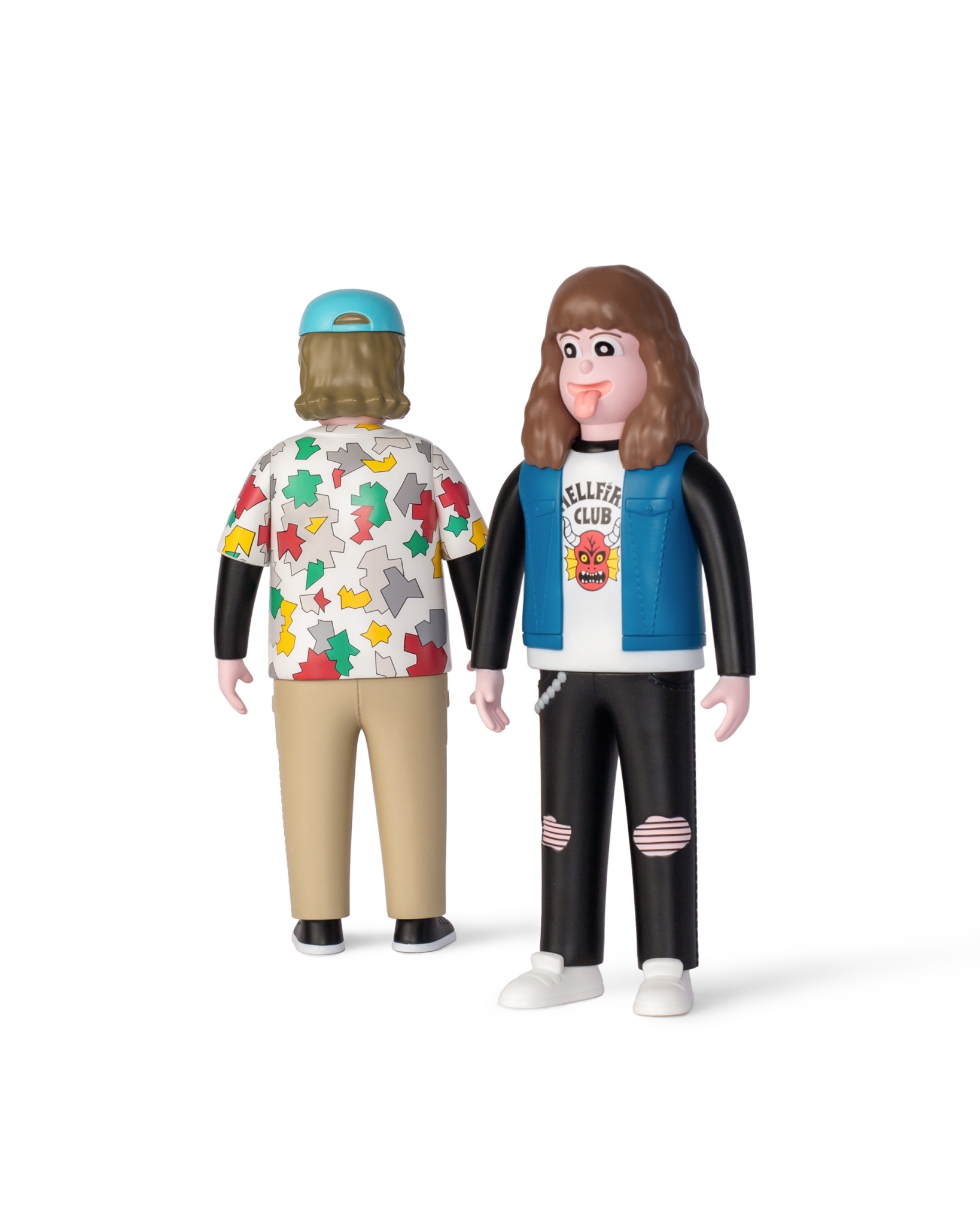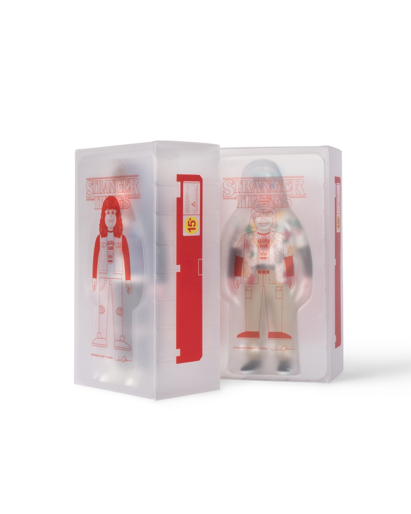 以全球熱播美劇《怪奇物語》第4 季核心角色與劇情主軸“友情”為靈感,融合80 年代美式經典風格與科幻元素,考究原作人物細節人設與造型,邀請日本知名藝術家Jun Oson 合作 ,以其“花生臉型”角色風格進行藝術插畫的轉換,並以PVC搪膠材質,透過複雜程序與製作工法,精緻呈現Jun Oson 所詮釋的立體造型特色,巧妙復刻劇中角色經典的形象。