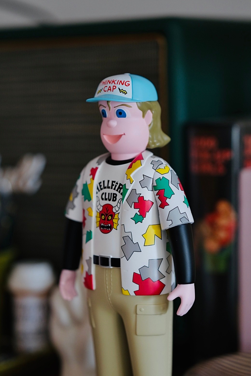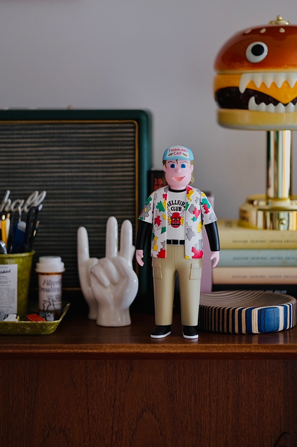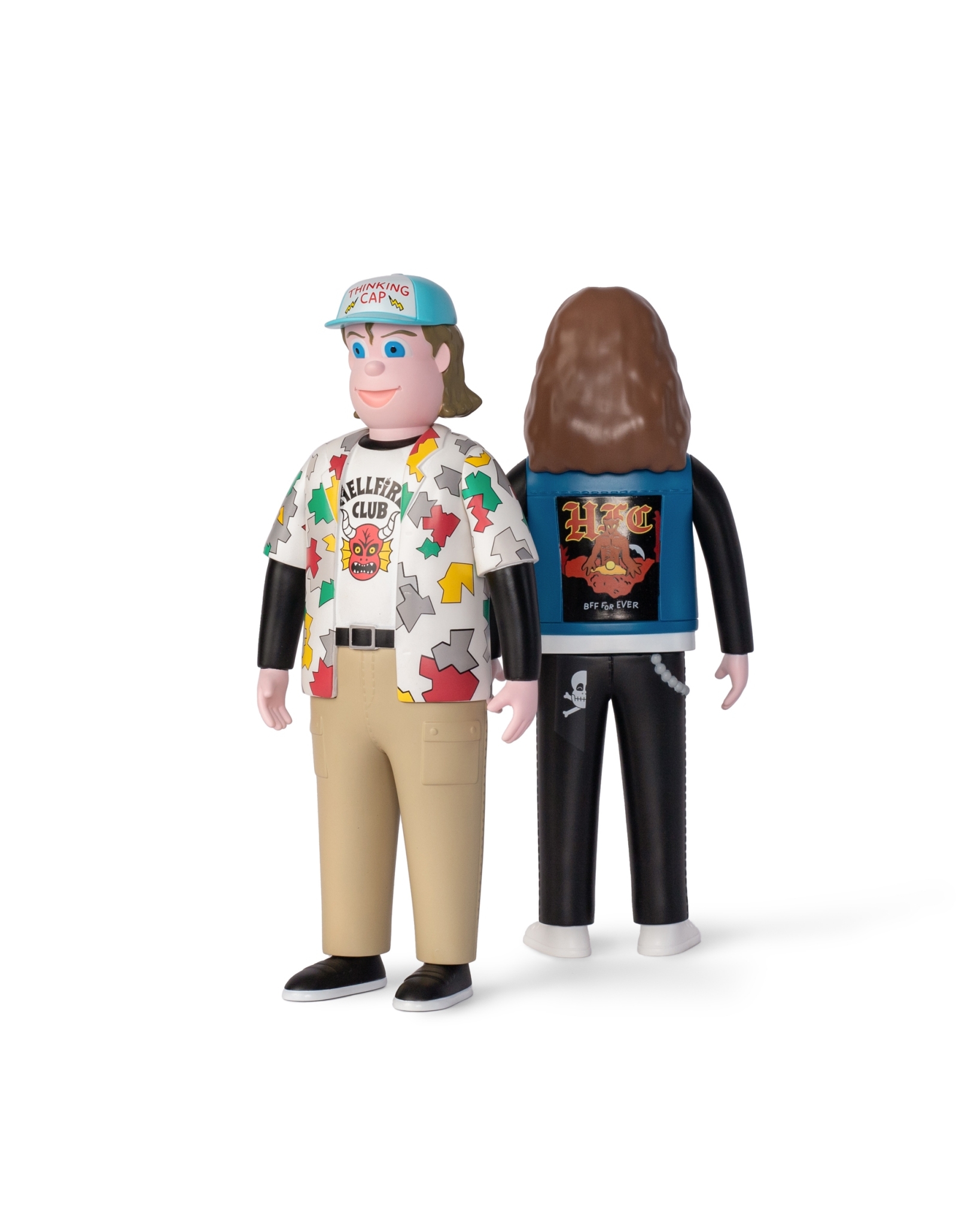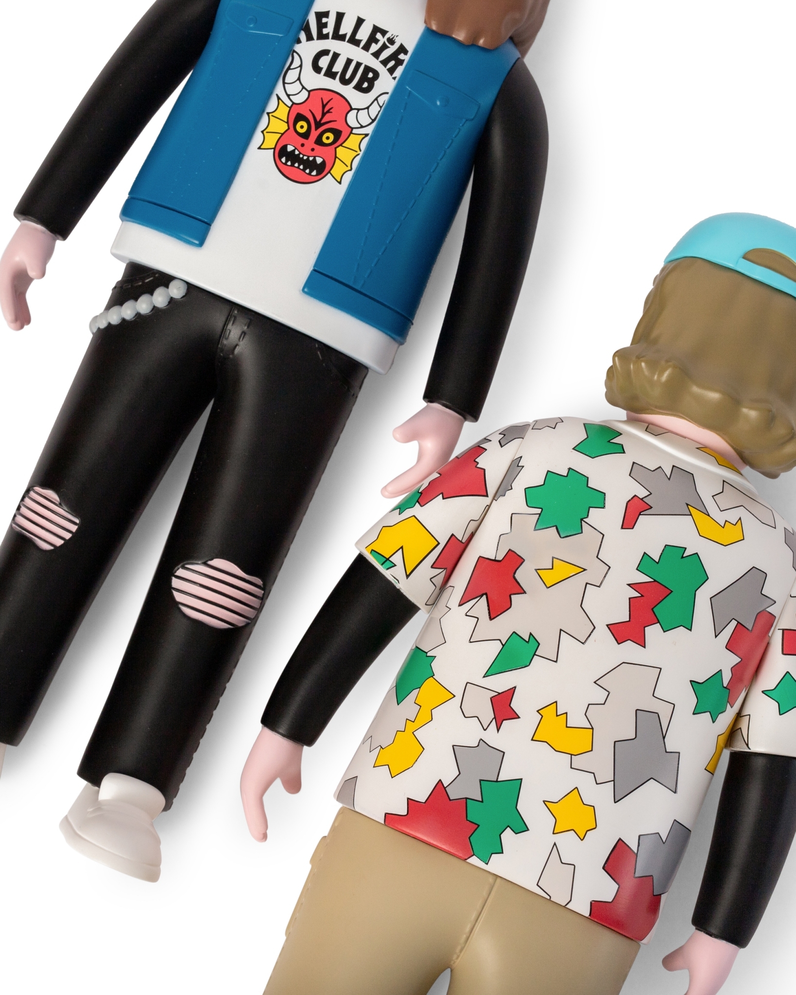 以全球熱播美劇《怪奇物語》第4 季核心角色與劇情主軸“友情”為靈感,融合80 年代美式經典風格與科幻元素,考究原作人物細節人設與造型,邀請日本知名藝術家Jun Oson 合作 ,以其“花生臉型”角色風格進行藝術插畫的轉換,並以PVC搪膠材質,透過複雜程序與製作工法,精緻呈現Jun Oson 所詮釋的立體造型特色,巧妙復刻劇中角色經典的形象。