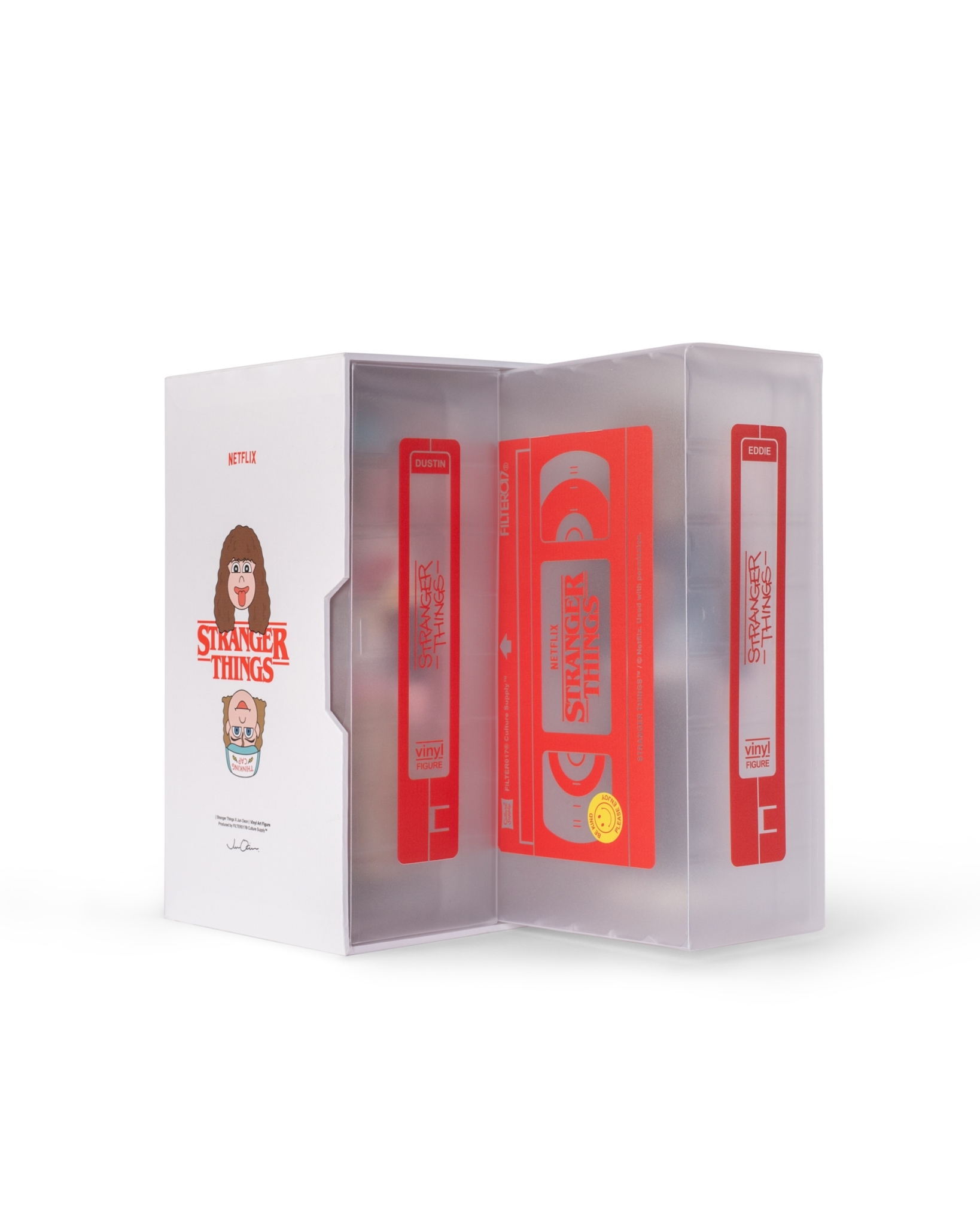 內容包含Eddie 、Dustin 共2款角色之立體造型收藏軟膠,以80年代"VHS錄影帶"造型概念為精裝外盒設計,透過磨砂霧面的透明PVC包材,將內裝角色的輪廓隱約展現,增添玩味巧思,每只角色造型高度約10英吋,實體手感具有扎實分量,部分零件為可動結構,精緻的塗裝及繁複的圖紋移印工藝,並由台灣知名設計師玩具單位IN TOY 生產技術協力,賦予收藏成品高度完整性,無論是FILTER017® 支持者、藝術設計與復古文化愛好者、《怪奇物語》劇迷,亦或是Jun Oson 藝術收藏家,皆能在此次的藝術軟膠套裝中,感受到飽滿的誠意與細節。
