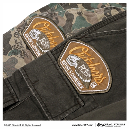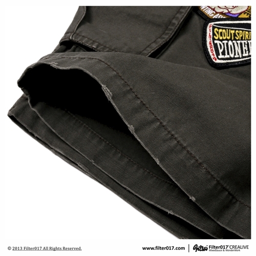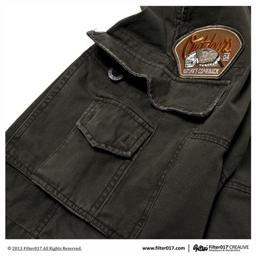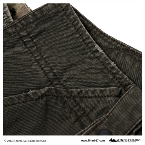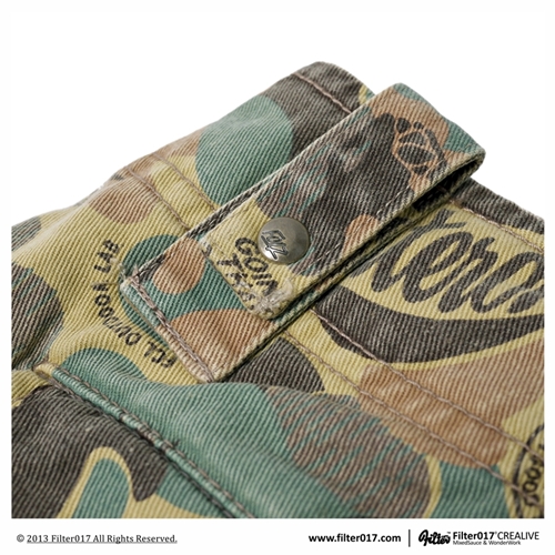 以獨家設計失落迷彩布紋及特選厚磅純棉材質,透過重度石洗及破壞處理,呈現出濃厚的洗鍊及歲月痕跡,