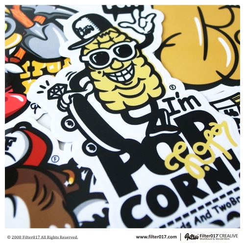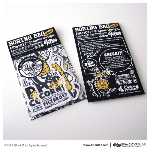 Boring Bag series the second contains 8 kinds of sticker, 4 of them are transparent with high quality and screen-printing technique, the other 4 are made of PVC material that can’t tear. Filter017 concerns all the procedure details such as the quality of material, the way for printing and steps of cutting mold. Not only front side of stickers are exquisite but also the back. It is different from the common way of producing stickers and filled with designers’ idea.