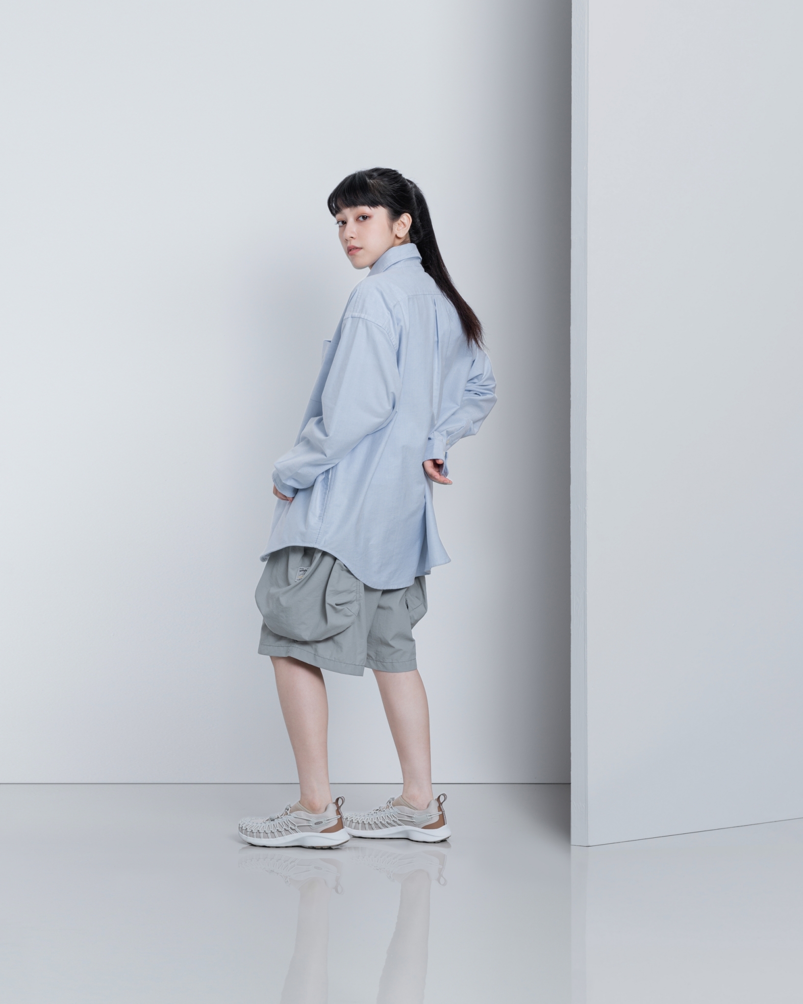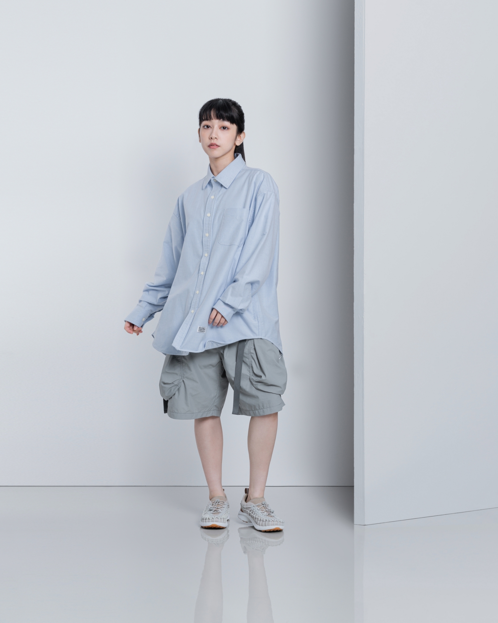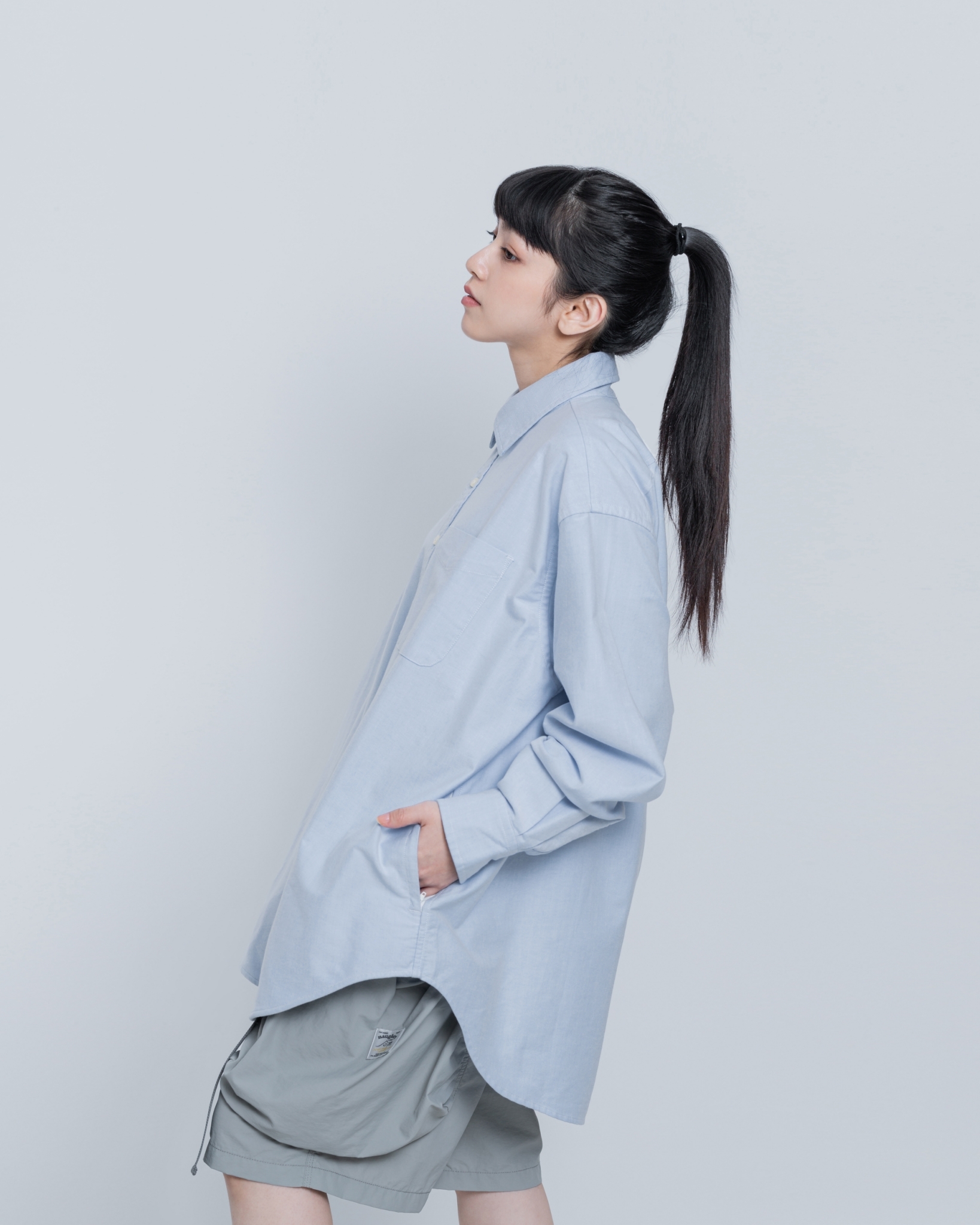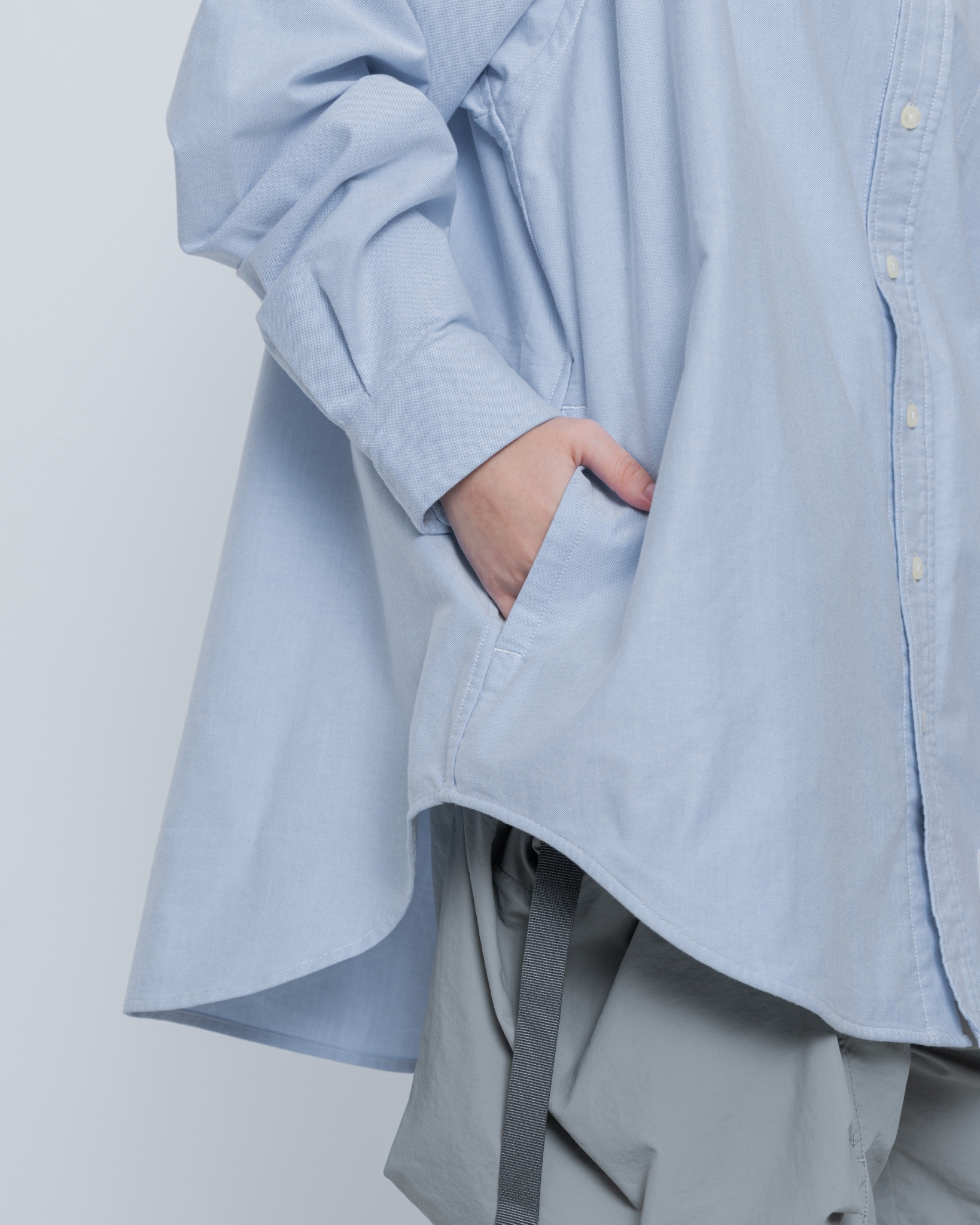 特選質感極佳的牛津混紡面料,簡約自然且寬鬆的剪裁,為日常穿搭輕鬆營造豐富層次感。