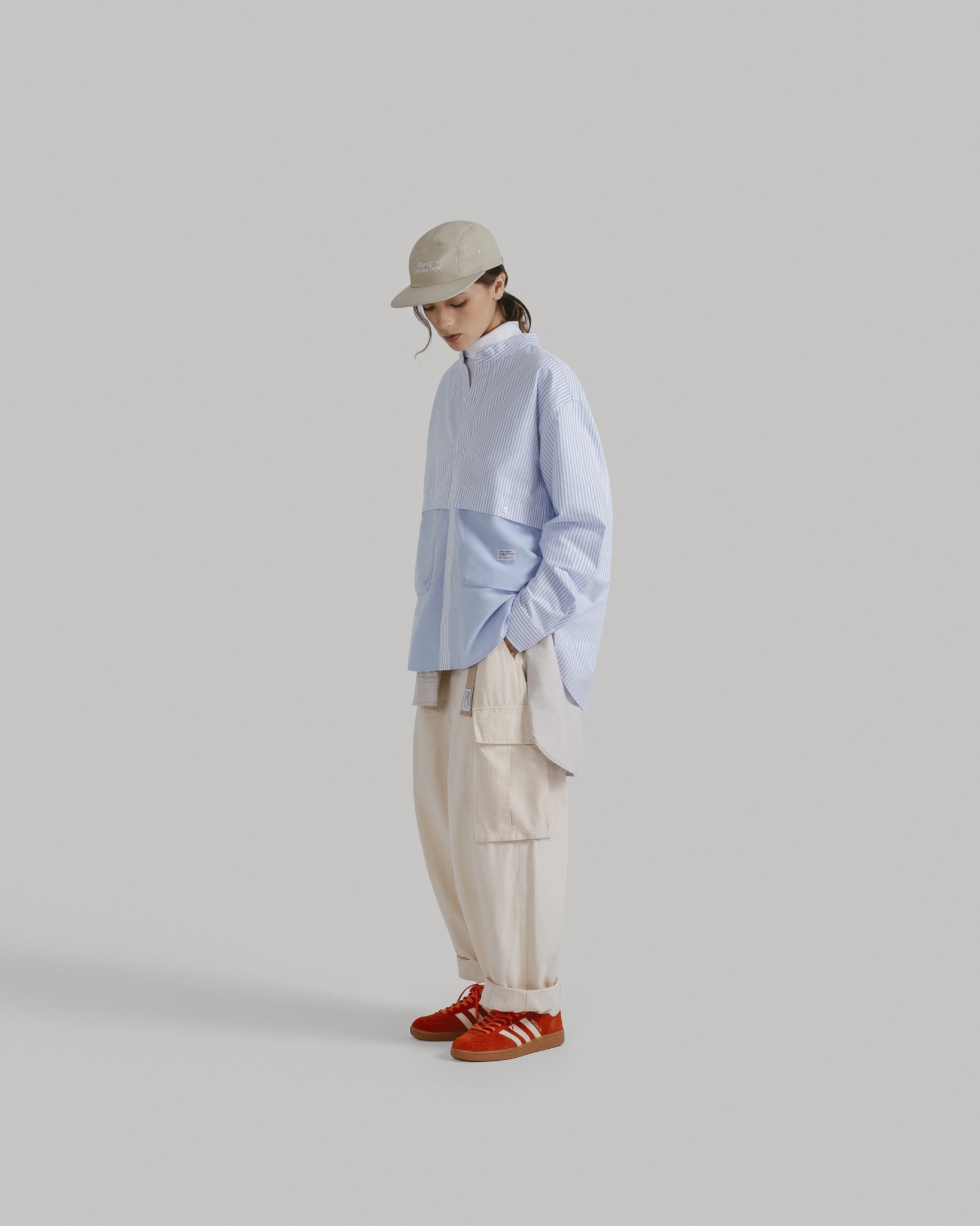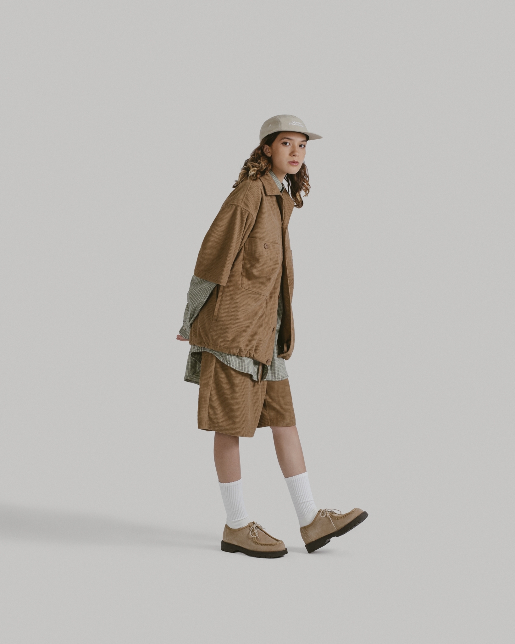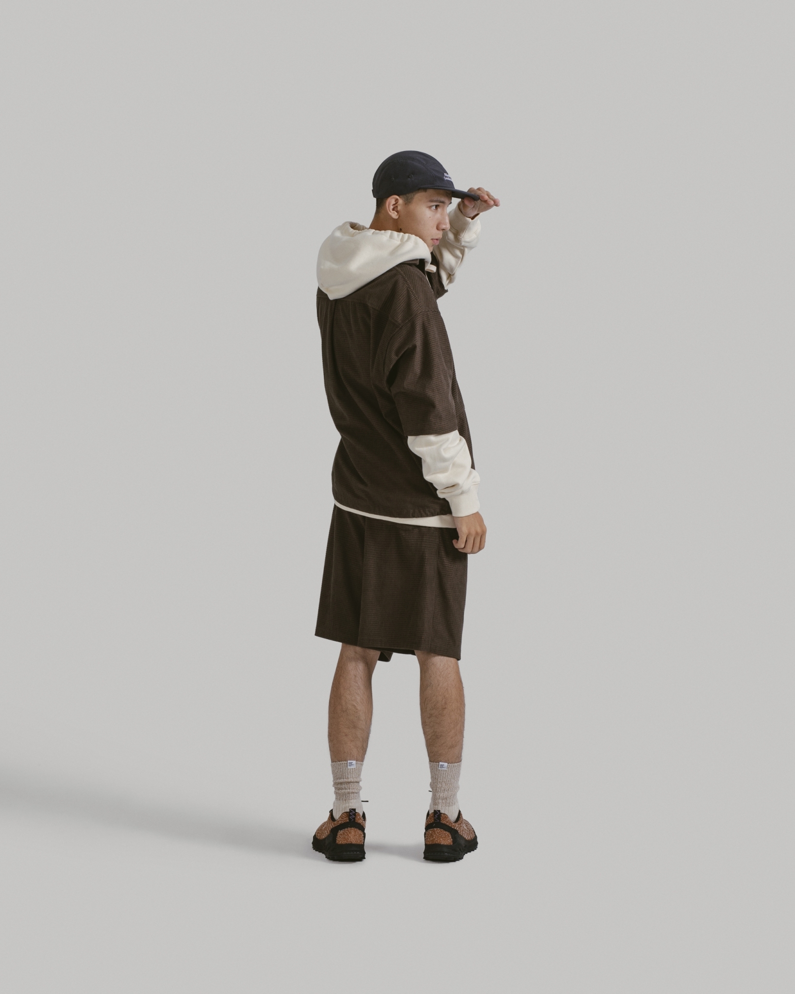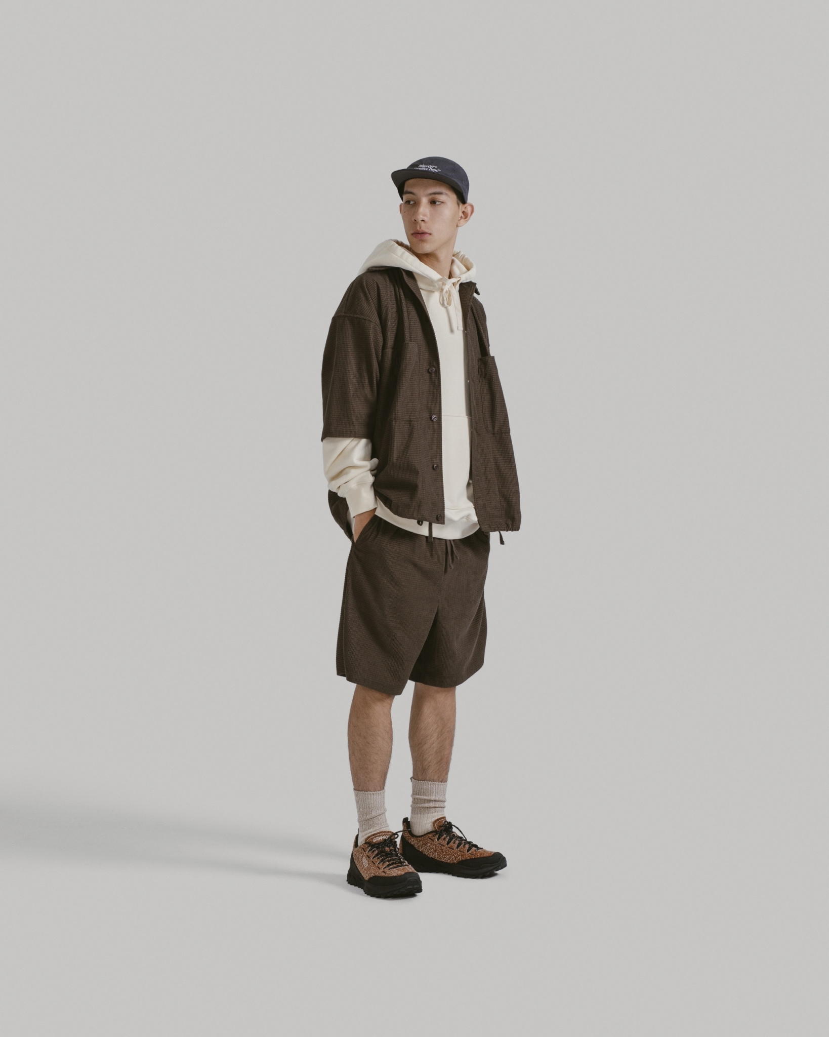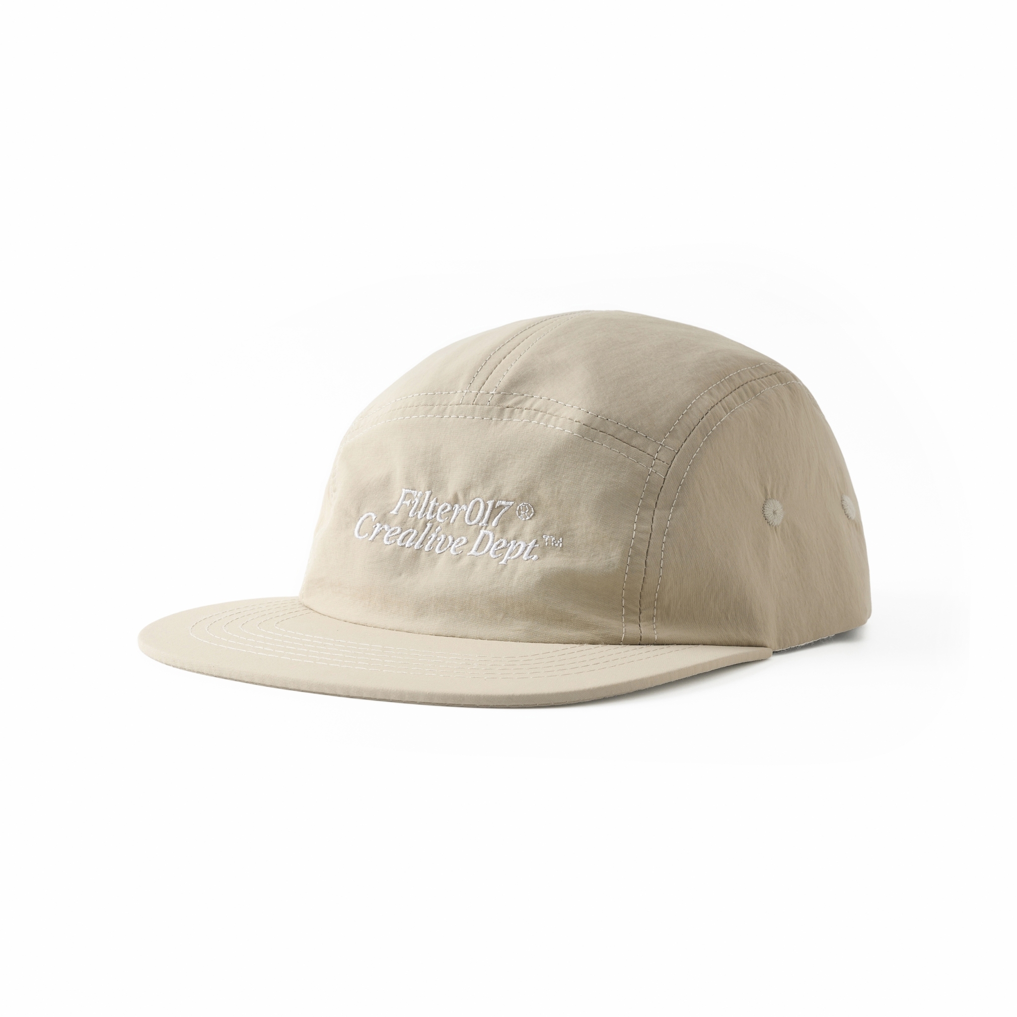以80年代歐美戶外休閒蔚為風潮的五分割帽型,結合本季品牌經典標語設計字樣。面料嚴選輕量、強韌且防風、速乾的基礎防潑水尼龍布,內裡貼合網層,使排汗散熱更迅速,同時增添帽型立體度與舒適感。