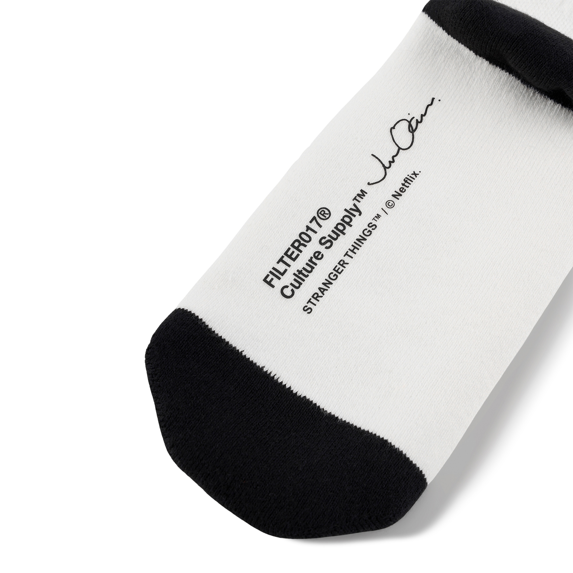 視覺考究80-90 年代美式學院運動風格,以經典鮮明的條紋樣式為基礎,搭配圖像電繡,並特別委託專精織襪的台灣知名品牌faam®製作,於襪身表面以多種織法增添層次及變化性。選用手感滑順的精梳棉以及Protimo® 抑菌紗、LYCRA® 彈性纖維、毛圈緩震,給予襪款最佳的品質與耐用度。