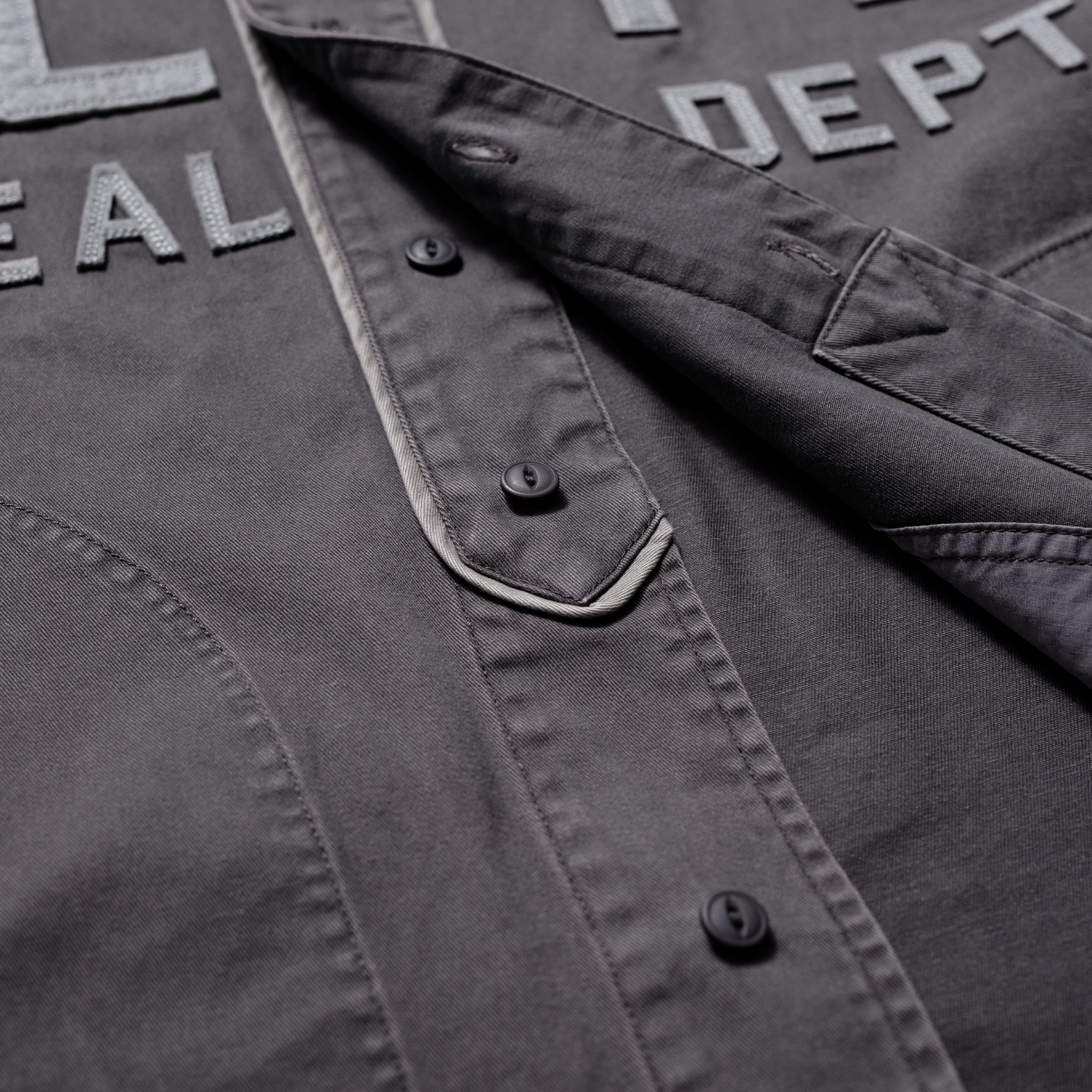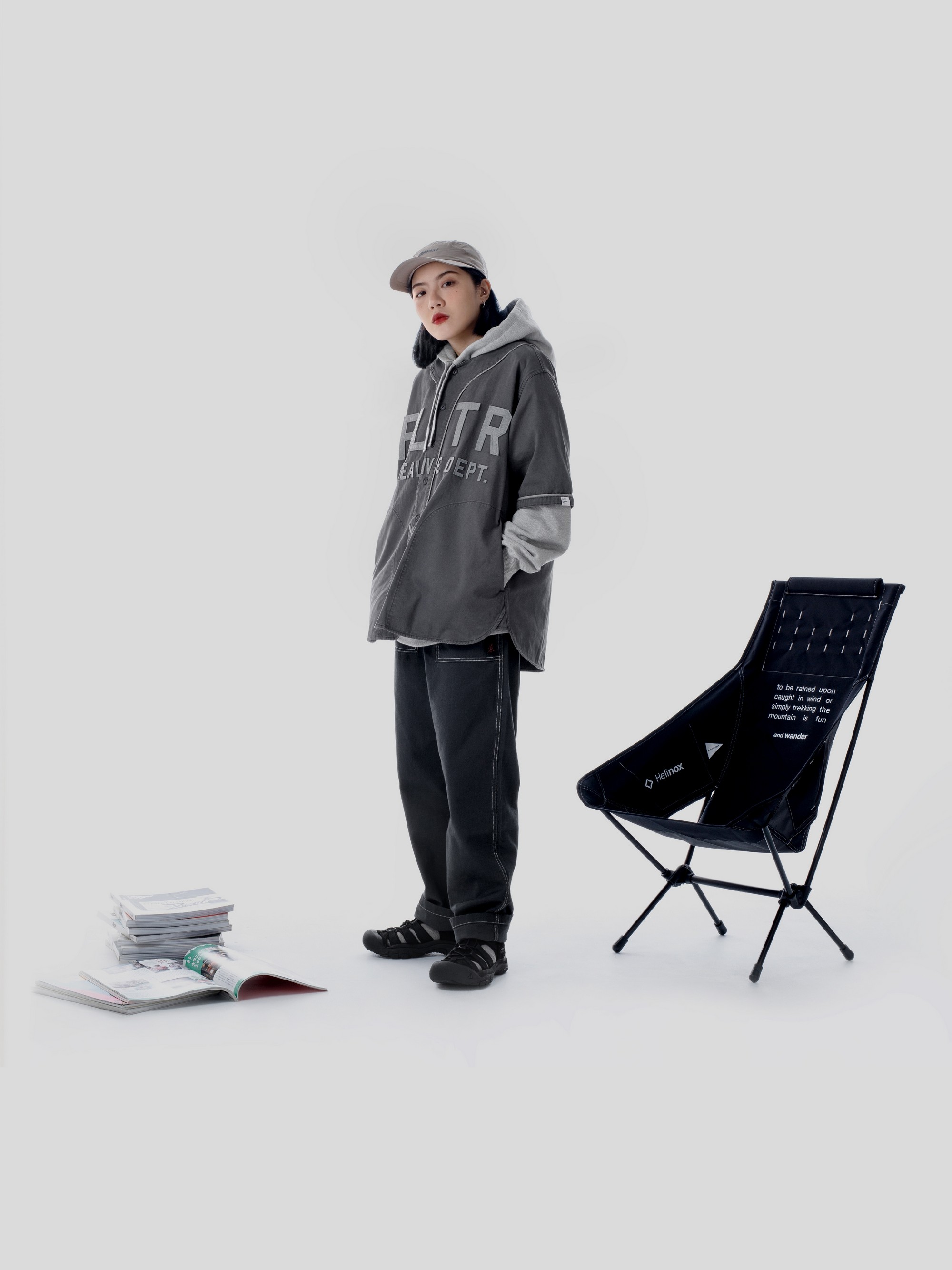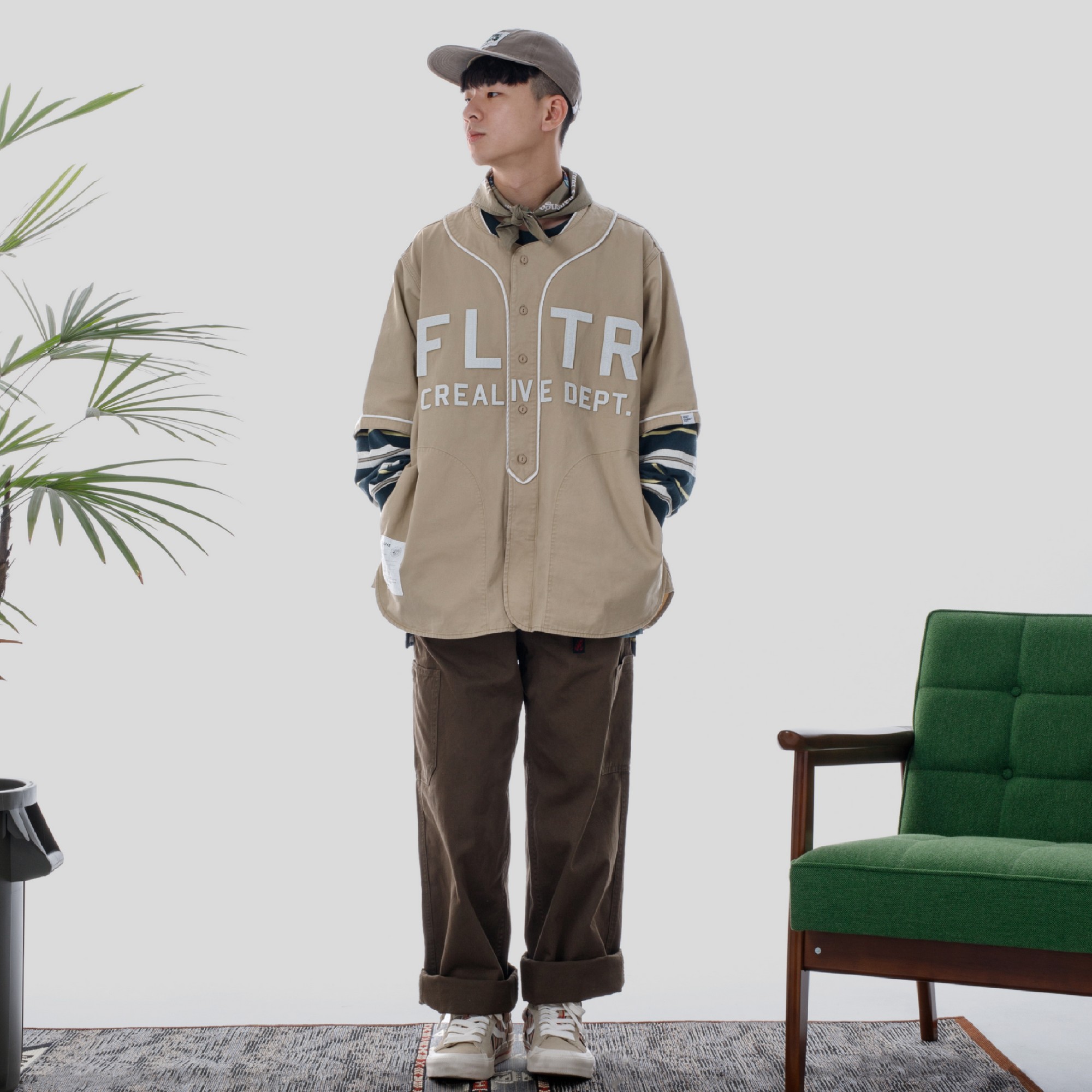 以美式復古與街頭文化底蘊為靈感,考究取材早年美式棒球隊制式運動服,胸前箭形開襟以出芽工藝設計搭配毛氈布字樣,本體嚴選磨毛棉質厚磅斜紋以石酵洗舊工藝處理呈現洗鍊手感與視覺,兩側口袋增添收納功能性,材質選用厚磅棉斜紋及立領裁片大幅提升視覺上更加鮮明立體,將經典元素揉合現代穿著實用與搭配性。