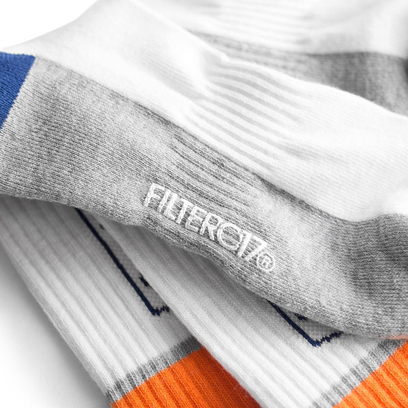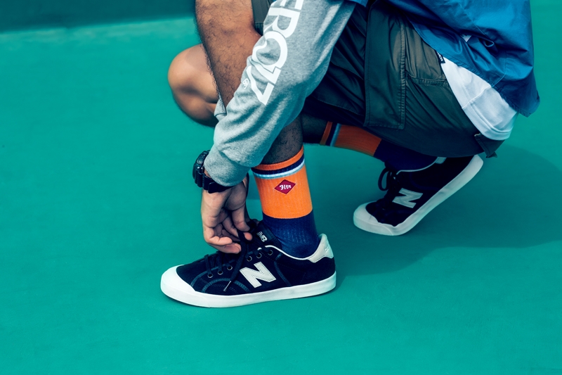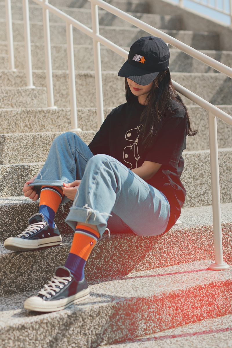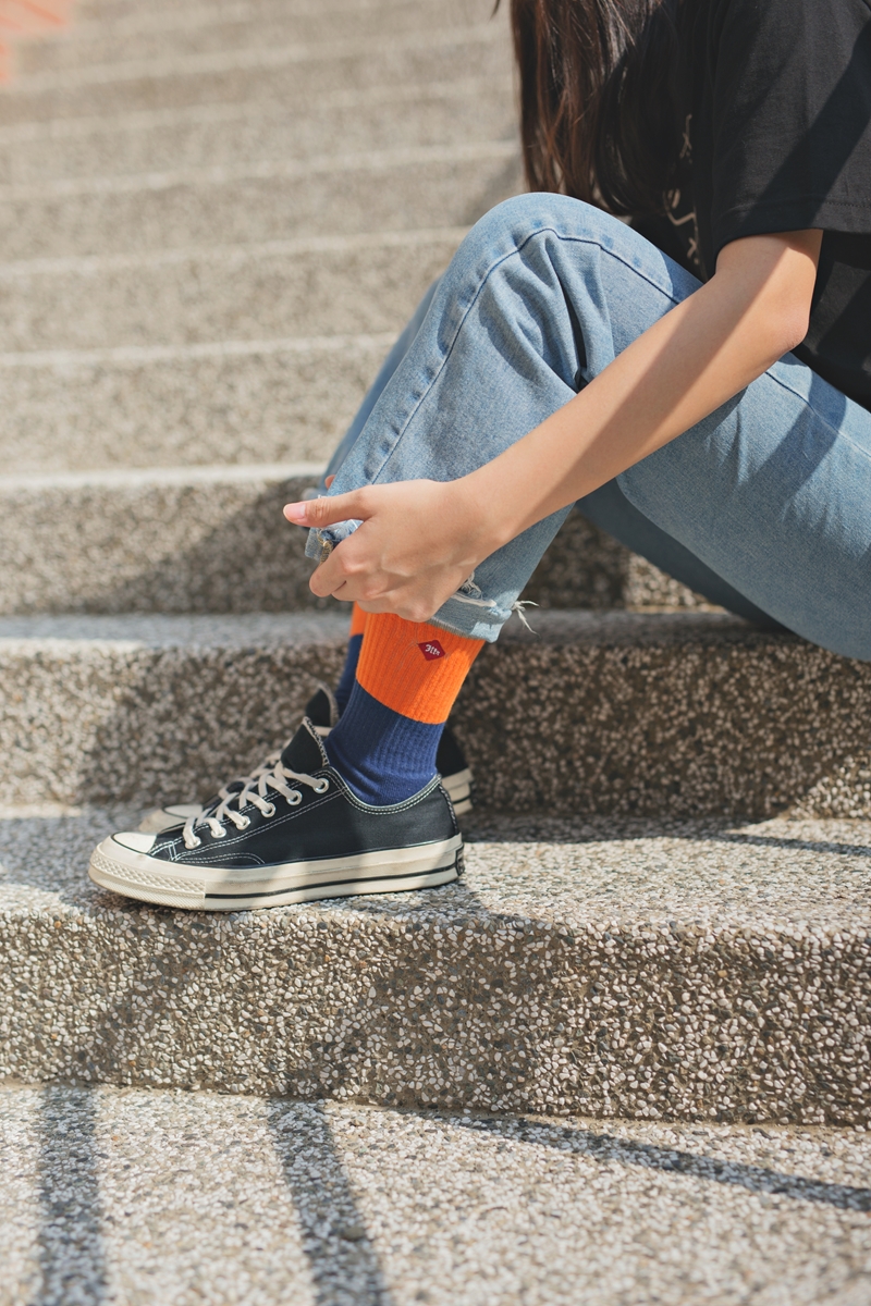 將充滿 90 年代風格的大色塊分割設計、飽滿明亮時代色彩的整體視覺經緻呈現於襪身款,