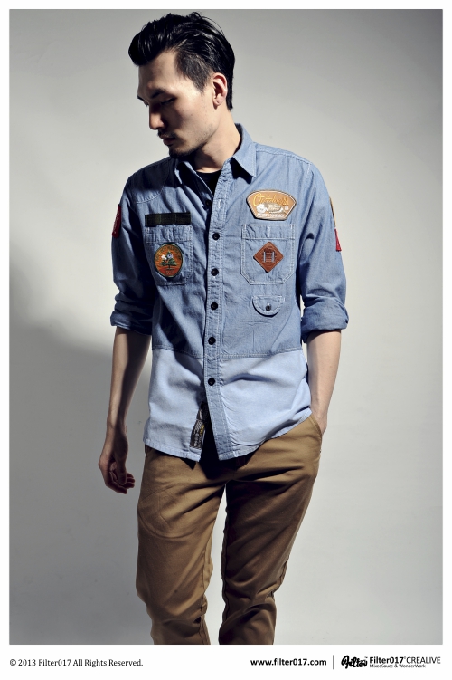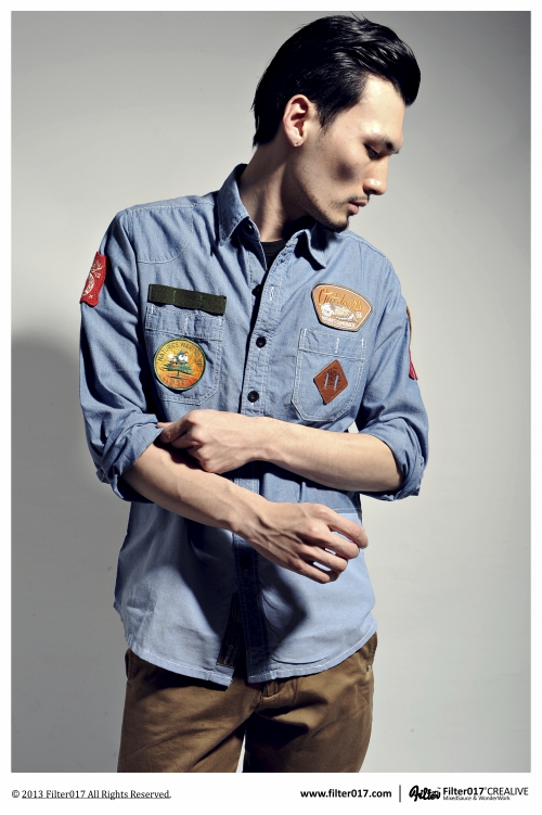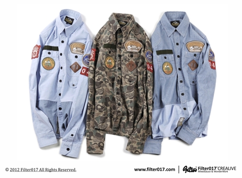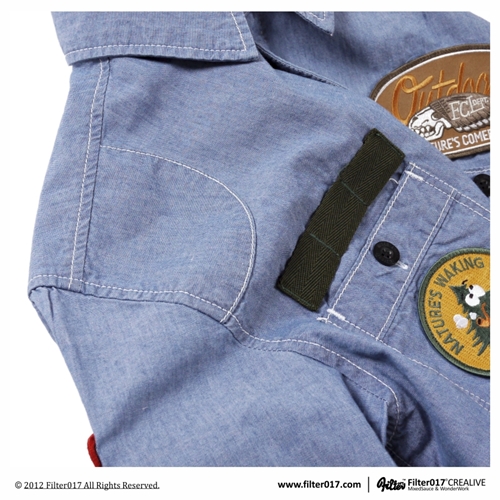 以獨家設計失落迷彩布紋及特選純棉牛津布,透過洗鍊質感及拼接手法,加以結合童軍及護林員、野地營隊等元素靈感做為設計的拼接工作襯衫,