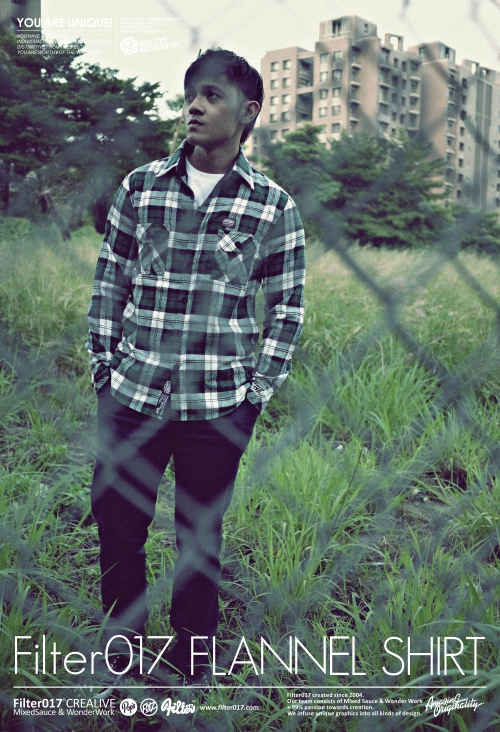 Filter017這次推出的"法蘭絨鉚釘襯衫"共分為兩種花色款式,視覺上以基本、簡單為此次的設計訴求, 輕磨毛布質搭配細節處精緻設定仍不失質感與用心,特別是胸口口袋處的LOGO鉚釘,以及手腕處刺繡, 讓整體簡約確不過份單調,發揮畫龍點睛的效果。