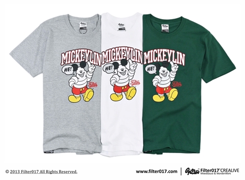 進而將知名輪胎業吉祥物與美國知名卡通人物三者完美合體,成為滑稽詭異的全新角色"MICKEYLIN"。