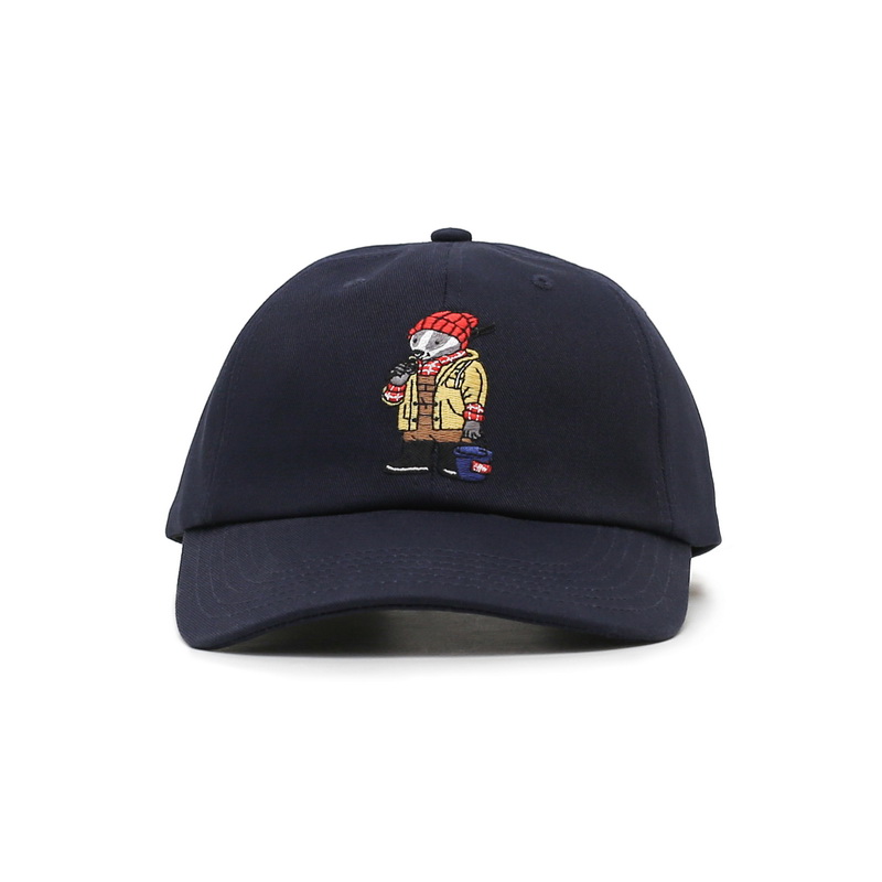 將充滿墾趣氛圍的戶外獾圖像,利用精緻刺繡的方式,巧妙的融入於近期重返街頭流行的老式棒球帽中。