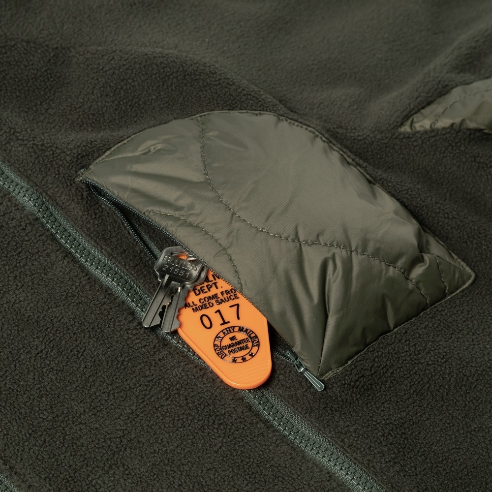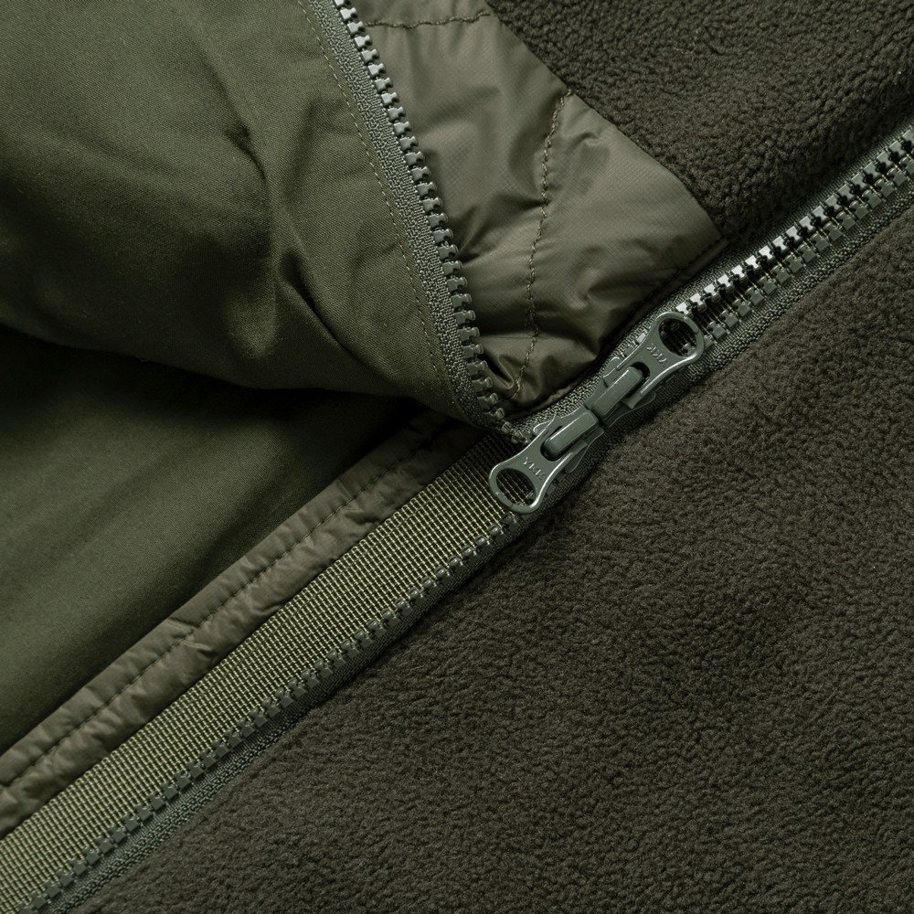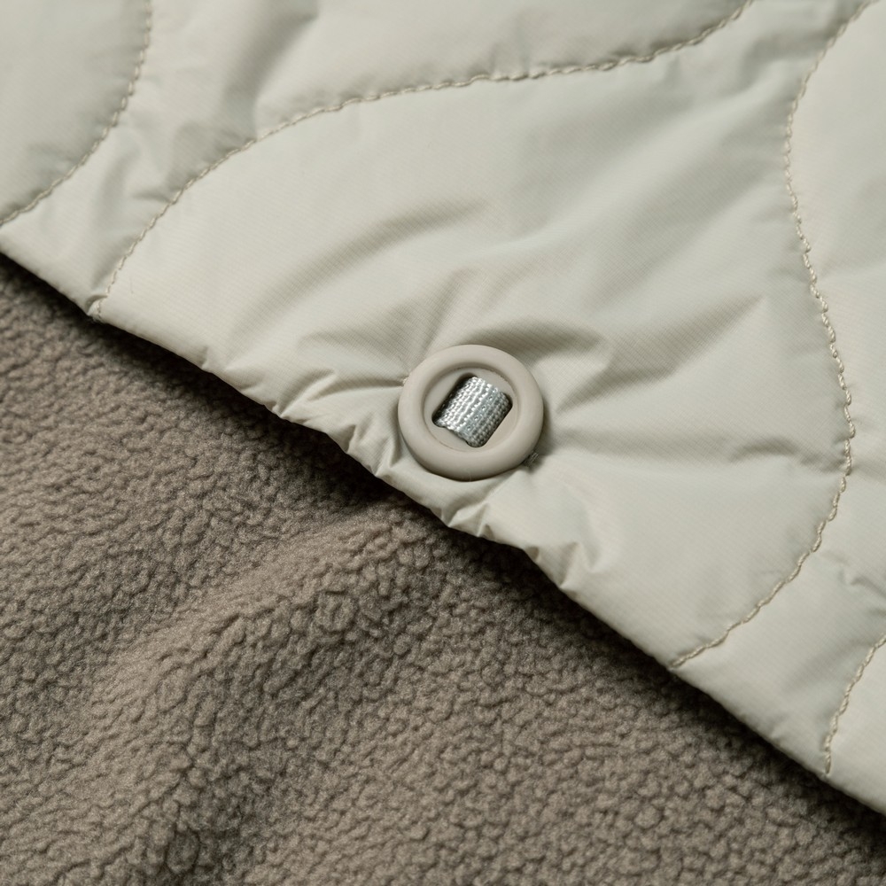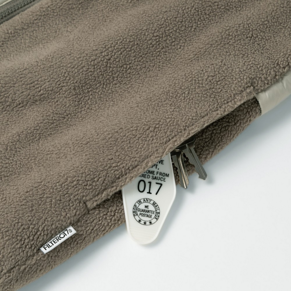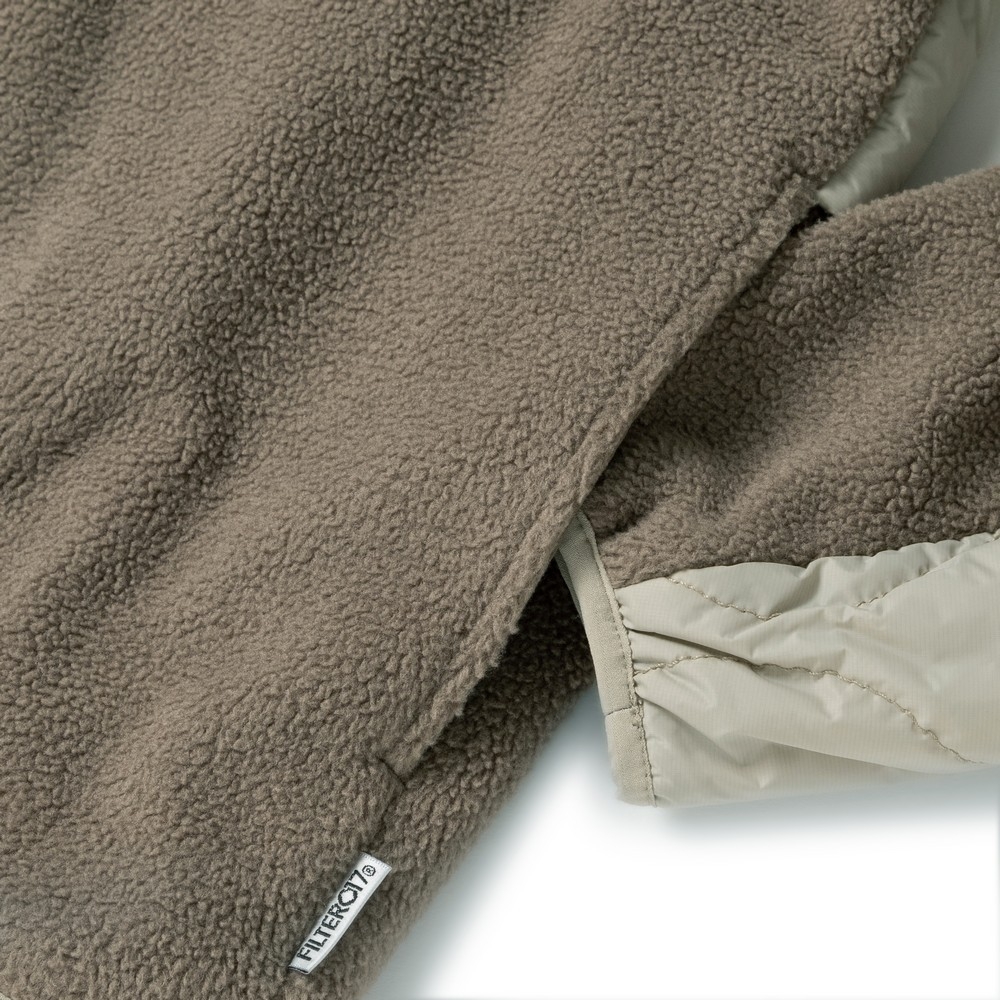由70-80年代美式復古戶外機能服裝中汲取靈感,將戶外及軍工裝元素拼接混合,巧妙結合兼具保暖度與風格性的搖粒絨面料與衍縫工法,