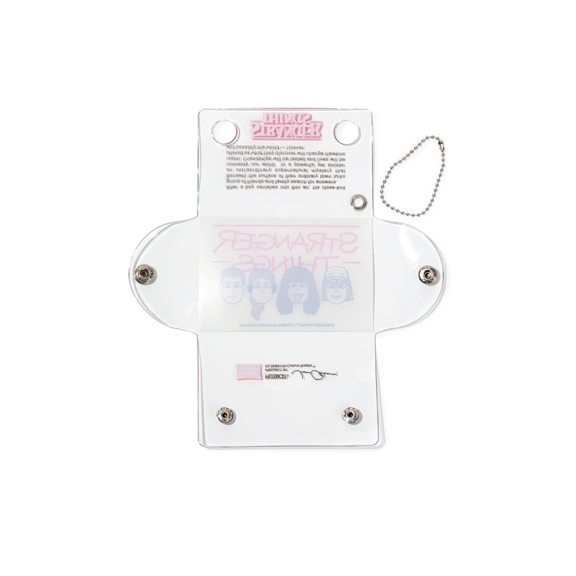 此款單品不僅可以收納零錢、票卡、名片等小物,亦可做為吊飾使用。除了運用透明材質便於識別內容物以外,可攤開平鋪的結構,提升拿取與收納的功能性,為生活上不可或缺的隨身小物。