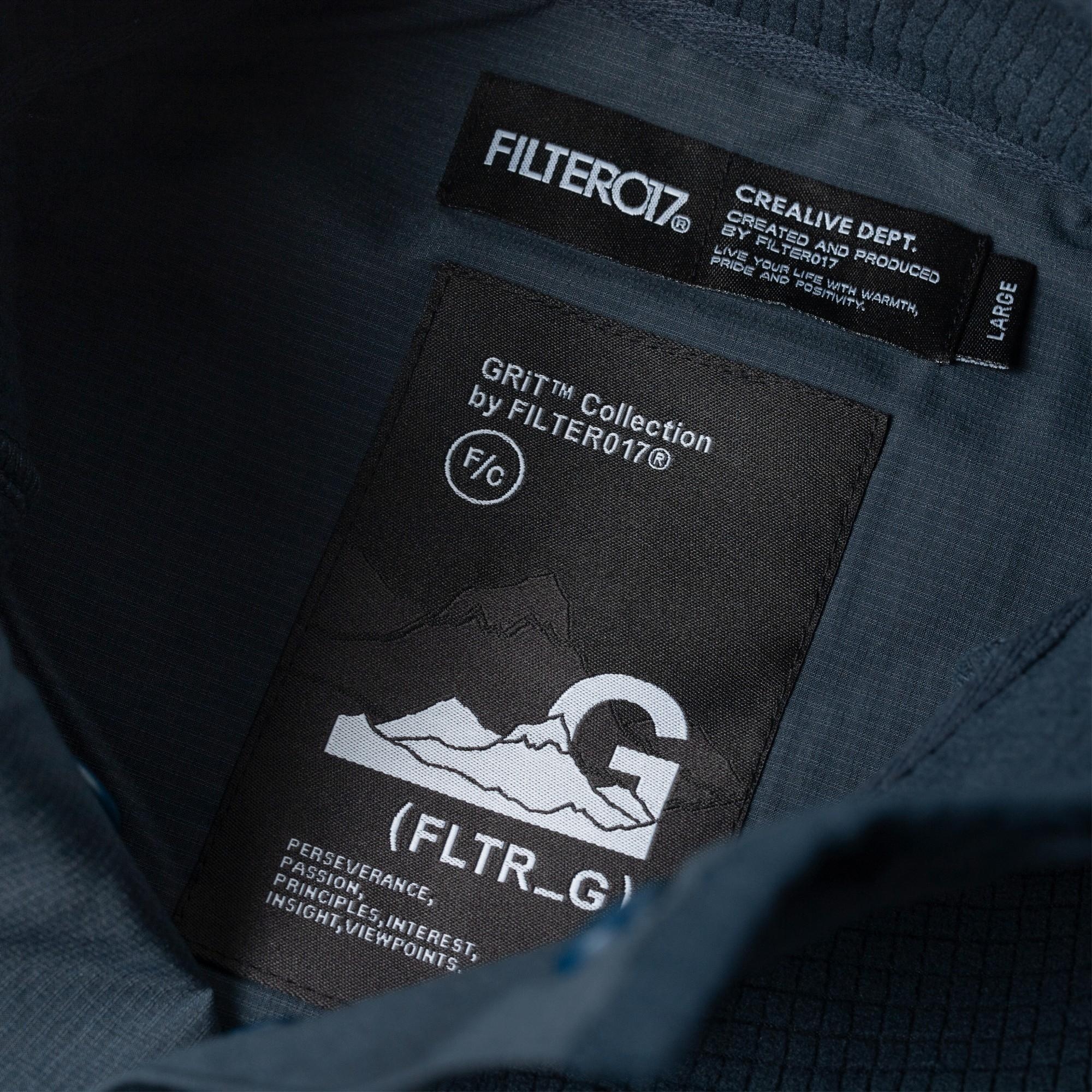 以GRiT™ 為命名破題,FILTER017® 於2023秋冬之際推出機能概念服飾企劃,於系列形象與單品型態上之演繹,大膽跳脫FILTER017® 在服飾本線上原有的輪廓及思維,欲刻意營造與定調於品牌過去少見的高冷孤傲氣息氛圍。