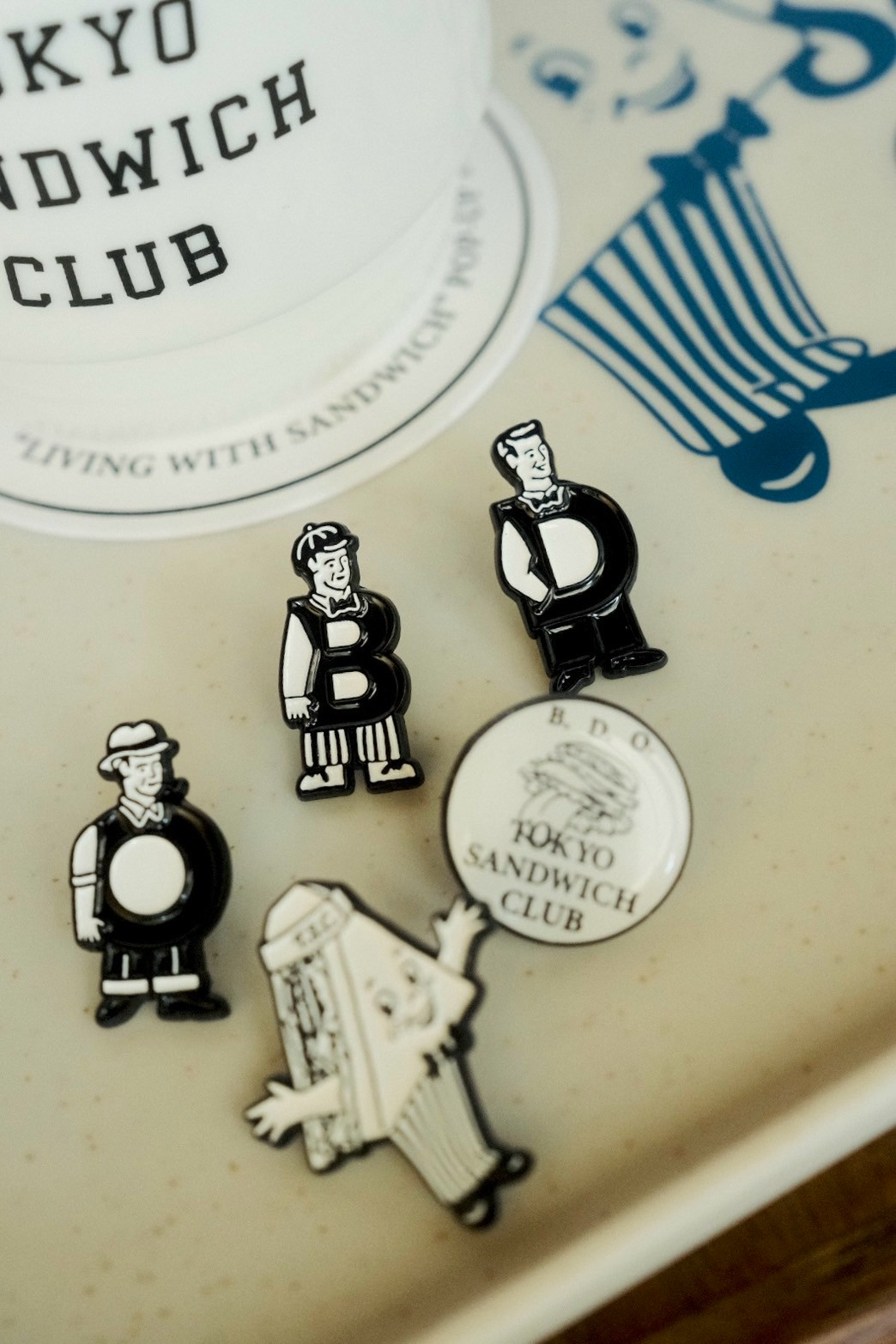 以Tokyo Sandwich Club 品牌經典圖像作為主視覺,藉由沖壓鑄型、人工入色工序將色彩與細節精緻呈現,整體色澤鮮艷飽和,細節精緻出色,可用於服裝、織品及包包配飾等,為日常搭配增添個人特色。