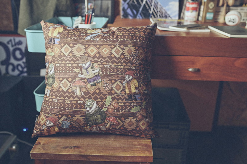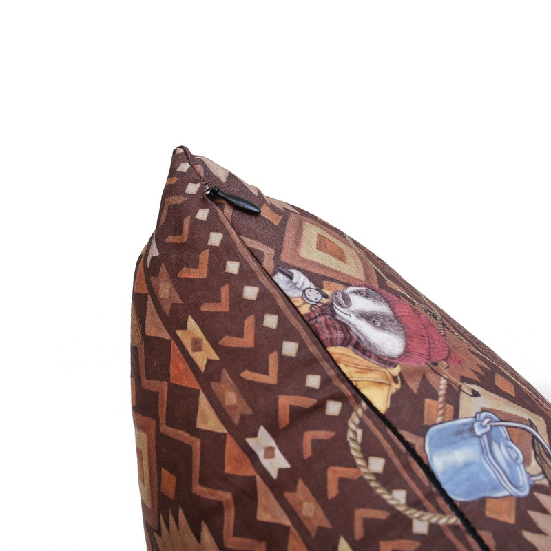 透過精緻的印染技法,巧妙地融入於生活居家常見的抱枕中,展現充滿民族復古風格的特殊質感。
