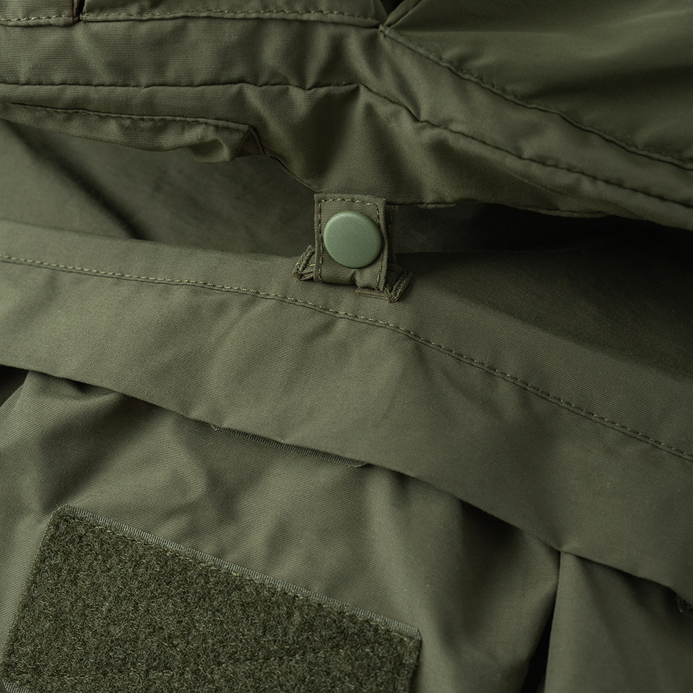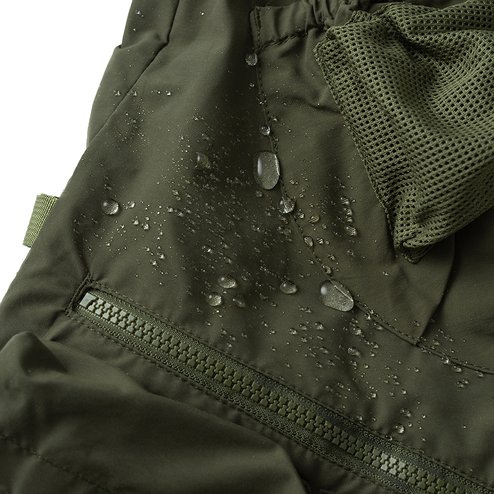 棉紗混合横向尼龍而成的面料,不僅保留了棉料的舒適手感 ,面料經鐵氟龍塗層處理後,更大幅提升了整體的防潑水和抗汙機能。