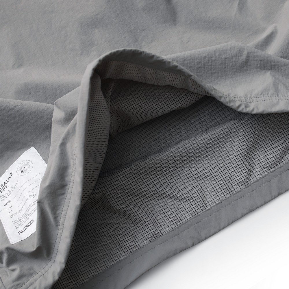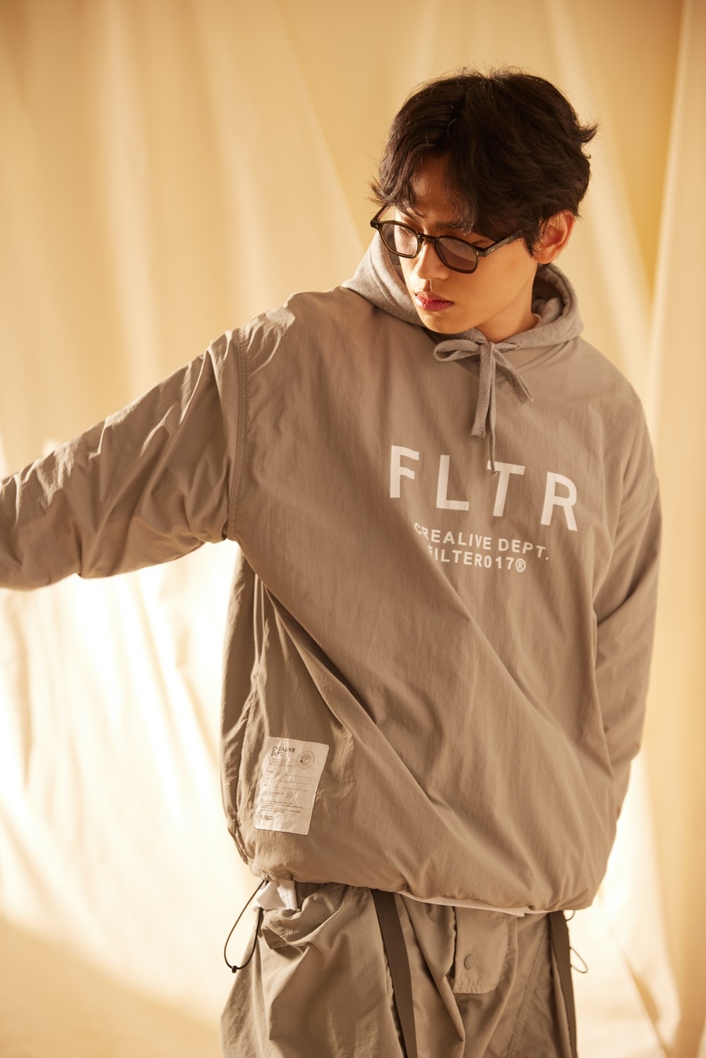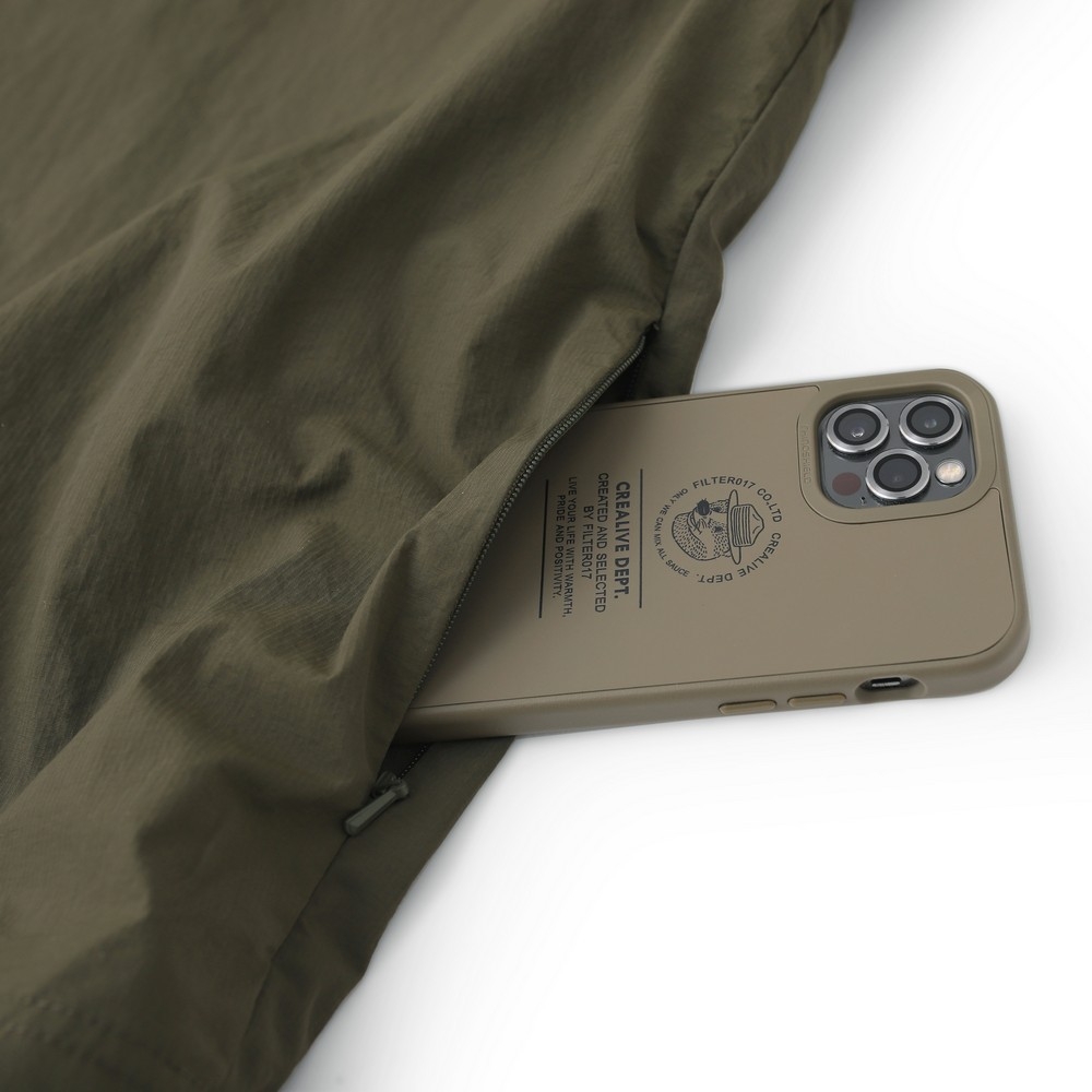 本體兩側透氣開孔,脇邊搭載YKK®拉鍊隱藏式口袋,於日常穿著更為舒適便利,下擺輔以彈性抽繩調節系統,可依照活動與搭配考量做出不同變化。細節與視覺識別上以訂製杜邦™ Tyvek® 材質印製的品牌標籤,整體呈現帶有Filter017品牌獨到詮釋的戶外氛圍語彙,於流行容易搭配的軍事工裝視覺基礎下,加以揉合軟調性質與元素,有別於一般過於硬核的軍工風格。