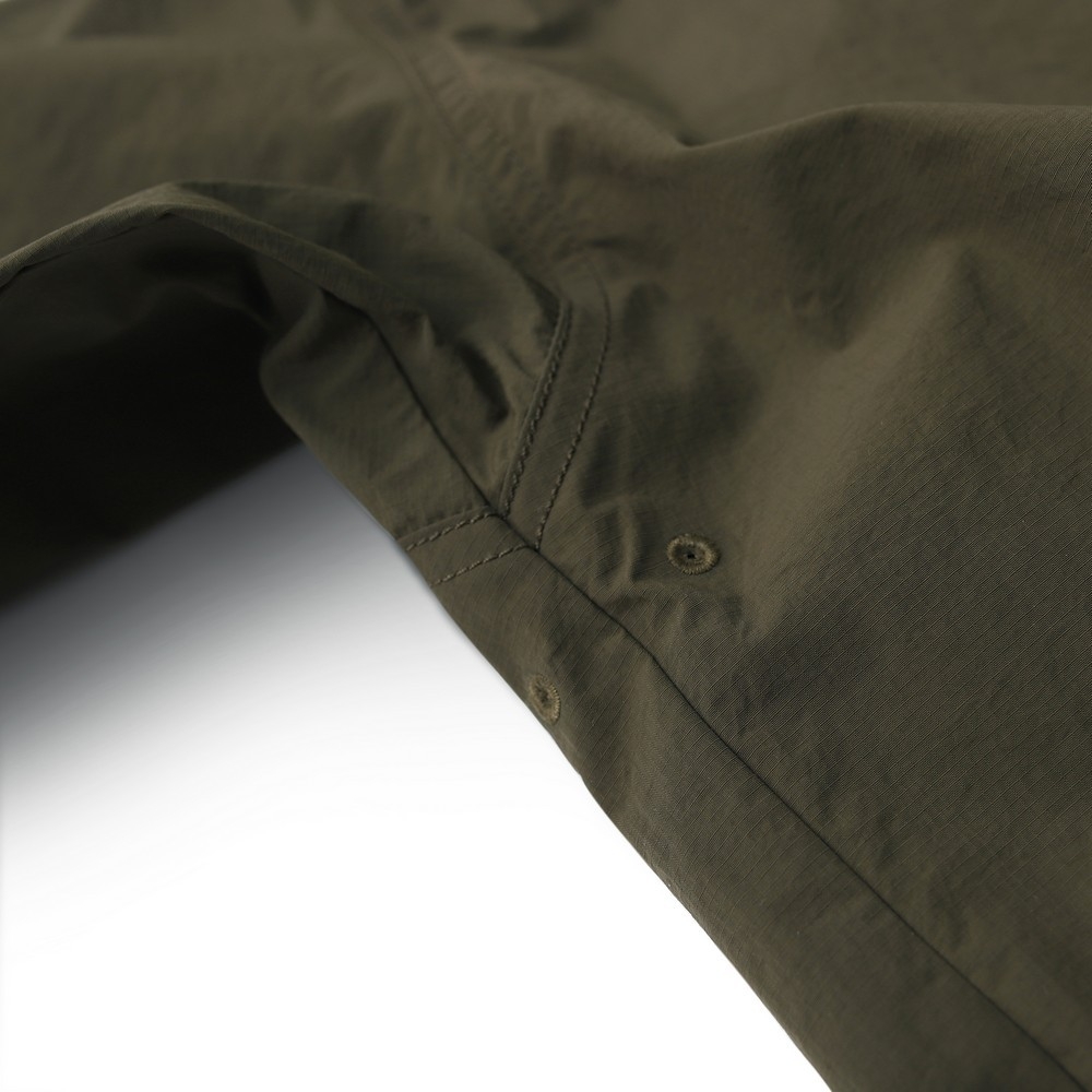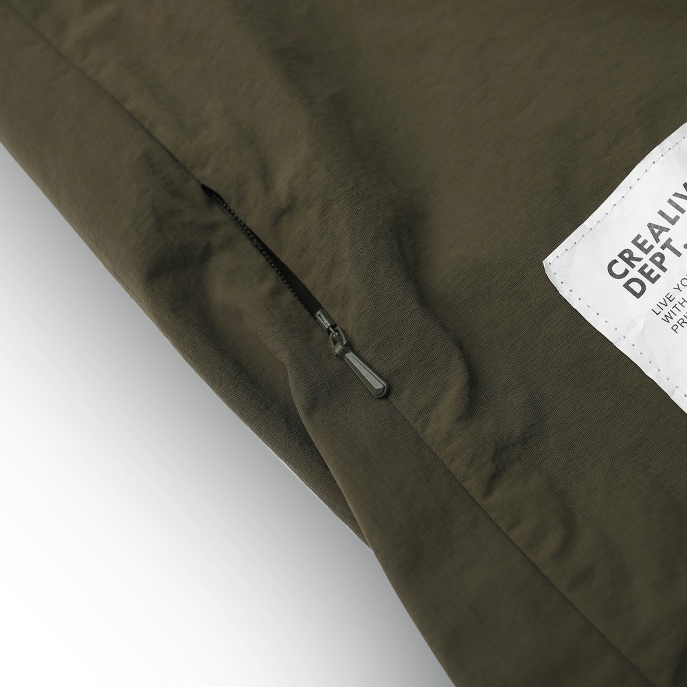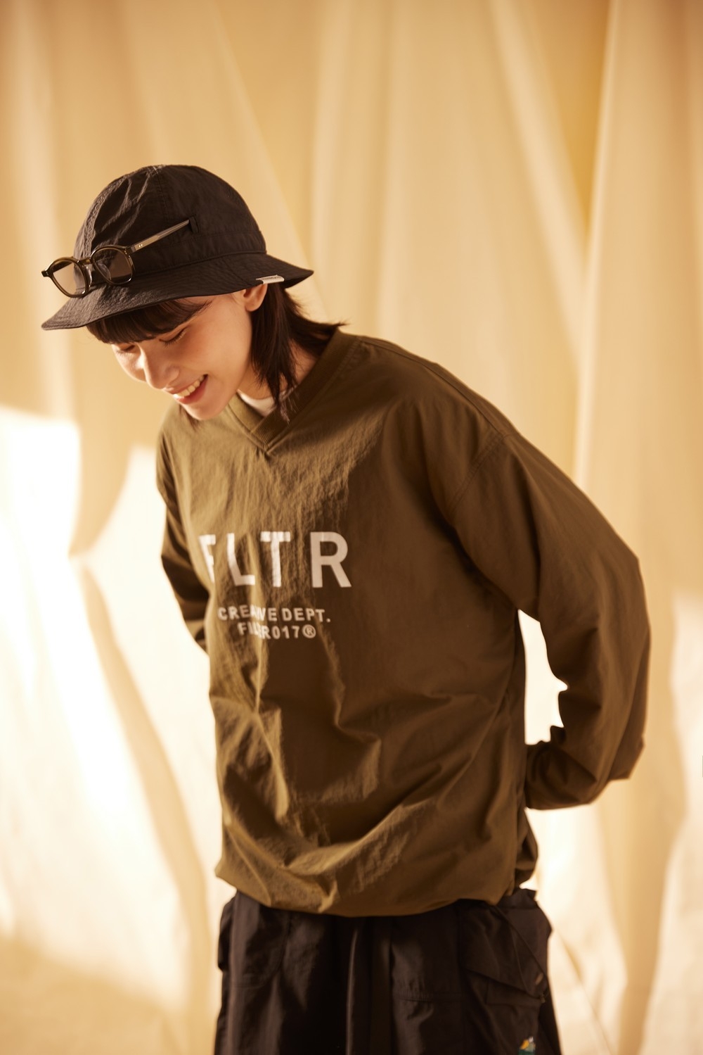 本體兩側透氣開孔,脇邊搭載YKK®拉鍊隱藏式口袋,於日常穿著更為舒適便利,下擺輔以彈性抽繩調節系統,可依照活動與搭配考量做出不同變化。細節與視覺識別上以訂製杜邦™ Tyvek® 材質印製的品牌標籤,整體呈現帶有Filter017品牌獨到詮釋的戶外氛圍語彙,於流行容易搭配的軍事工裝視覺基礎下,加以揉合軟調性質與元素,有別於一般過於硬核的軍工風格。