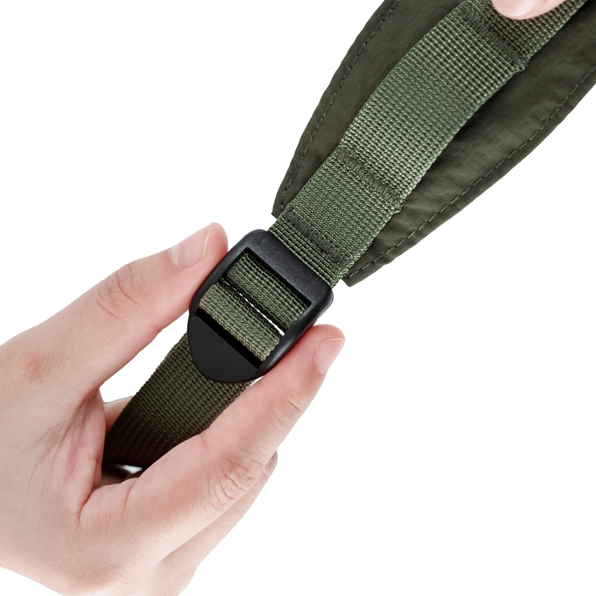 肩帶上的MOLLE系統,除可依需求自由組裝配件,也能自包款上卸下,作為車內或營地內吊掛小物的掛繩使用,扣具調節亦可根據個人使用習慣變換左右背法,提供靈活與最大限度的自定義。