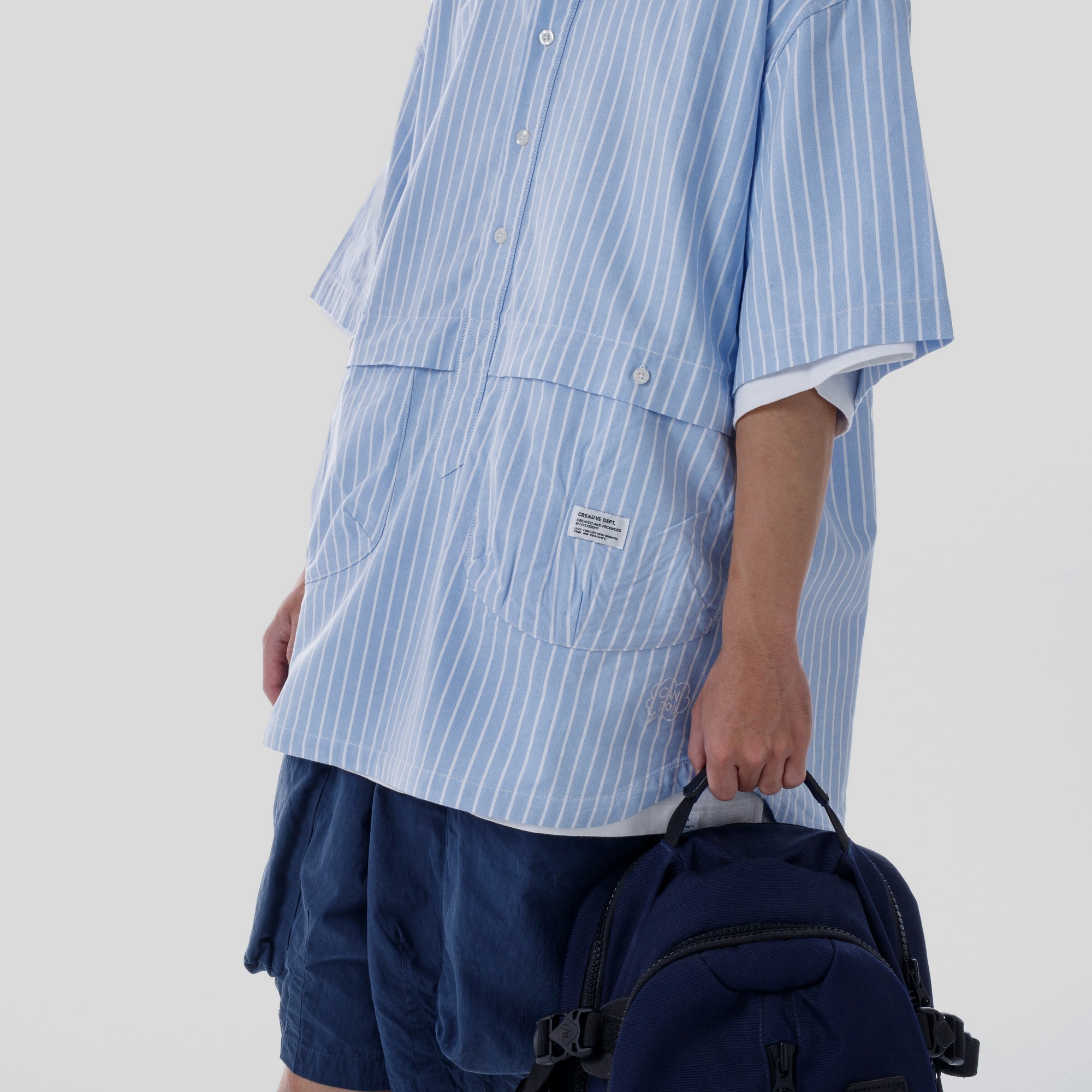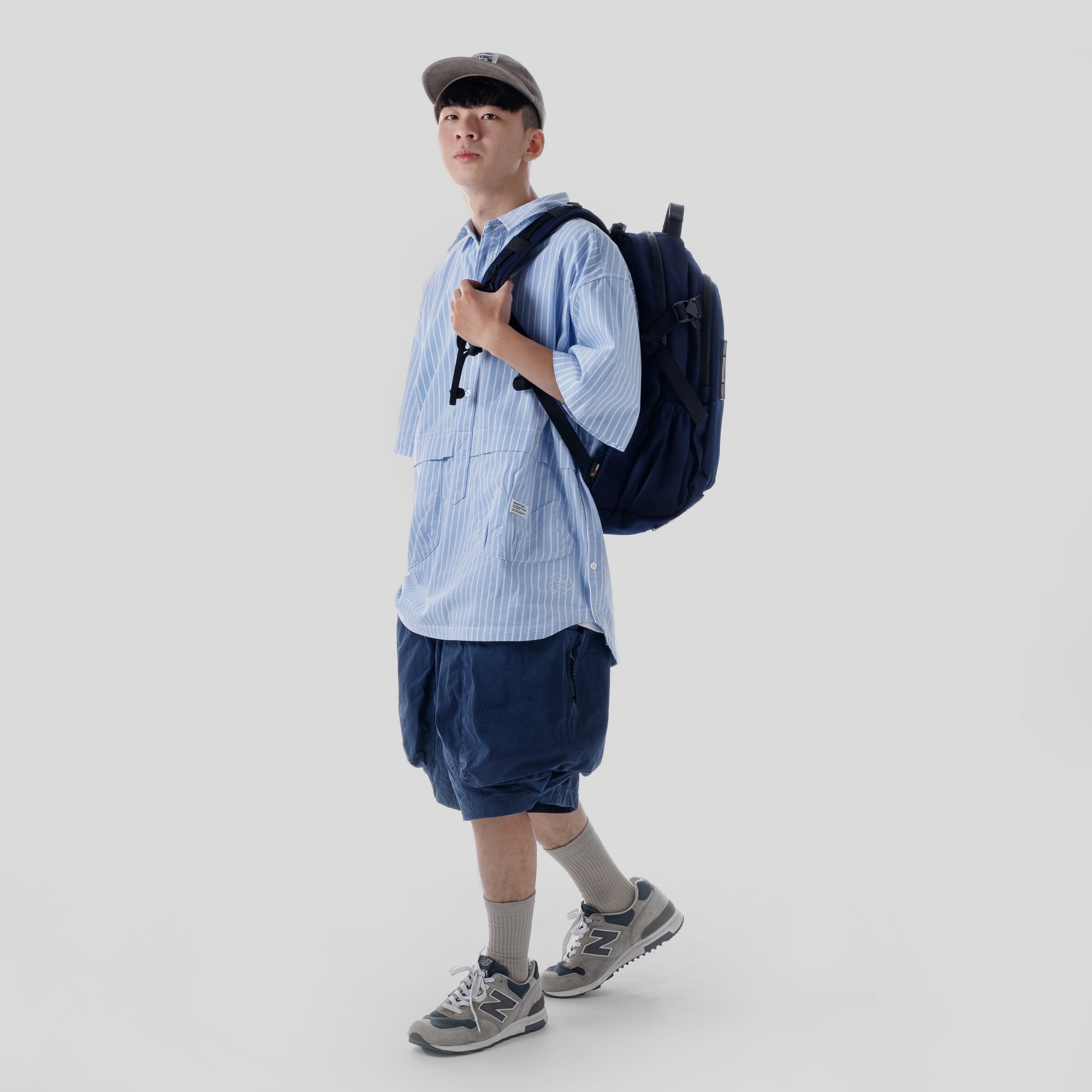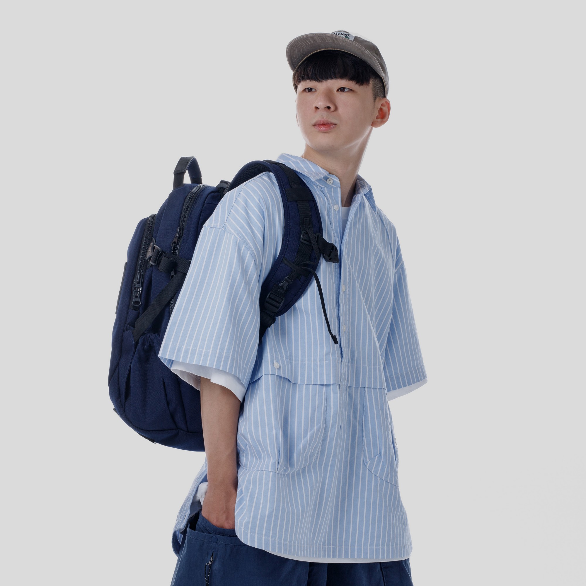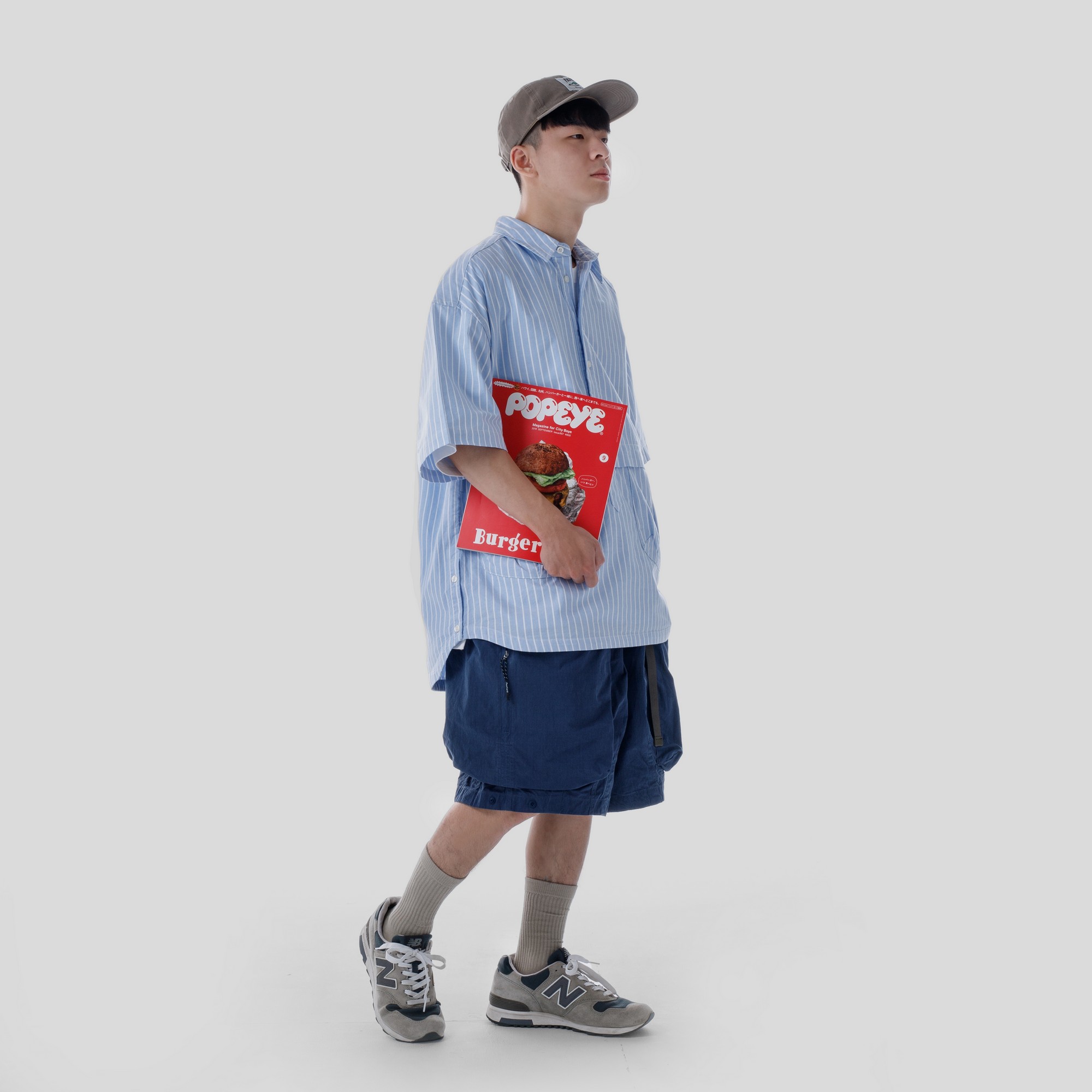 延續 City boy 街頭學院風潮,本次牛津拼接短袖襯衫,以半開襟的設計與布料拼接搭配立體口袋設計在視覺上做出層次變化,寬版落肩的剪裁設計與質感極佳的牛津混紡沙面料相互交織,讓你在活動中都能保持舒適度。