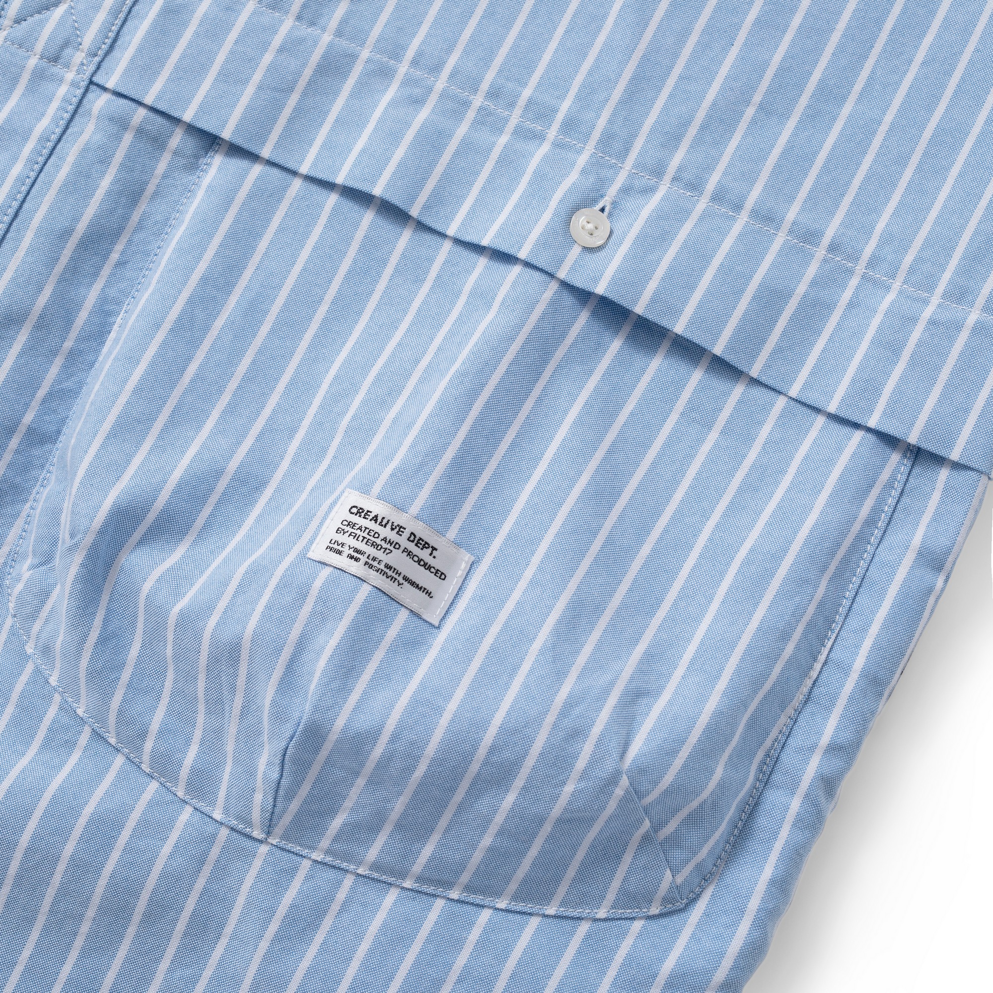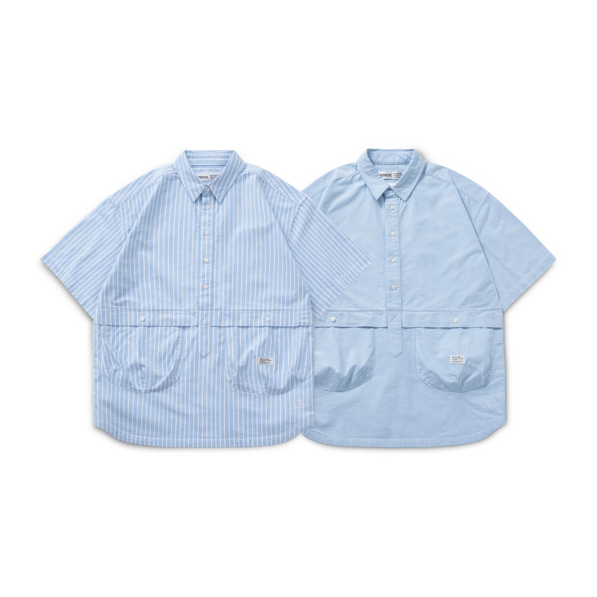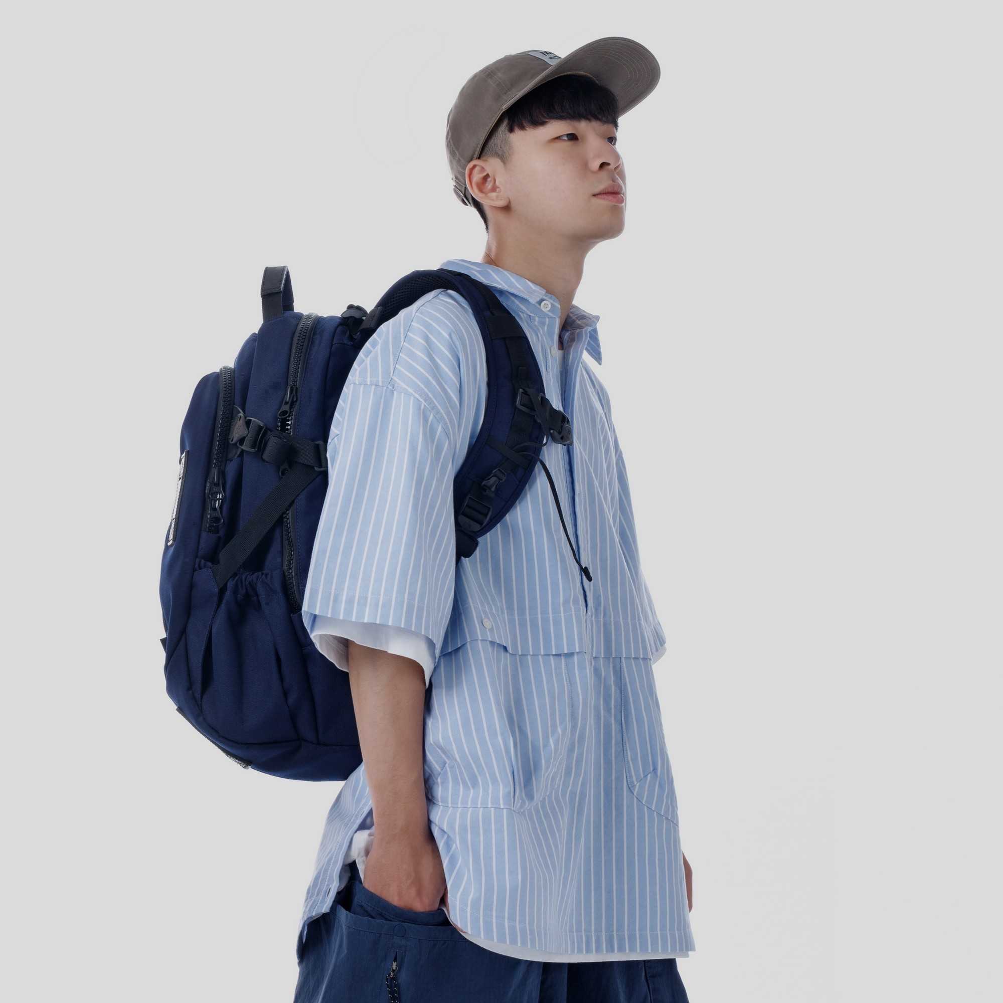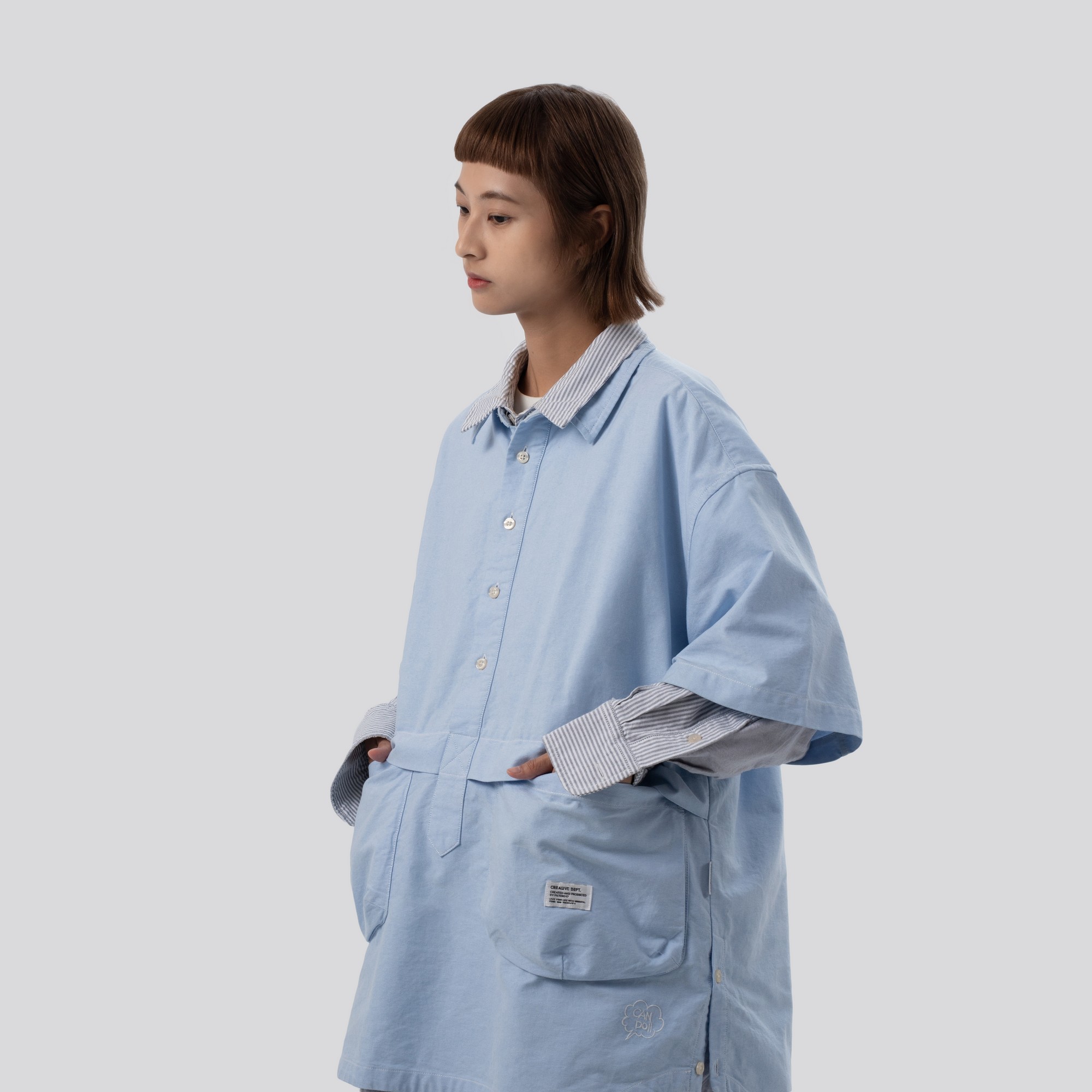 延續 City boy 街頭學院風潮,本次牛津拼接短袖襯衫,以半開襟的設計與布料拼接搭配立體口袋設計在視覺上做出層次變化,寬版落肩的剪裁設計與質感極佳的牛津混紡沙面料相互交織,讓你在活動中都能保持舒適度。