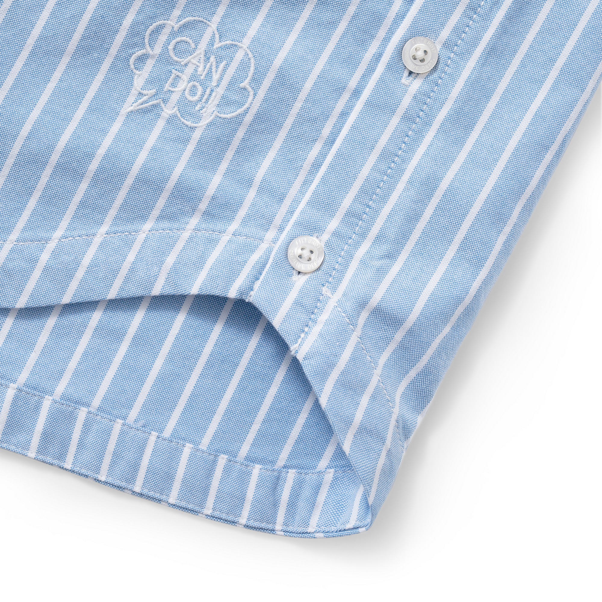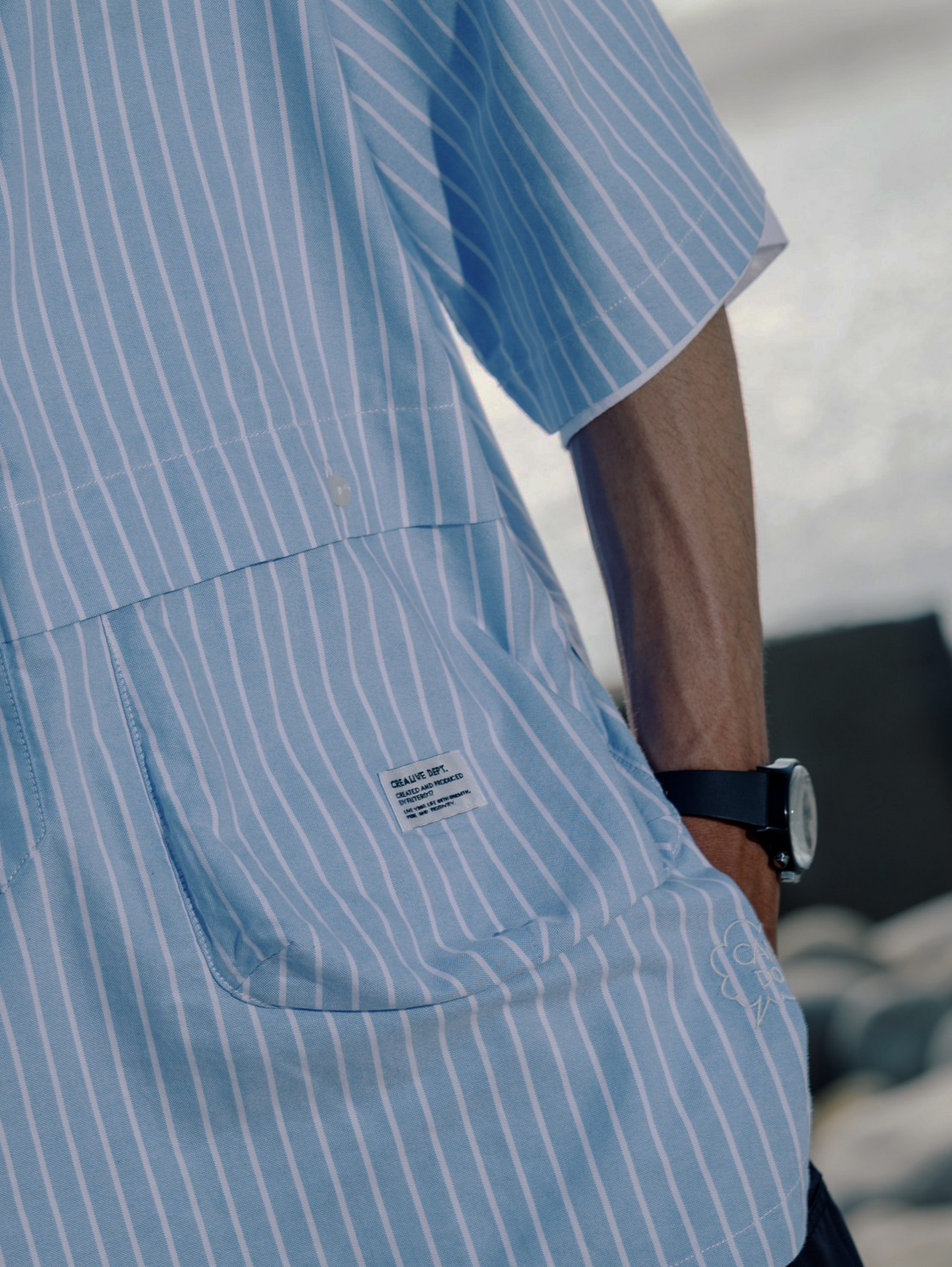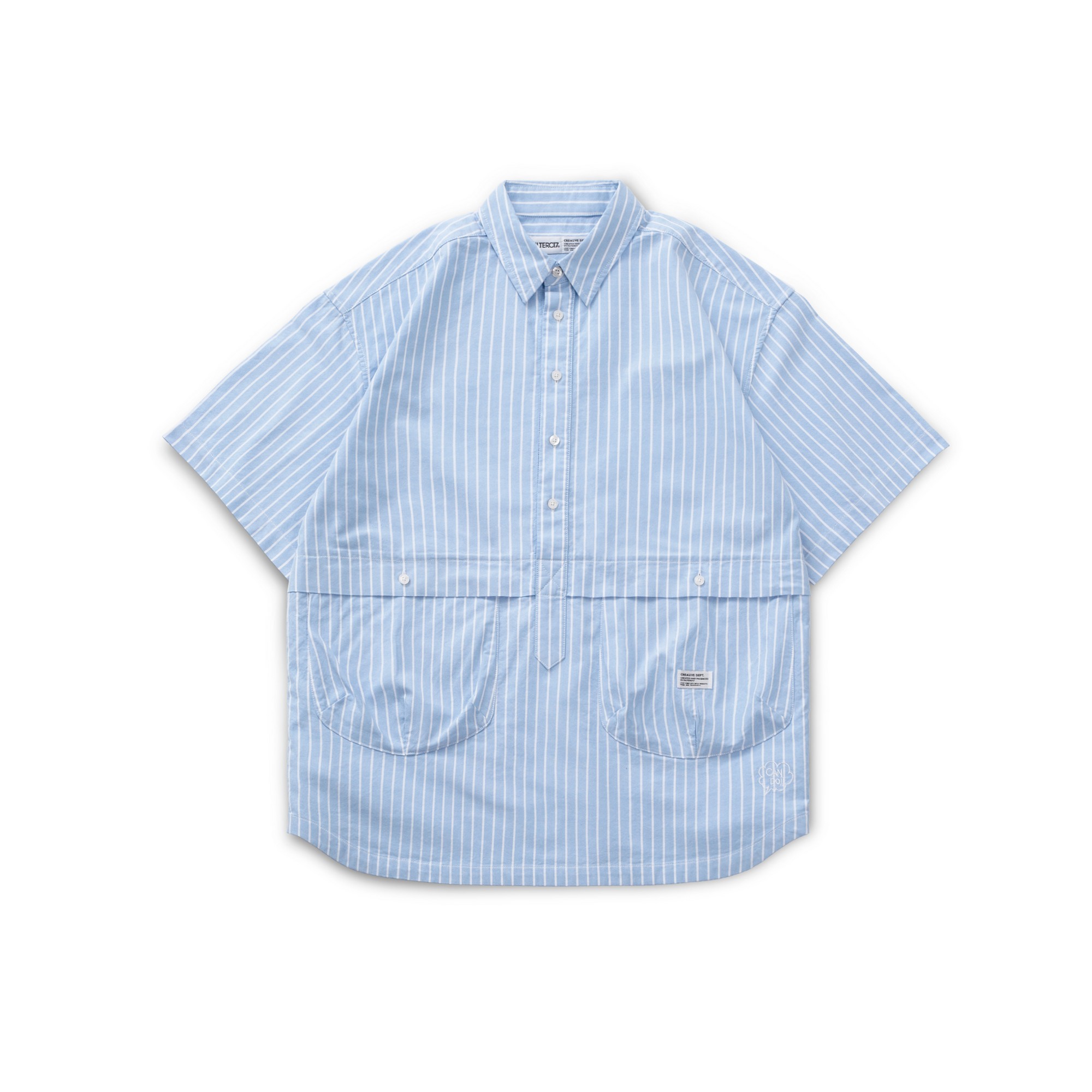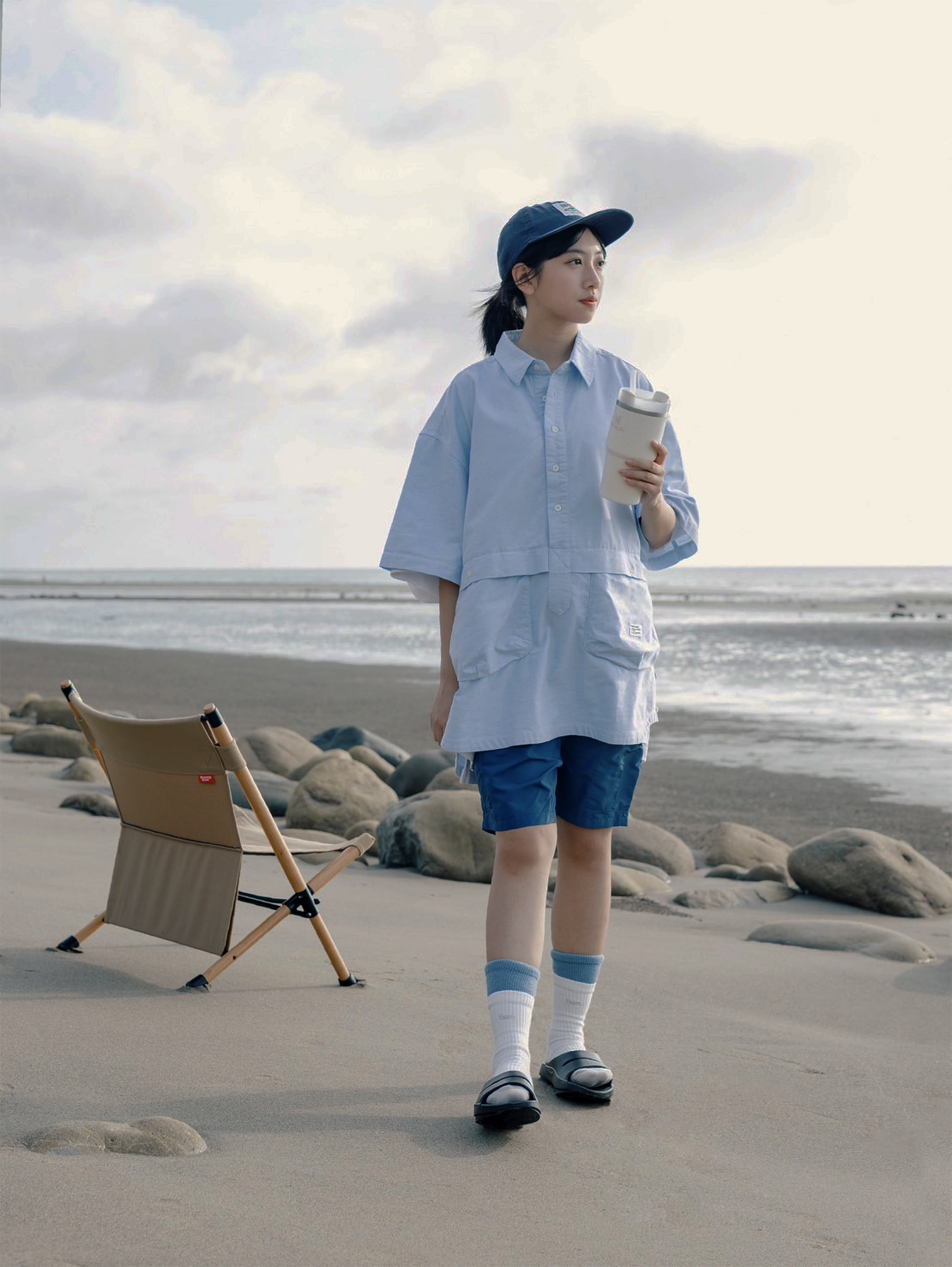延續 City boy 街頭學院風潮,本次牛津拼接短袖襯衫,以半開襟的設計與布料拼接搭配立體口袋設計在視覺上做出層次變化,寬版落肩的剪裁設計與質感極佳的牛津混紡沙面料相互交織,讓你在活動中都能保持舒適度。