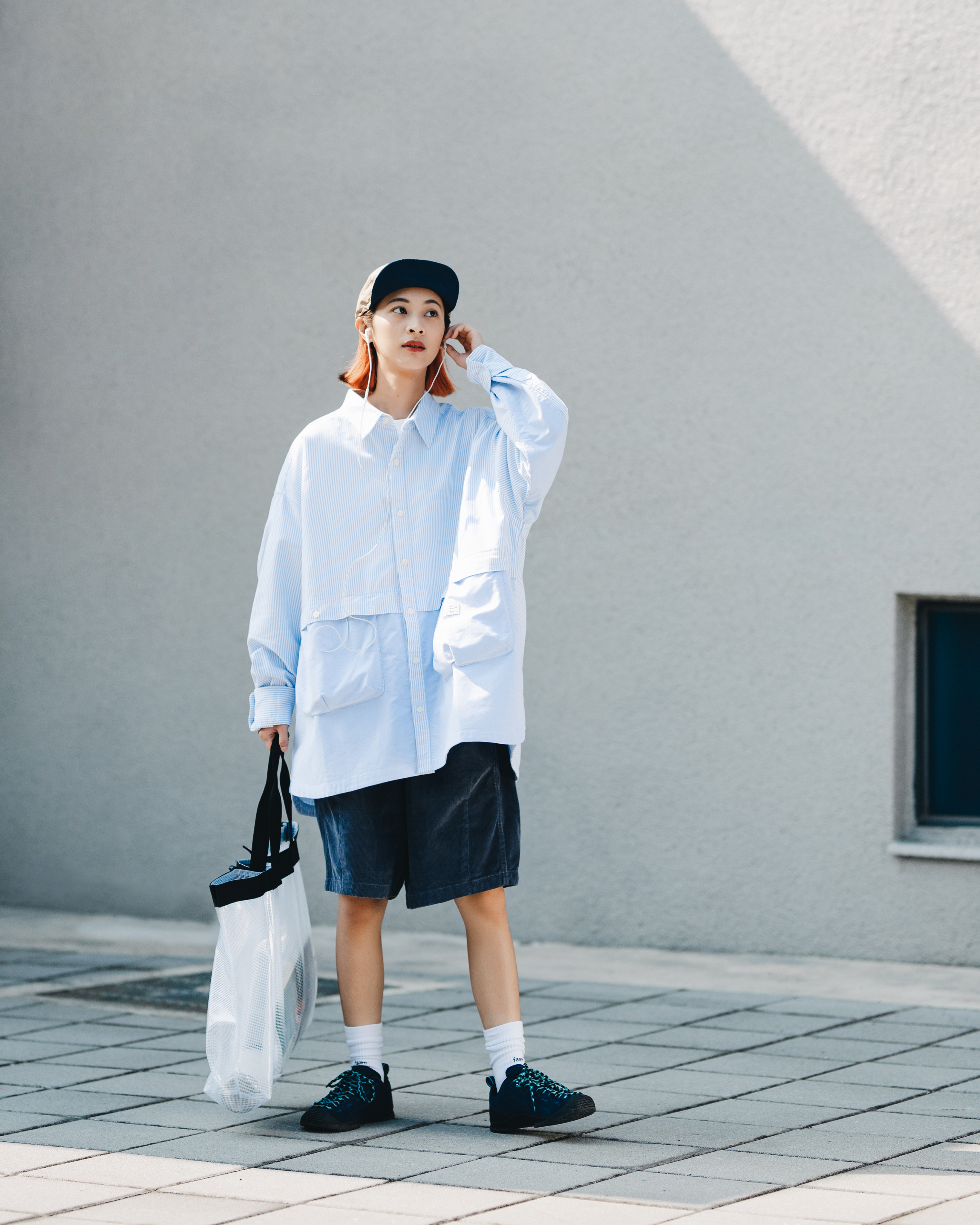 特選質感極佳的牛津混紡面料,以布料拼接搭配立體口袋設計在視覺上做出層次變化,同時也方便收納手機、錢包等隨身小物,在展現率性街頭風格的同時也增添十足收納機能與便利性。