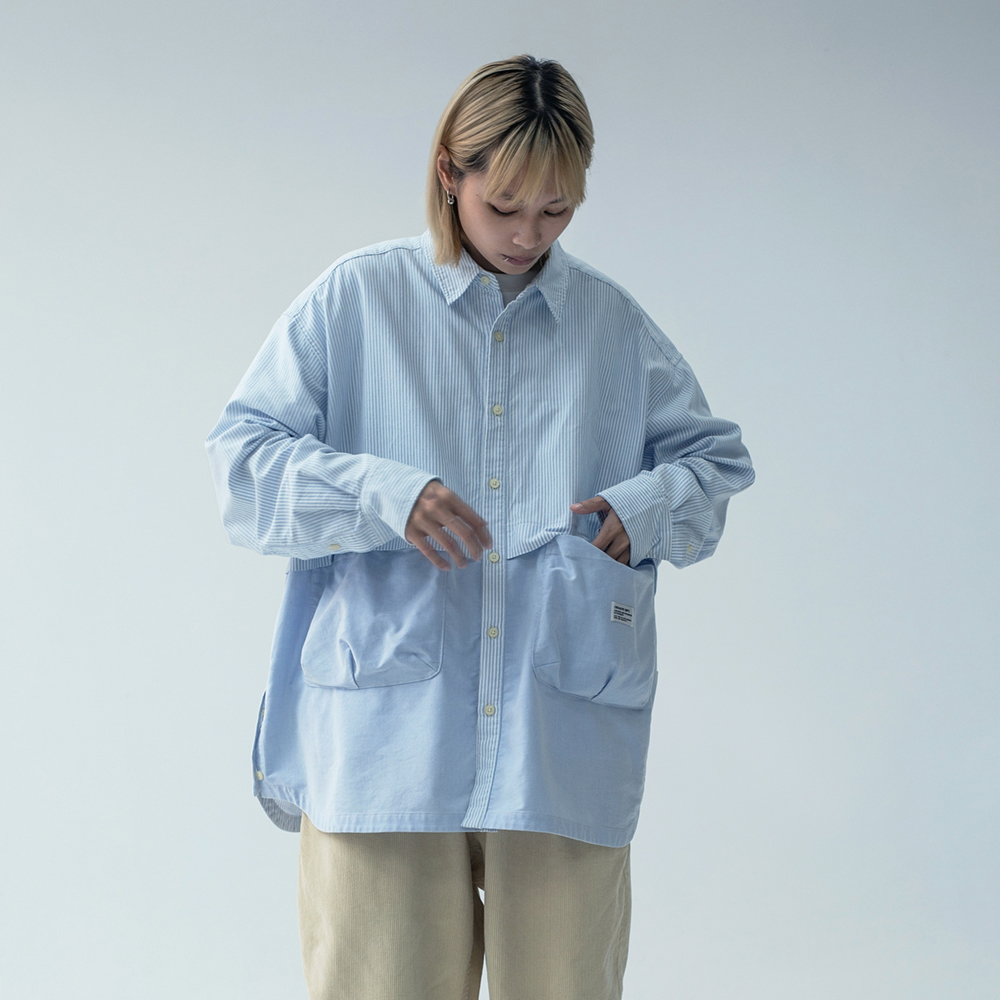 牛津拼接寬版襯衫