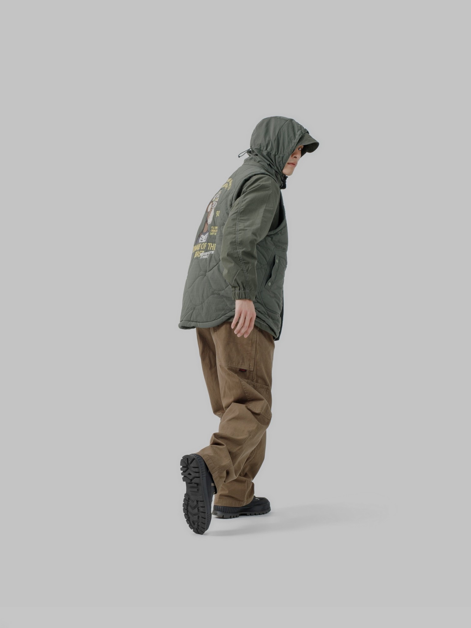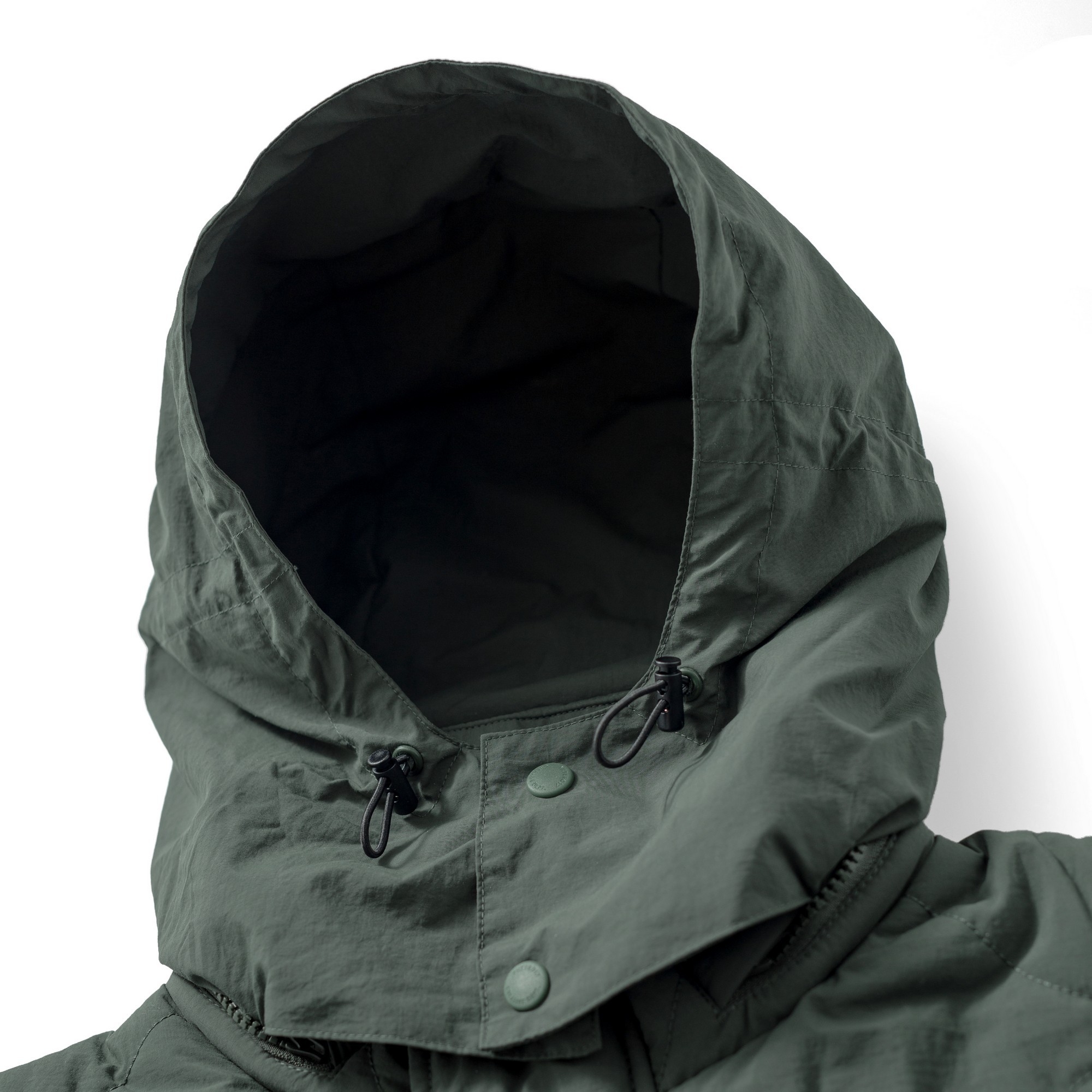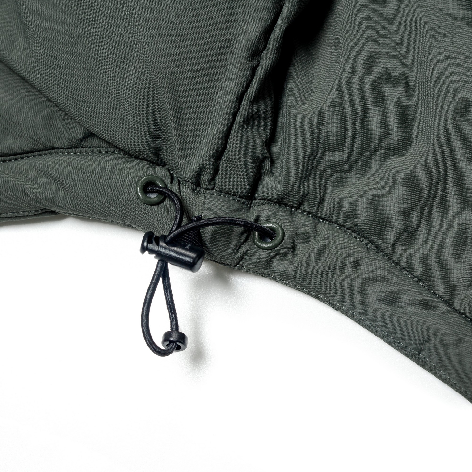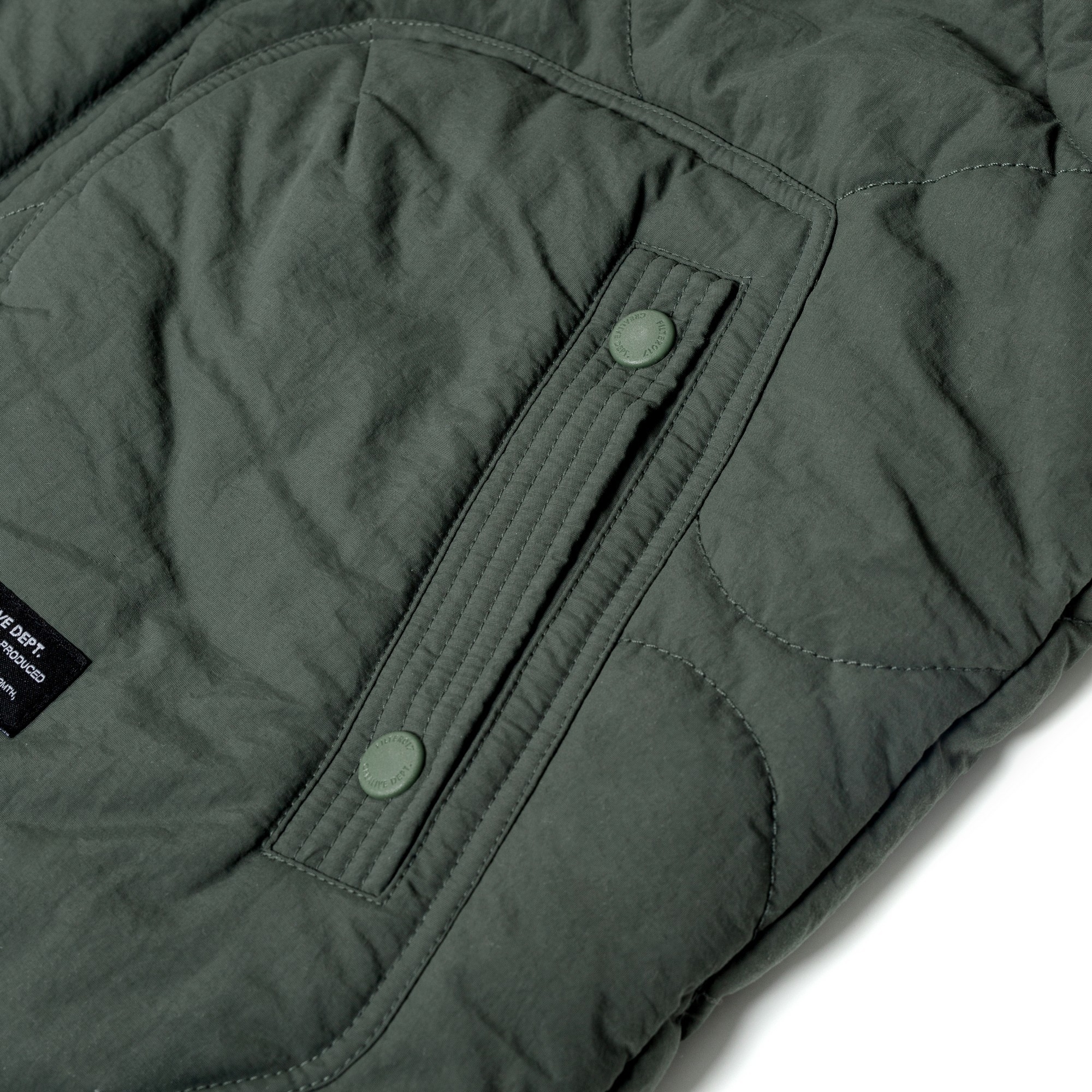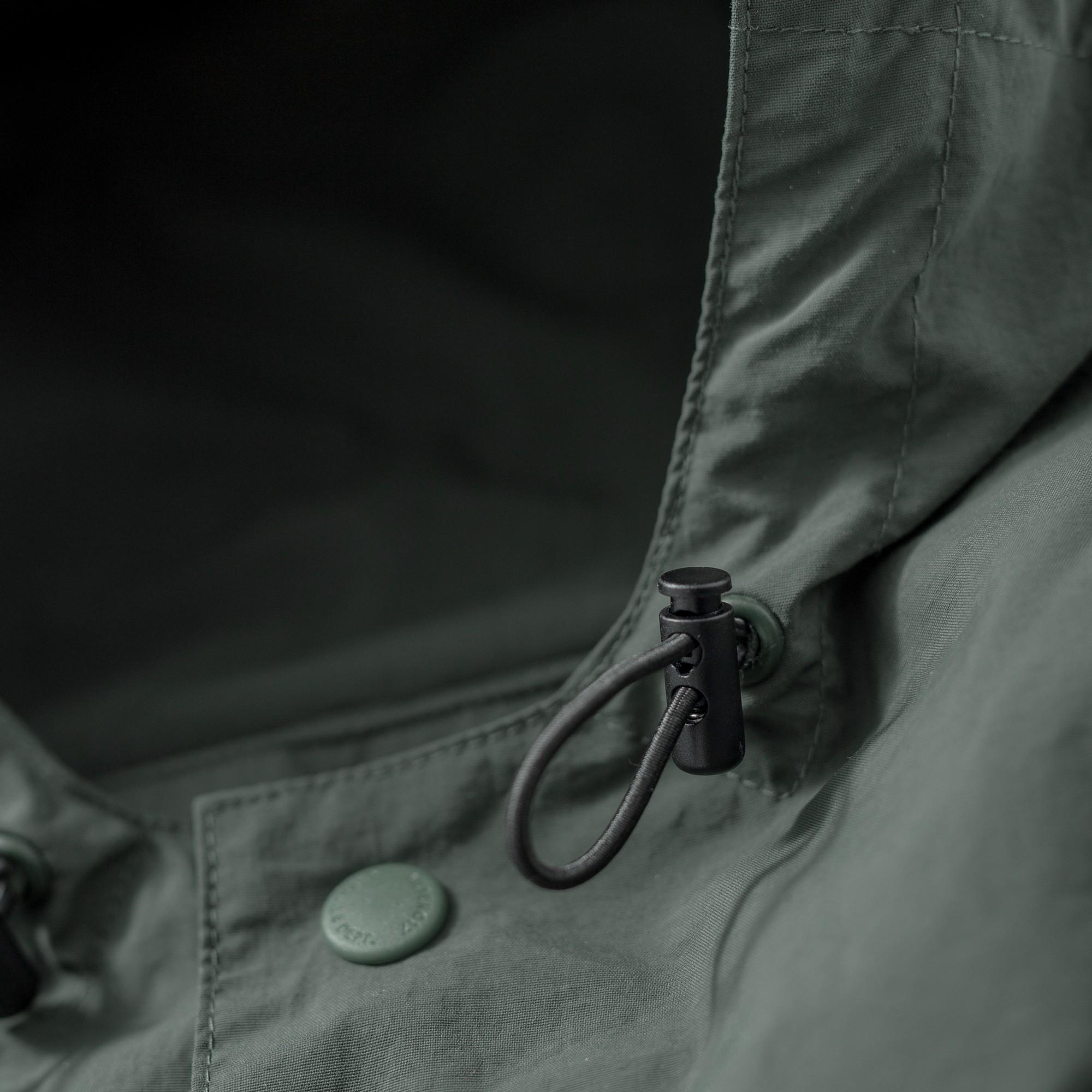以THERMOLITE® 中空纖維輕量保溫且抗濕透氣,與品牌獨立開發之皺洗尼龍面料經考究軍事衍縫技法融合呈現,略為寬鬆的版型輪廓搭配弧形下擺,在保暖防寒的實用度外建構出搭配需求的豐富變化。