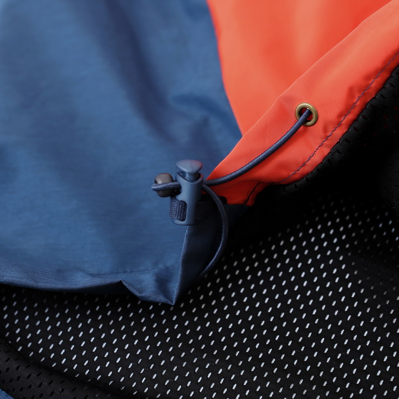 特選高品質防潑水透氣尼龍面料,可調節的袖口、下擺拉繩及門襟設計,