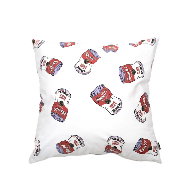 在製作工藝上,突破台灣品牌少見以大廠規模的開布印染方式,利用精緻的印染技法,將湯罐Pattern的圖像細節呈現得更加到位。而貼心的可拆式枕套,讓你不再苦惱害怕枕頭的清洗問題。