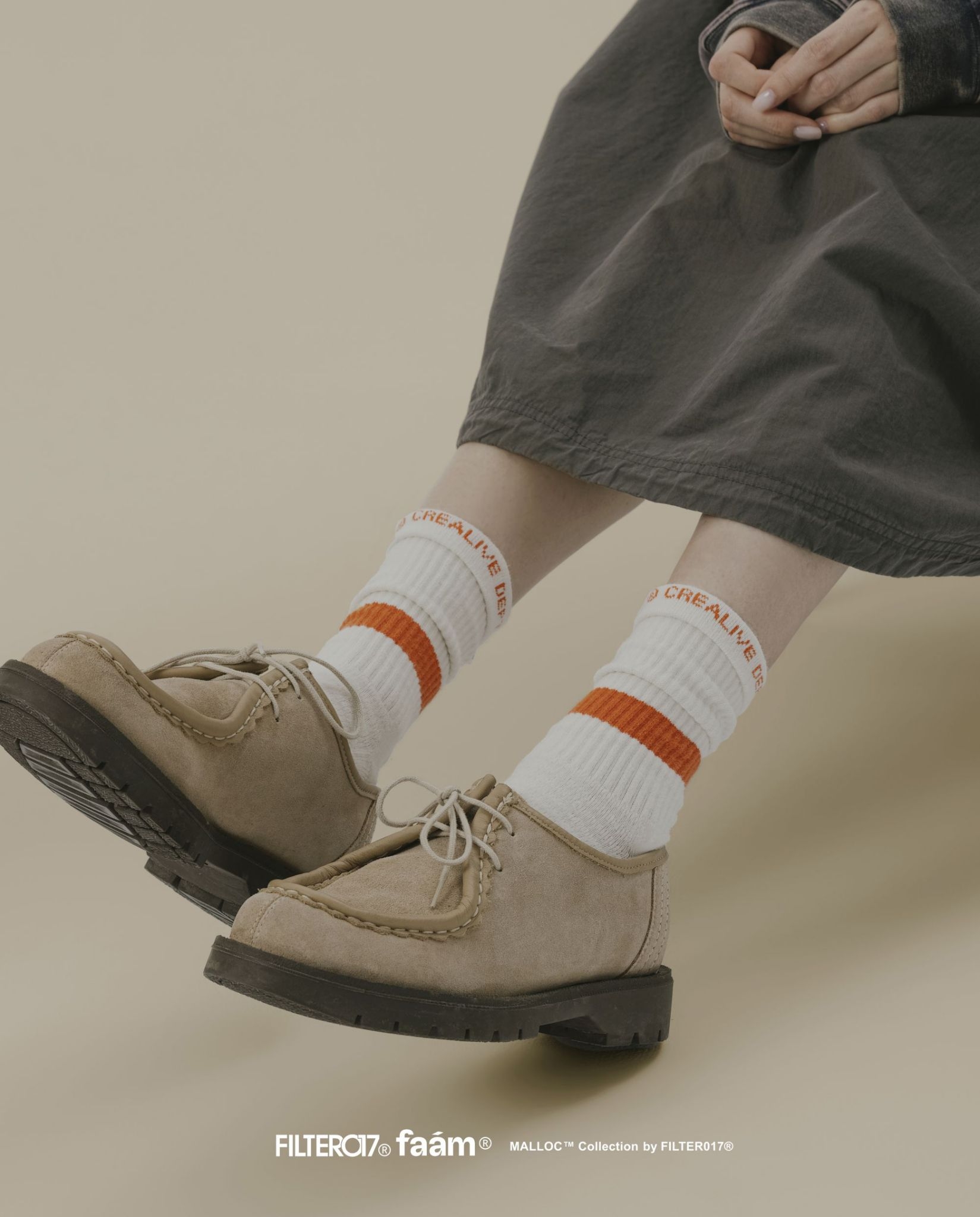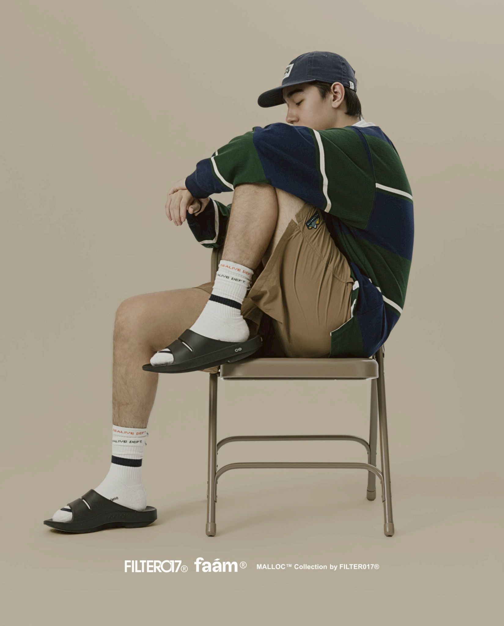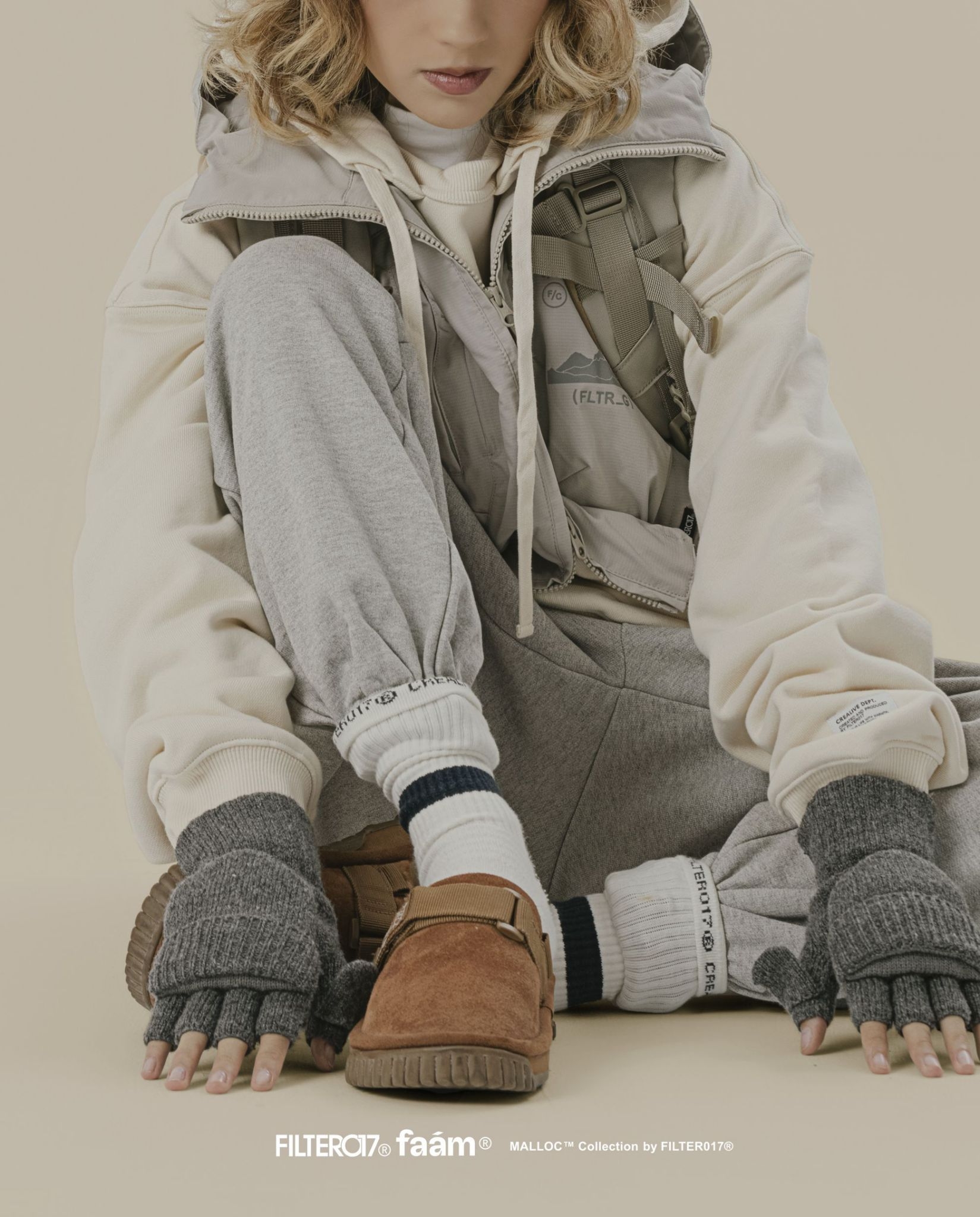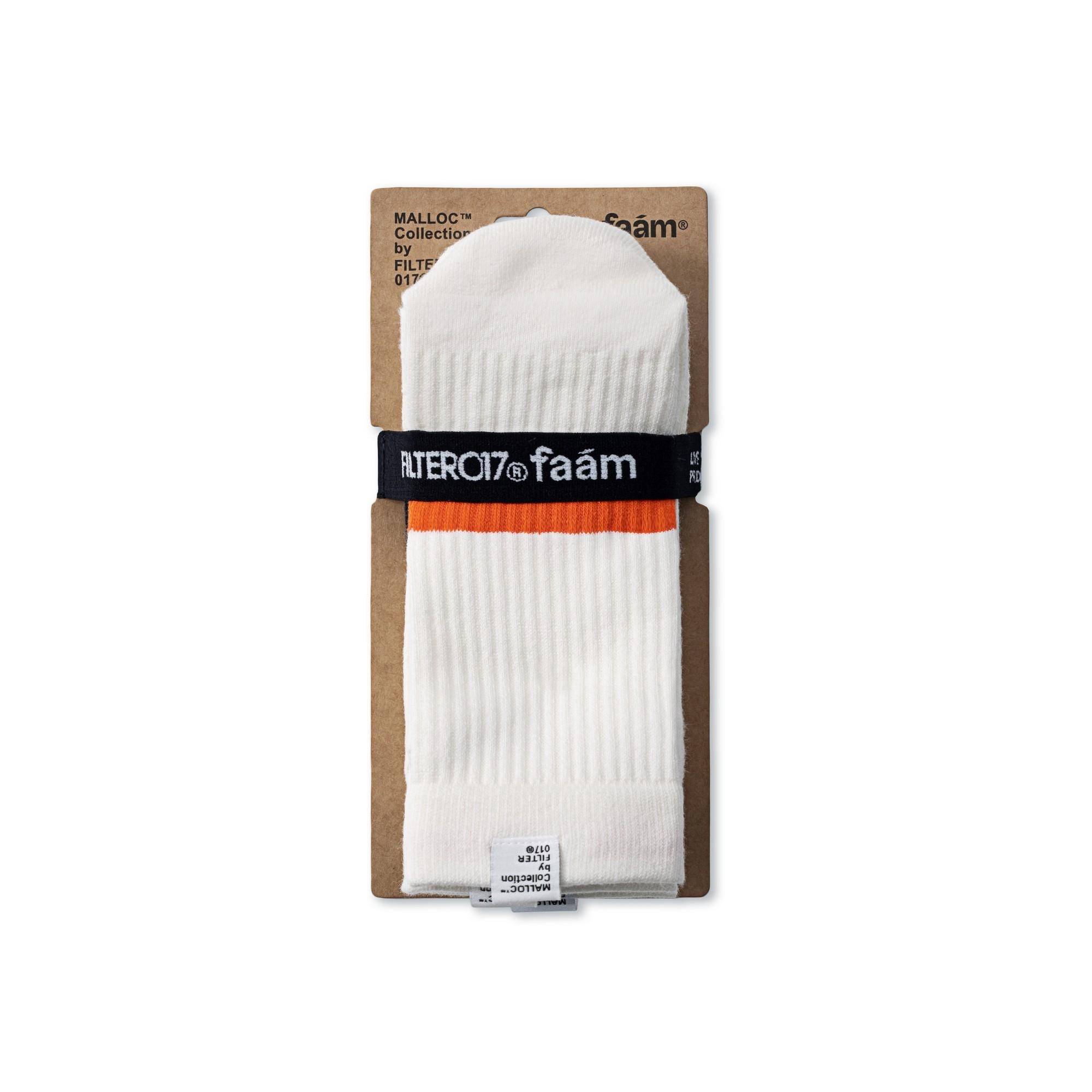 本次復刻新作用選用象牙白作為襪身本體,以MALLOC™ 織標及襪底印刷詮釋聯名細節,襪管內側提花FILTER017® 品牌字樣,著用時可反摺增加外觀搭配上的視覺靈活性。