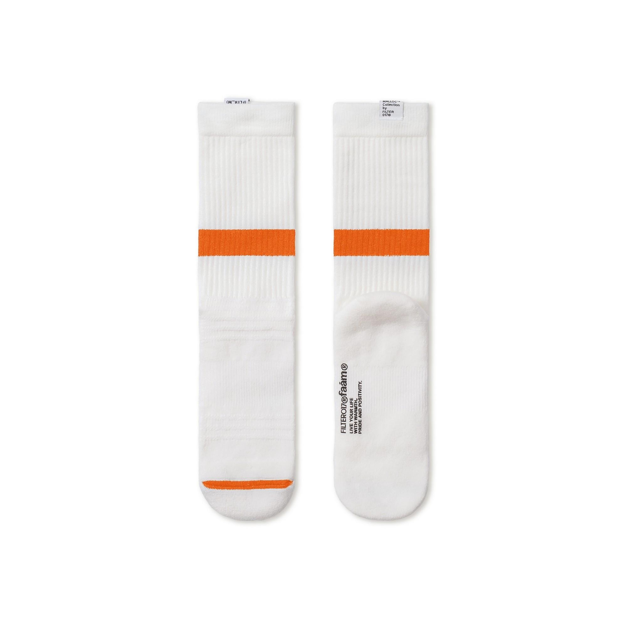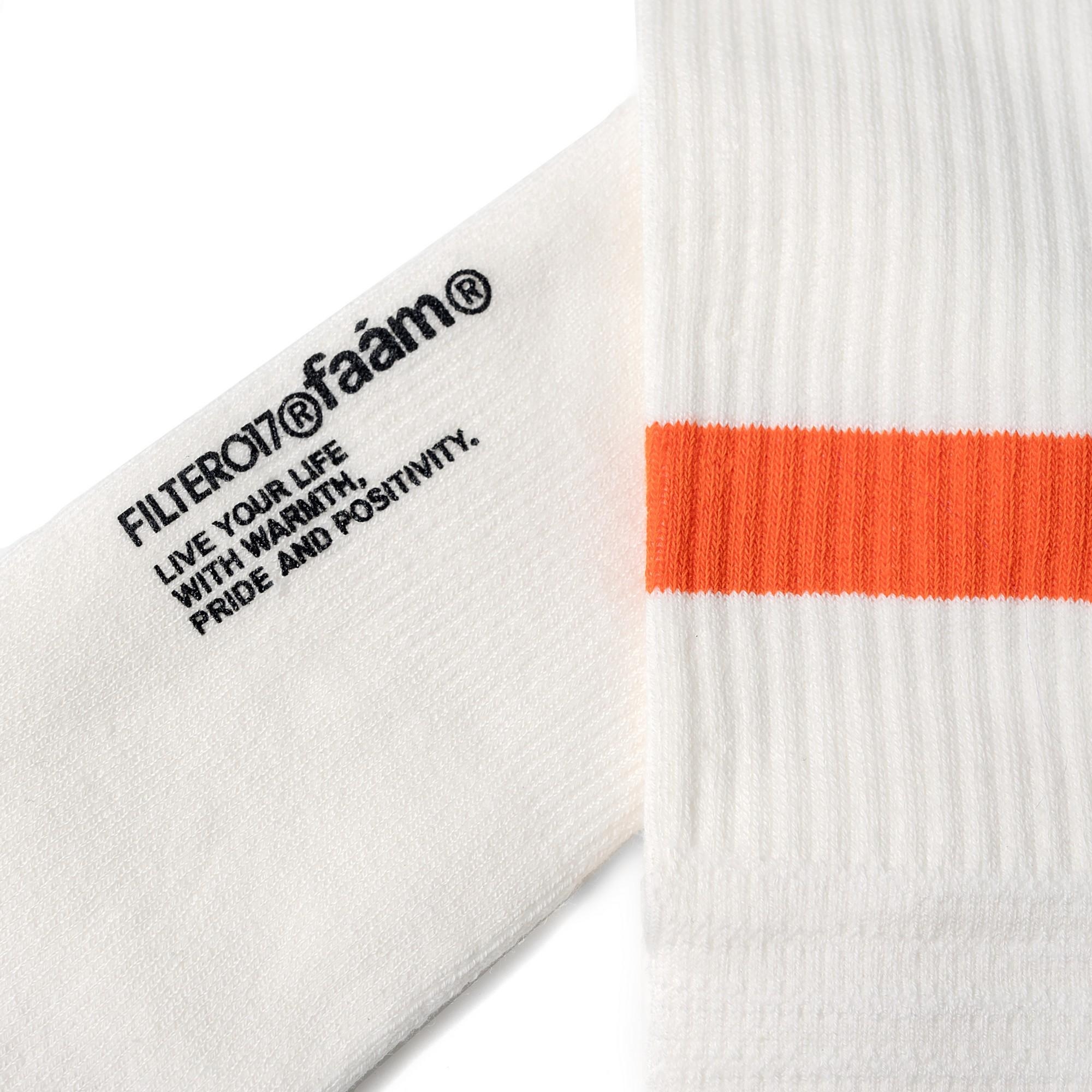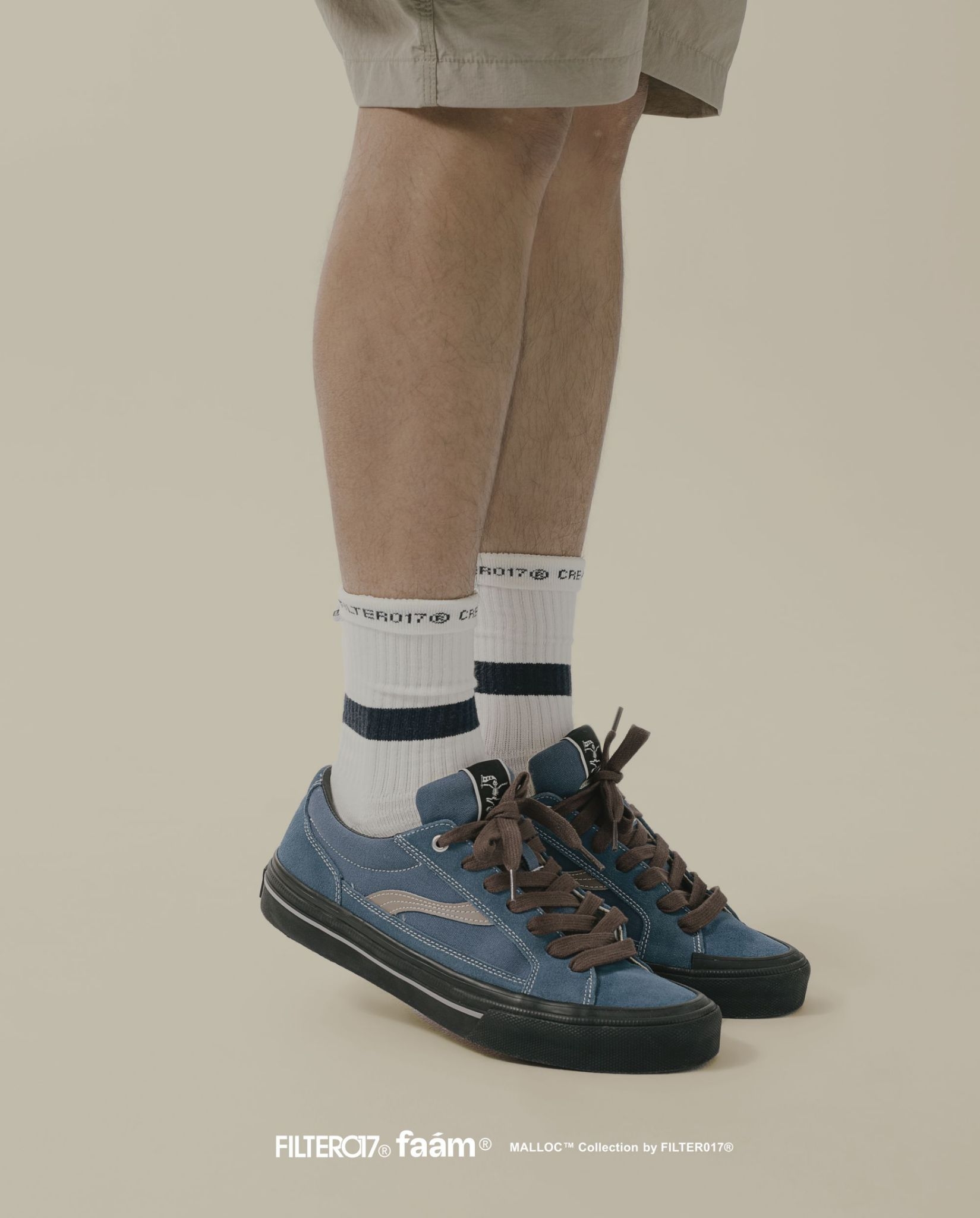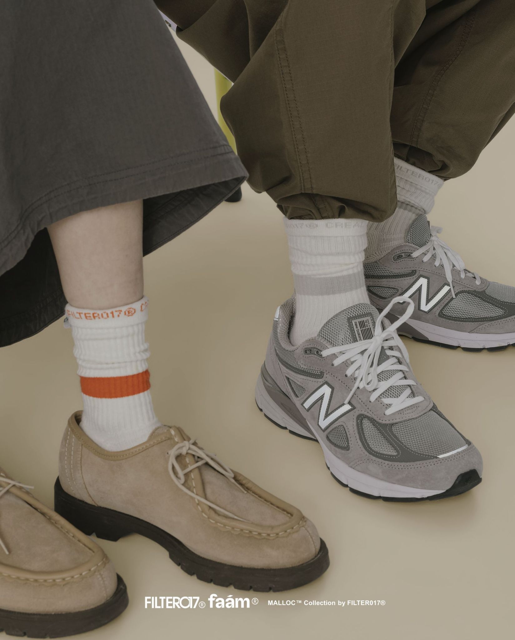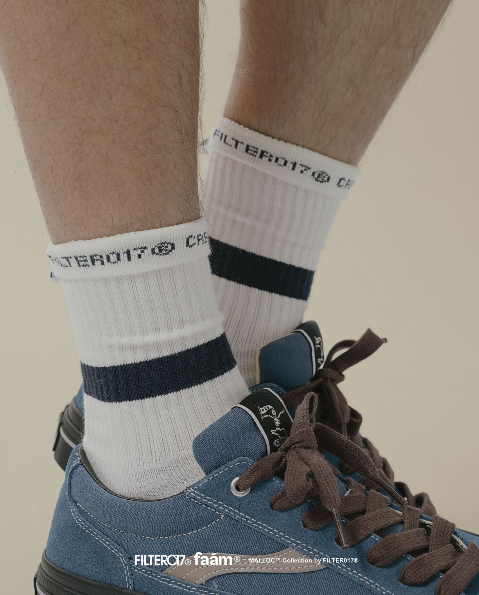本次復刻新作用選用象牙白作為襪身本體,以MALLOC™ 織標及襪底印刷詮釋聯名細節,襪管內側提花FILTER017® 品牌字樣,著用時可反摺增加外觀搭配上的視覺靈活性。