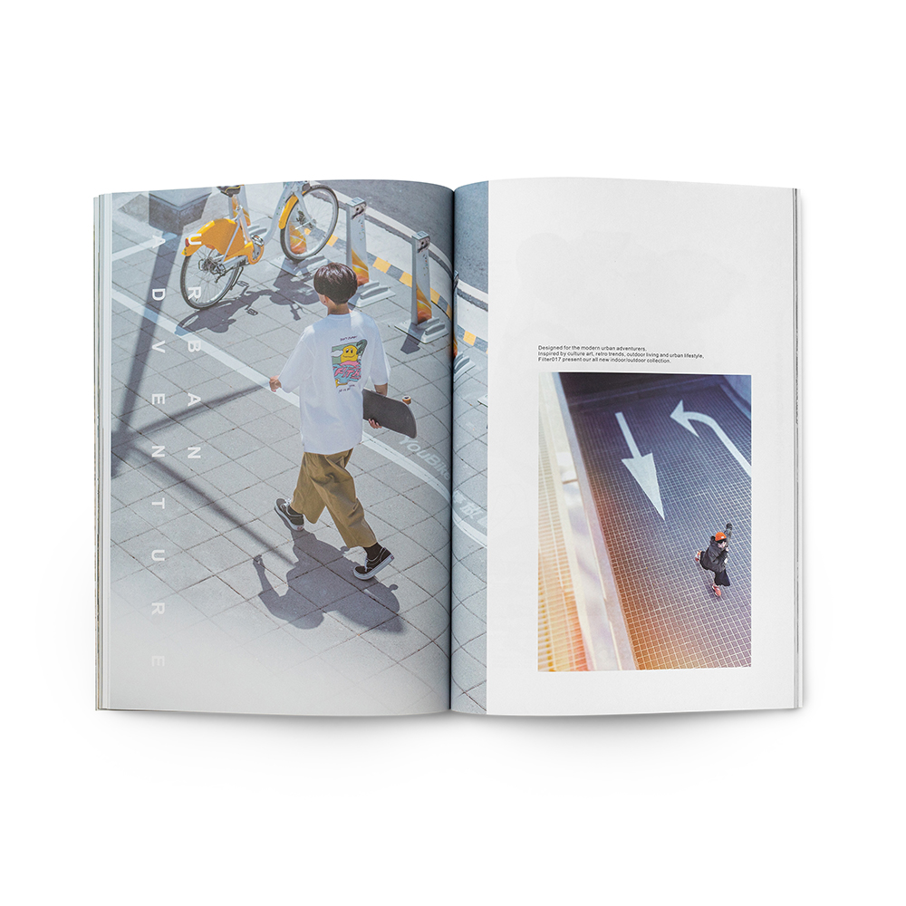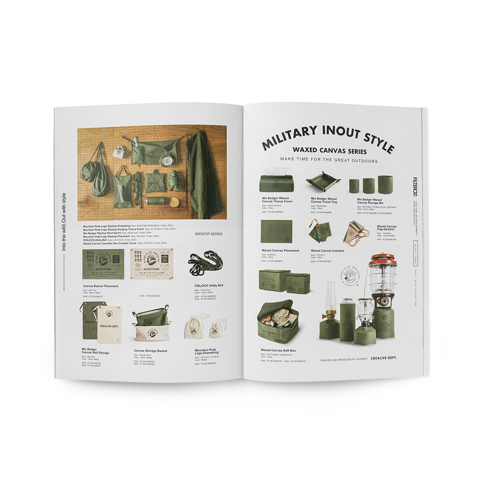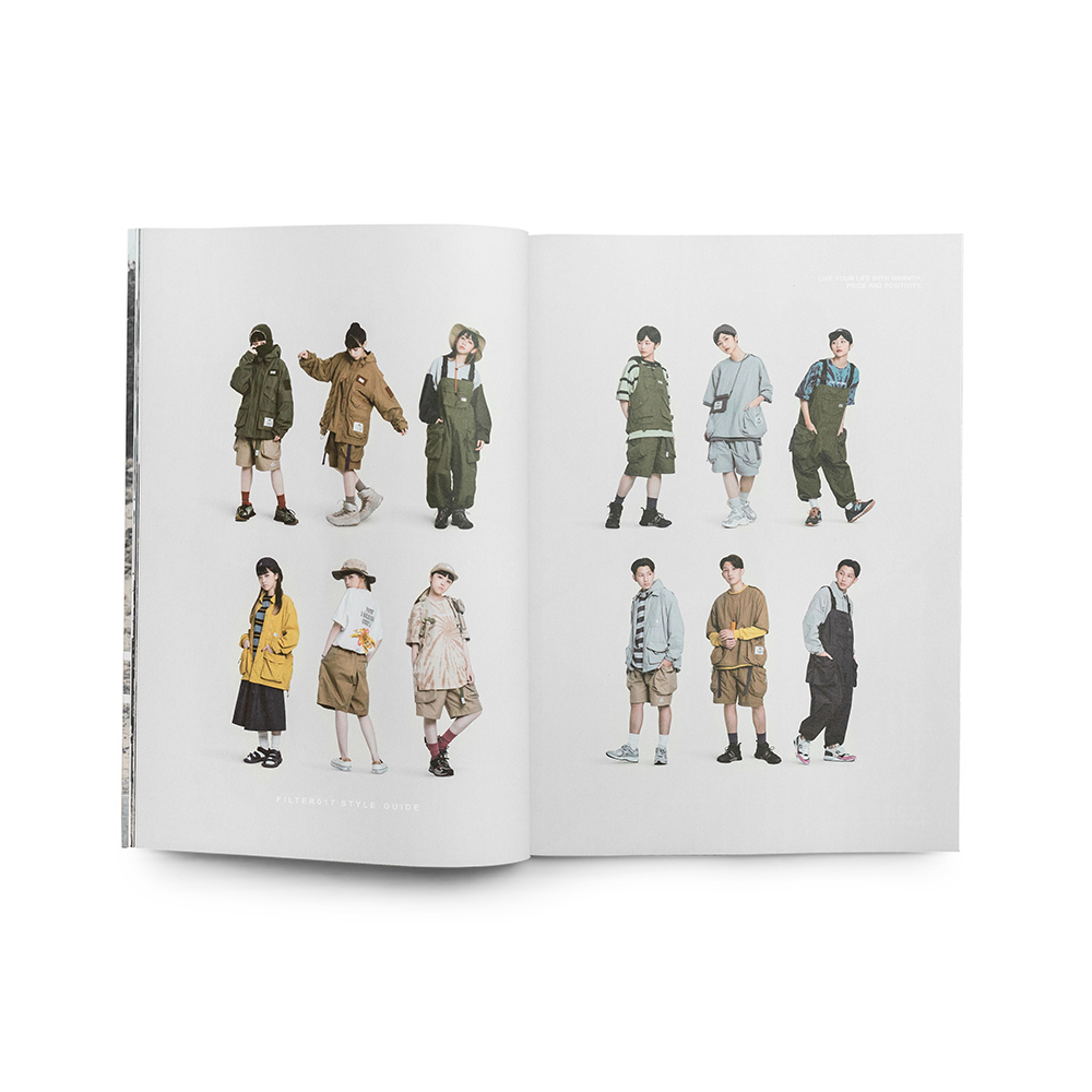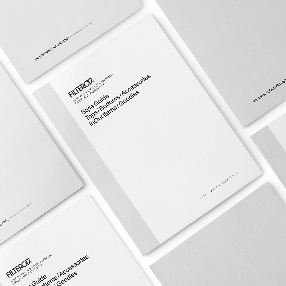 本次Filter017發行的品牌風格指南,彙整收錄了2021-2022年間品牌團隊以「Into the wild, Out with style.」作為主題標語,汲取文化藝術、復古流行的多元視野,並結合都市日常與戶外休閒風格,在視覺風格與機能間完美平衡的「InOut」生活型態為概念所推出一系列的精彩單品,並在紙本完整集結下,完整典藏品牌詮釋「遊走在城市與戶外之間,保持溫度與態度的生活步調」的精神核心。