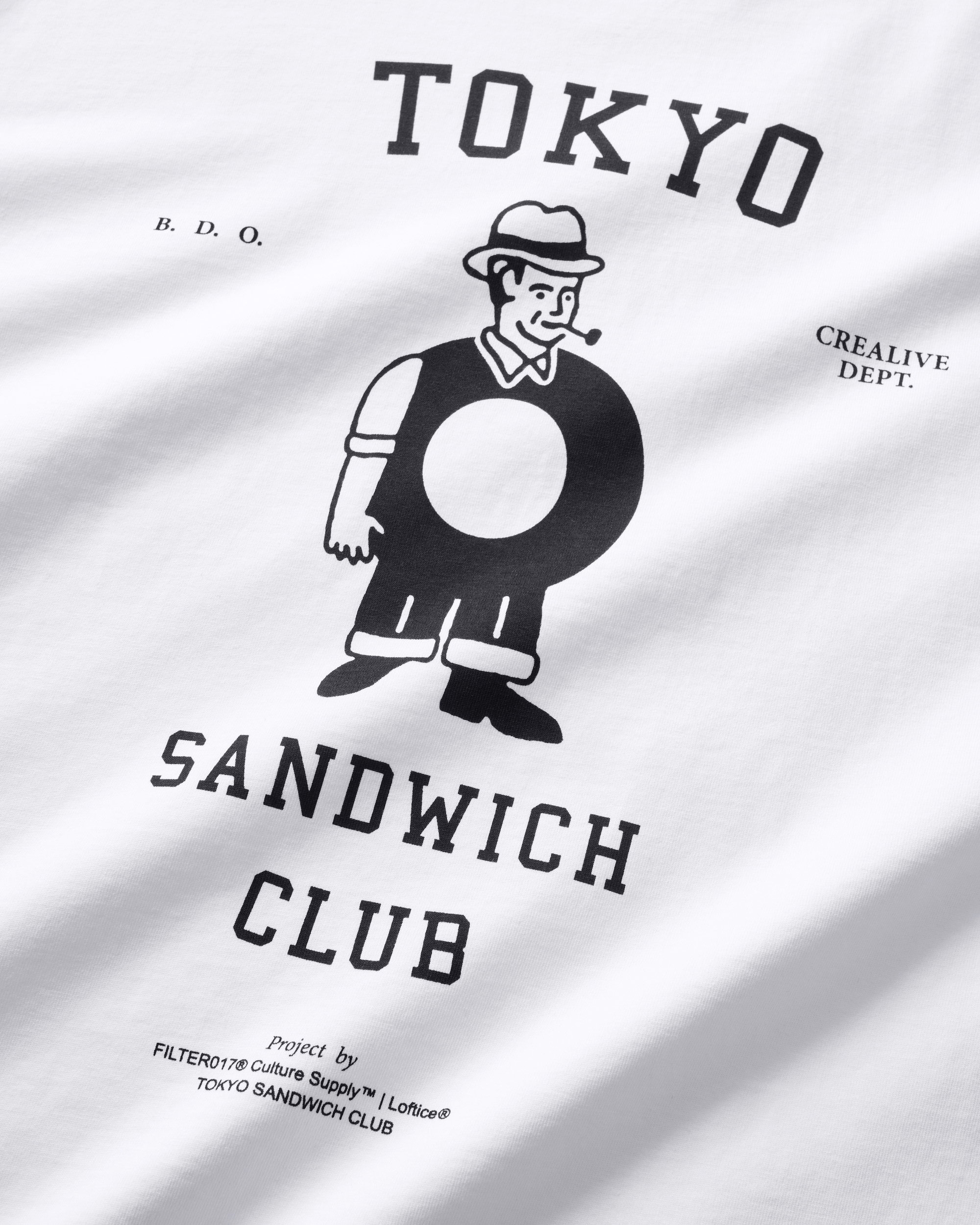 由台灣跨領域設計品牌FILTER017® 旗下文化藝術企劃單位Culture Supply™ ,攜手台南新型態複合空間Loftice® 共同企劃,邀請來自東京日本橋,專精手作三明治料理的都會潮流餐飲單位Tokyo Sandwich Club ( 東京三明治俱樂部),於台中、台南與東京等城市展開橫跨台日的巡迴快閃特別企劃活動,除了以職人手藝料理豐富味蕾之外,此次企劃內容如同三明治般,將不同文化堆疊融合,以Brewing(咖啡)、Drinking(飲酒)、Outfitting(穿搭)等生活日常角度切入,貫穿主題 ”LIVING WITH SANDWICH” ,並透過「B.D.O. 」概念主軸結合本次合作台日代表單位特色,融入台日在地城市文化與意象,整體視覺以Tokyo Sandwich Club 品牌經典圖像加以設計與延伸擴充,帶來一系列主題商品與創意巧思,探索三明治的多重可能!